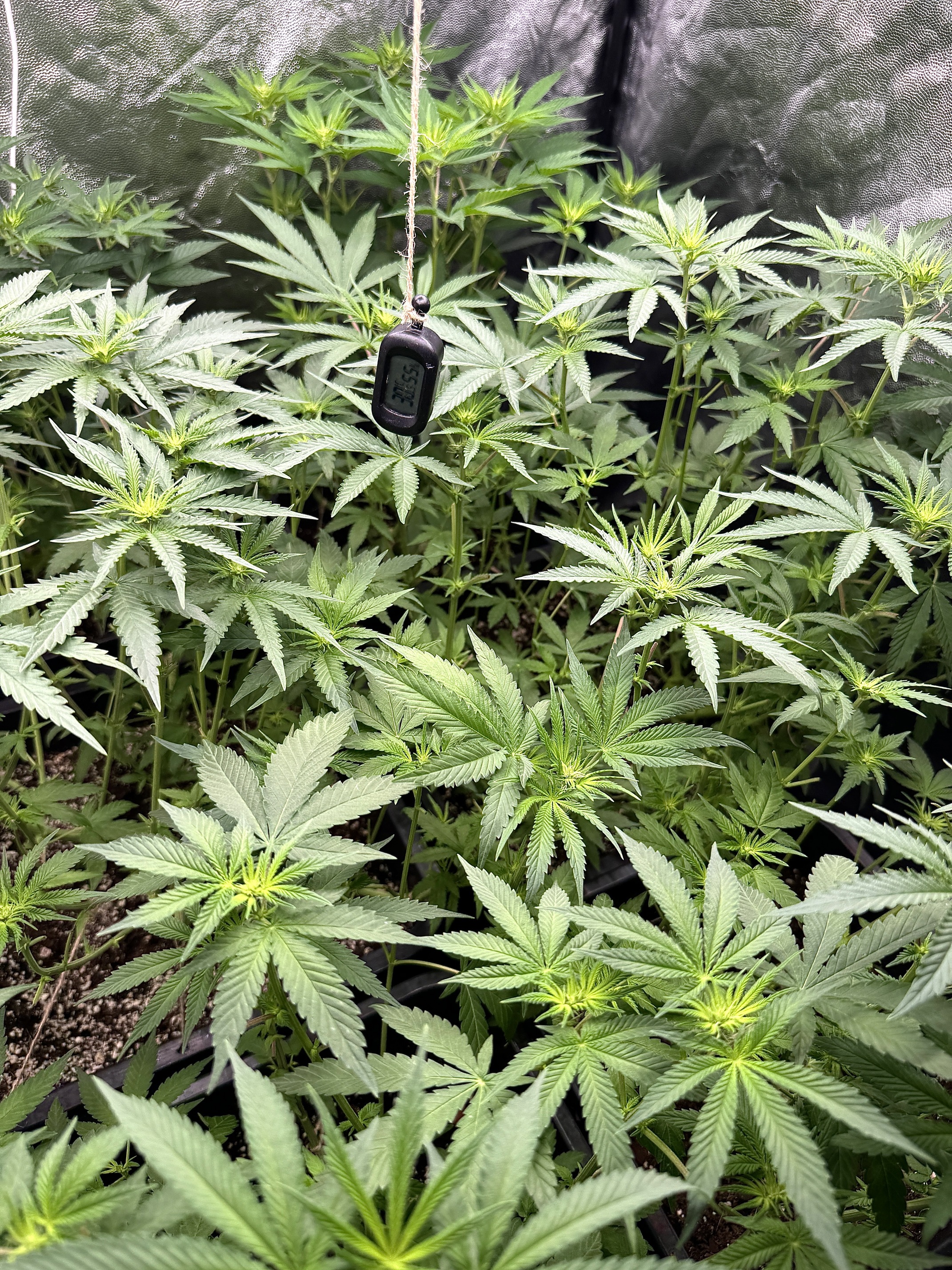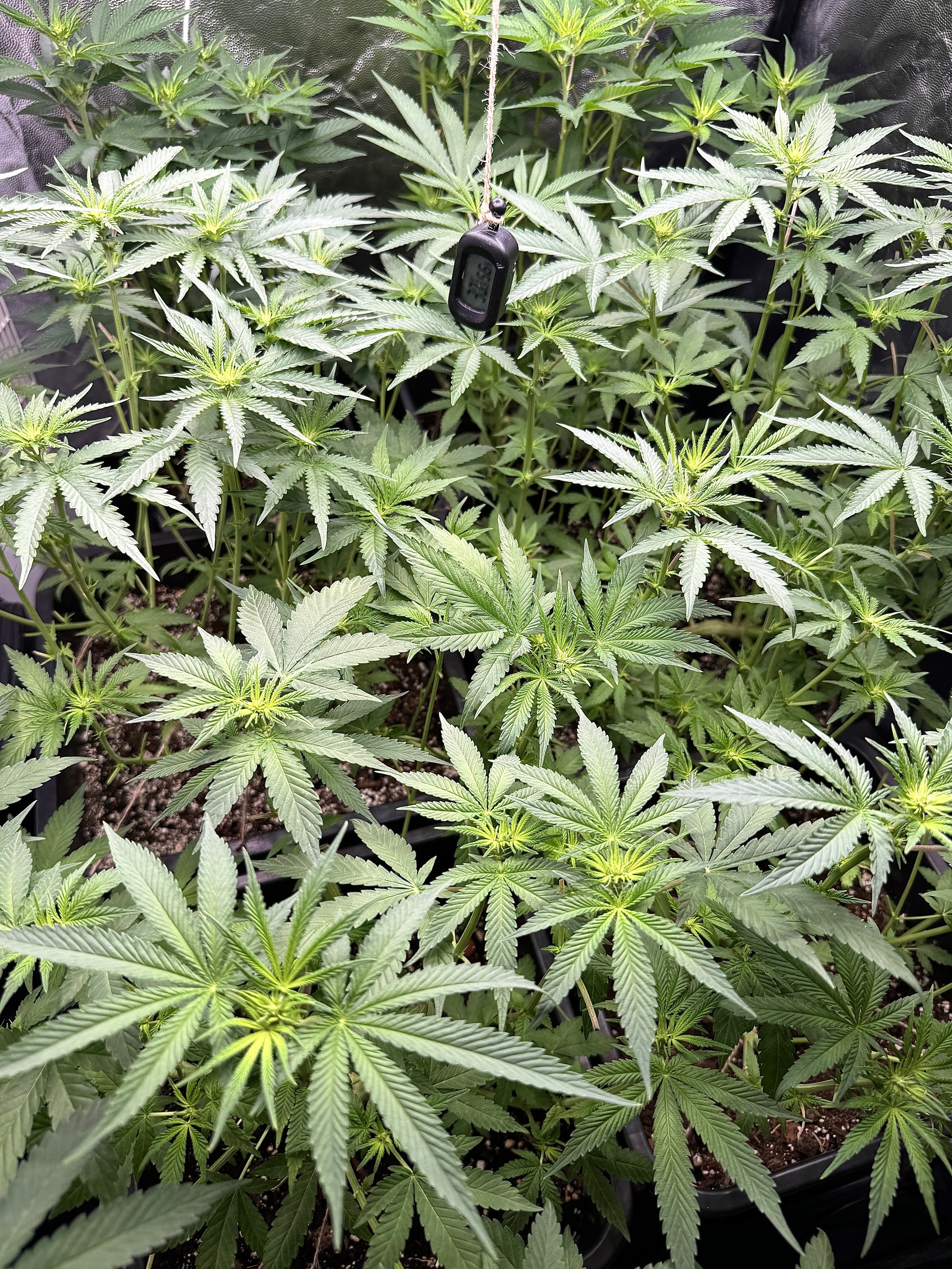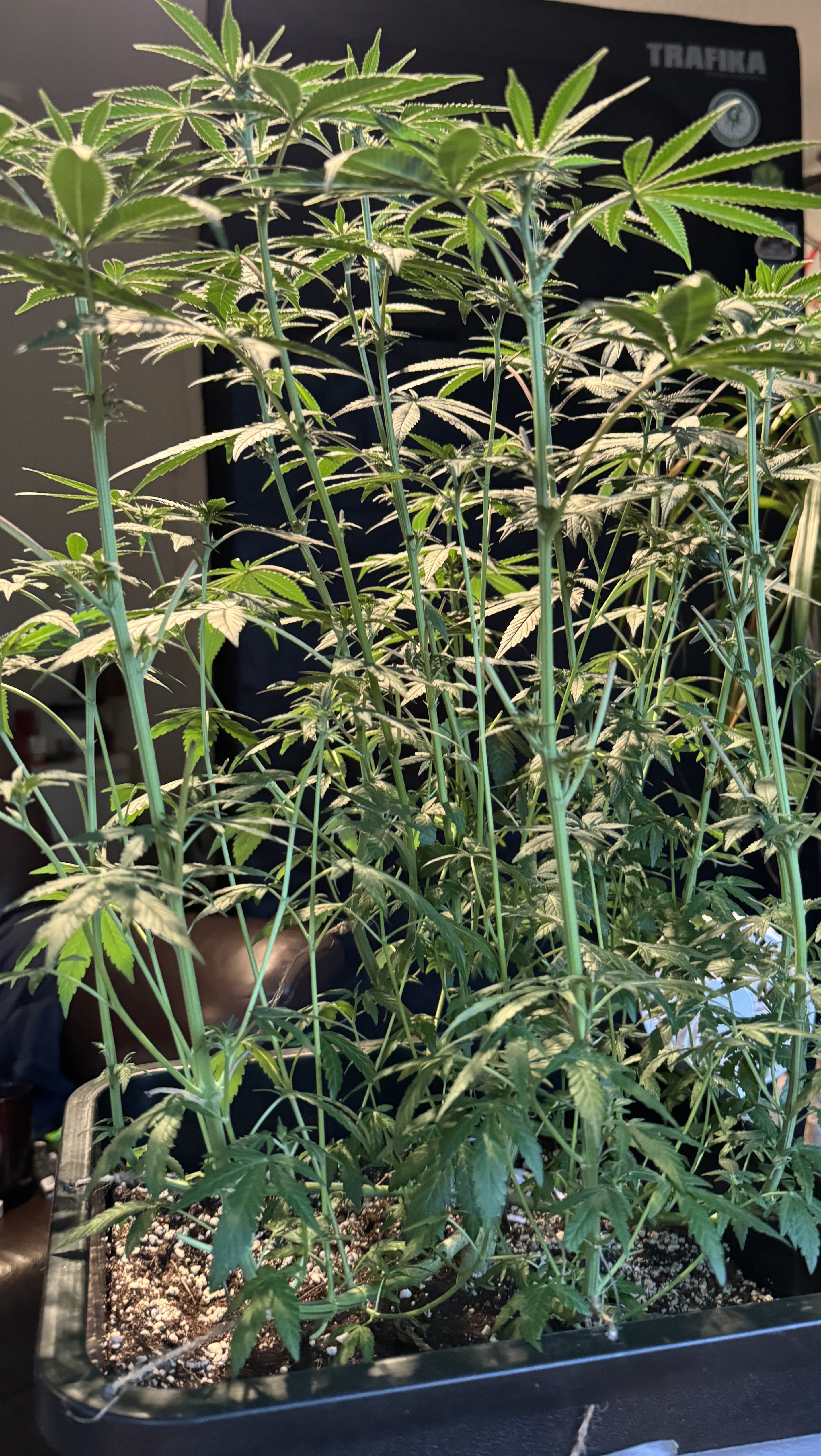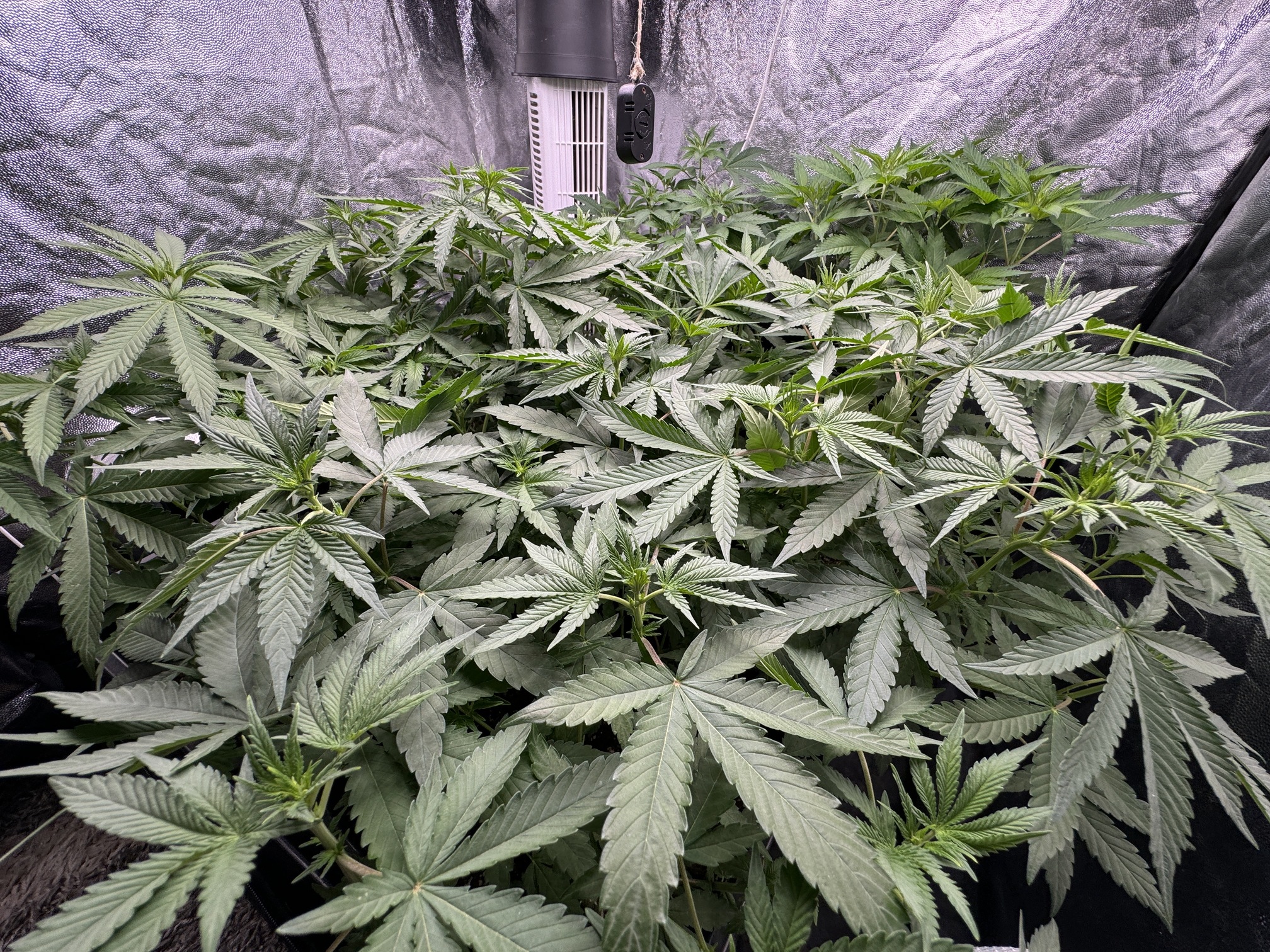 Hoffentlich führt das heftige entlauben nun nicht zum Zwittern. Ich werde morgen den Thripsen weiter den Kampf ansagen und dann bis Anfang o. Mitte BW3 die Finger stillhalten, und hoffen das alles läuft. Dann wird ein letztes Mal entlaubt und das untere Drittel entfernt. Dafür fand ich es heute noch zu früh.