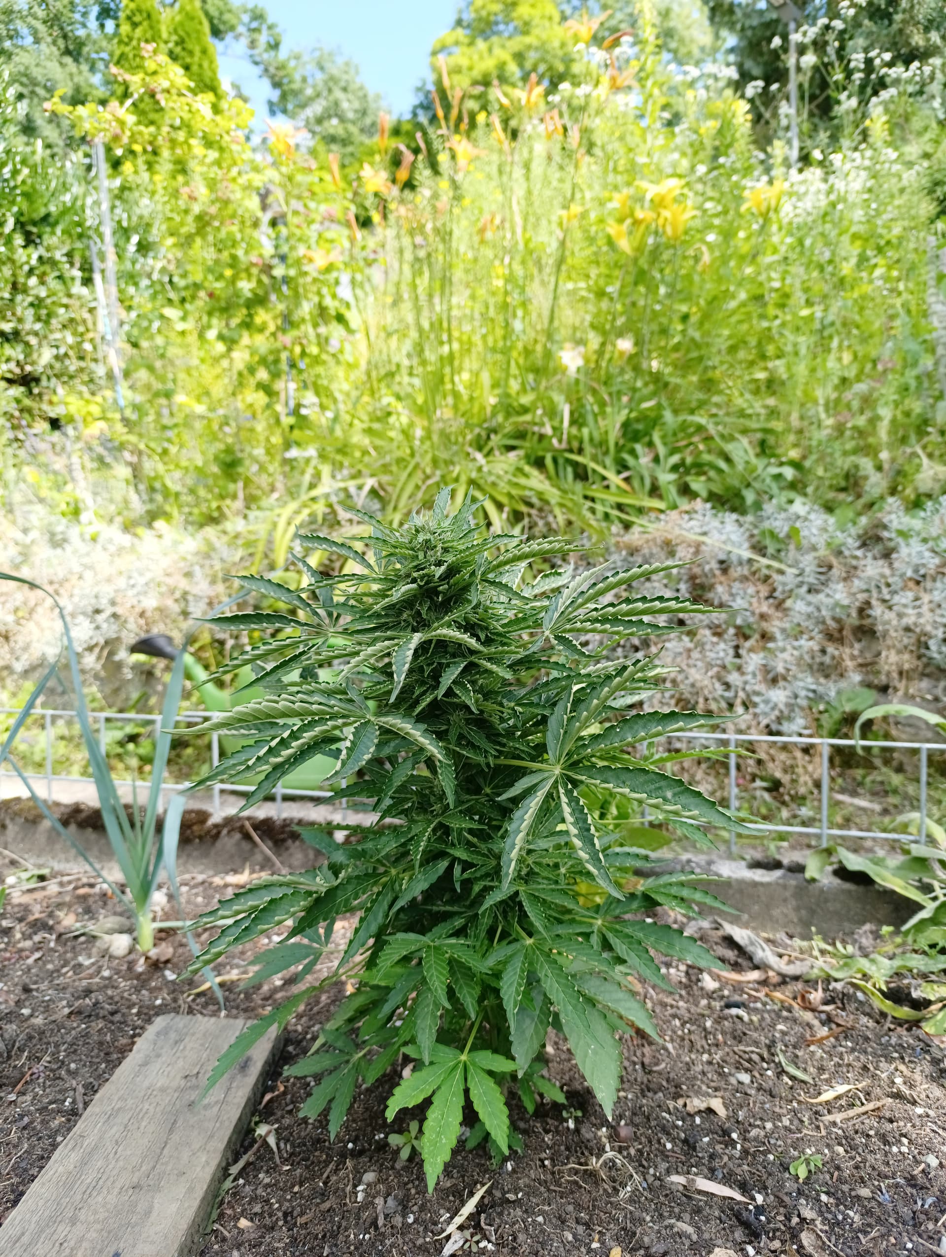 Mein erstes âSommer-MĂ€rchenâ outdoor im Garten ĂŒberhaupt, Frostyâs Purple Freak ganz alleine wĂ€chst sie, mein Dank an dieser Stelle fĂŒr den Tip dieser Sorte an GrowTHCrow