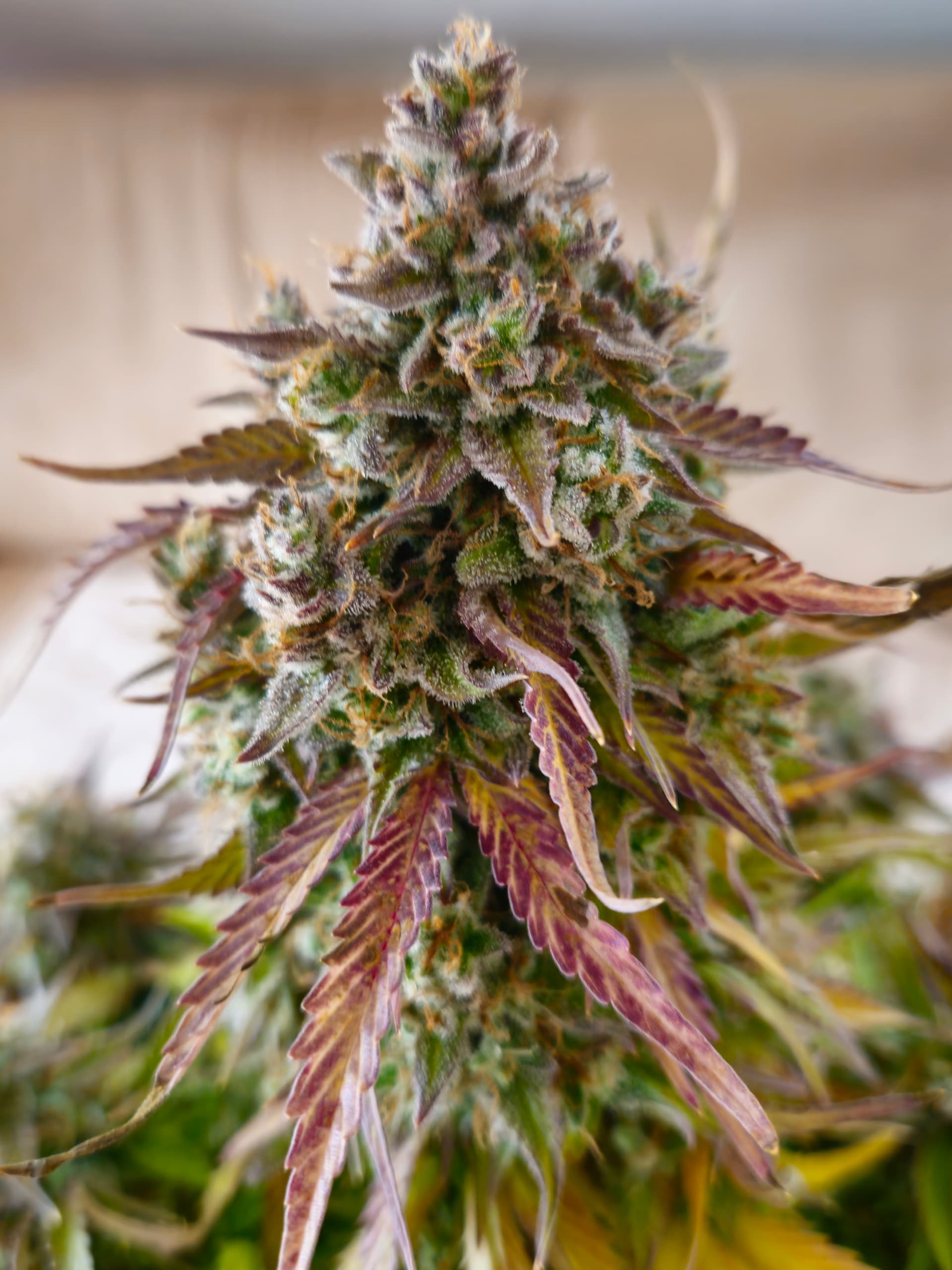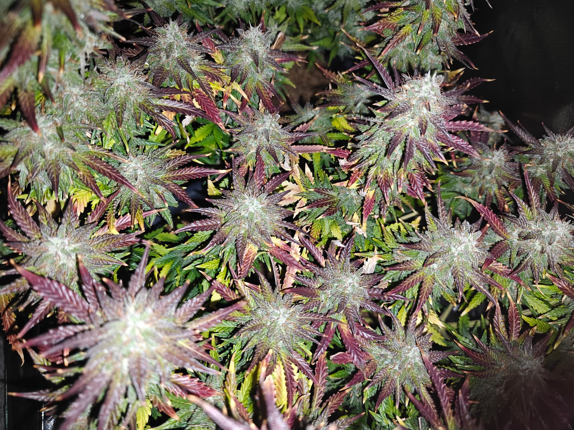 Meine purple bud sind leider noch nicht so weit, aber die Thekla scheint die Puff-Beleuchtung genauso zu lieben wie die Pflanzen, ĂĽber denen sie wohnt. Bild wurde nicht bearbeitet.