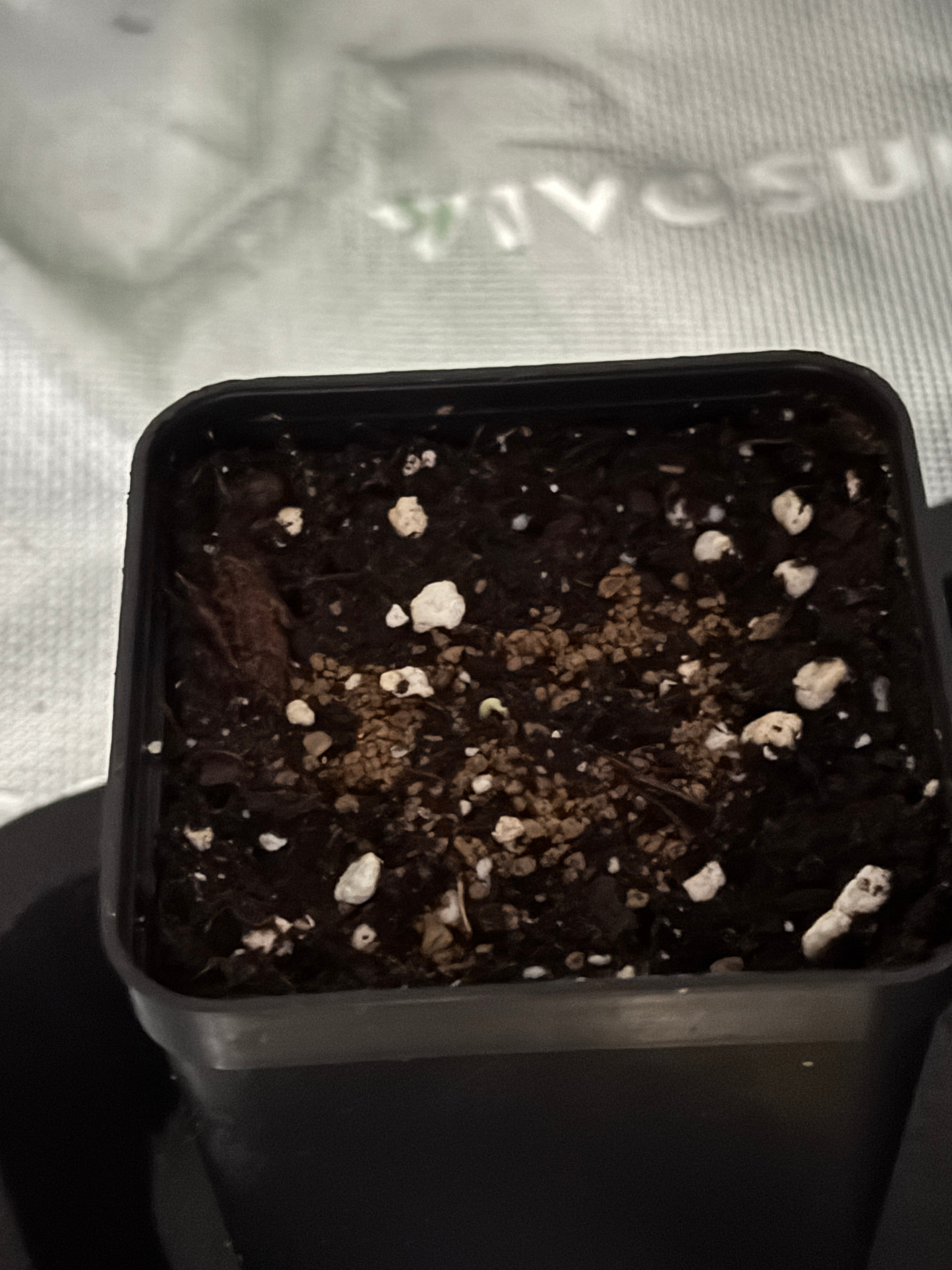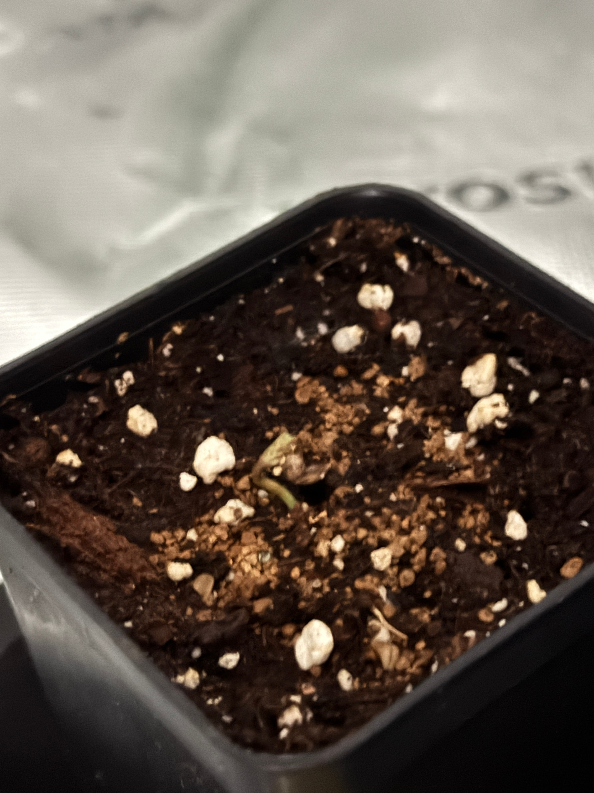 Ich wollte mir ein Impoo-Gewächshaus aus Frischhaltefolie und Strohhalmen (hatte ich beim Outdoor-Grow genauso gehandhabt) aufbauen, sobald sich das Plänzchen zeigt ![]()