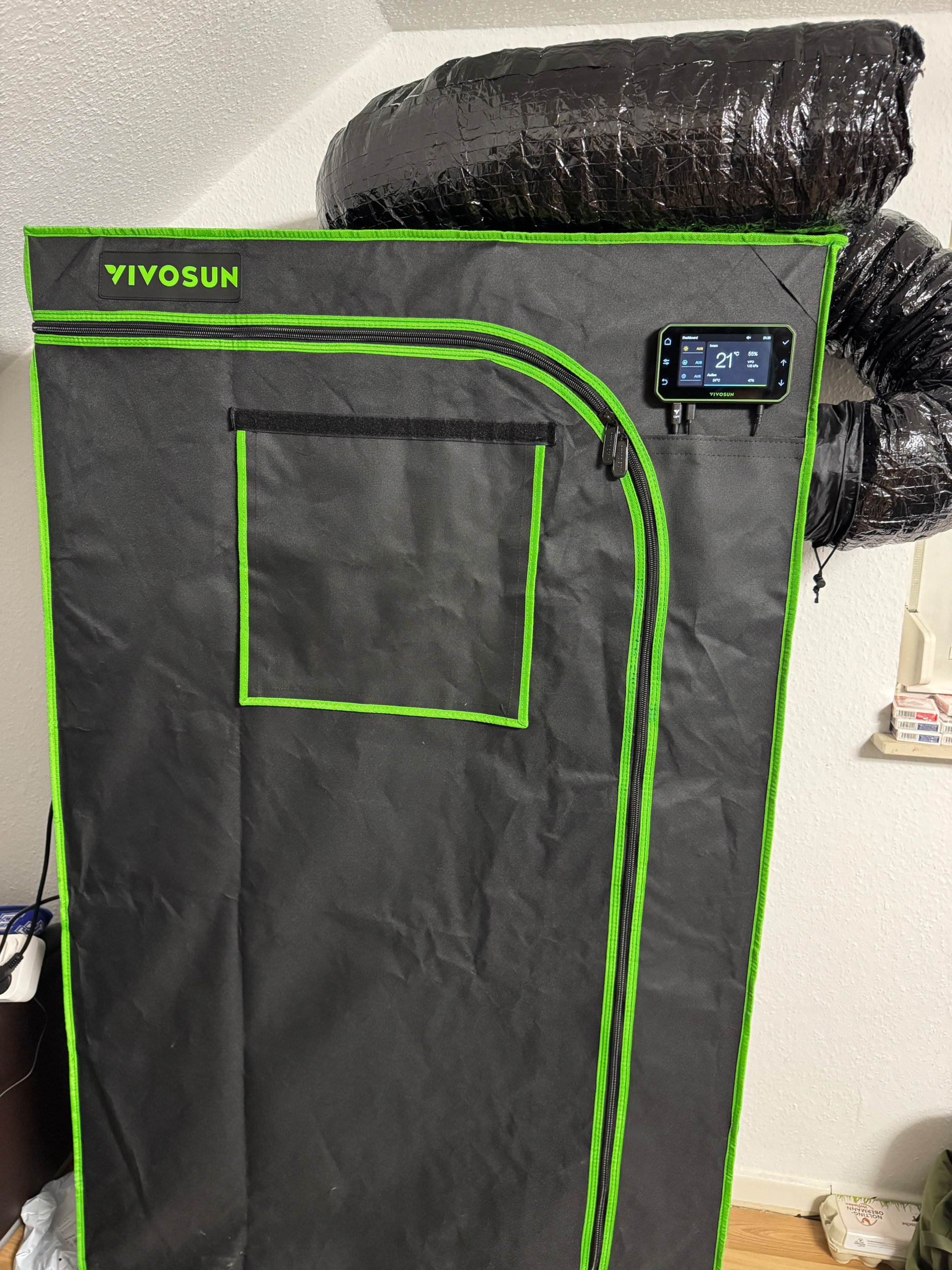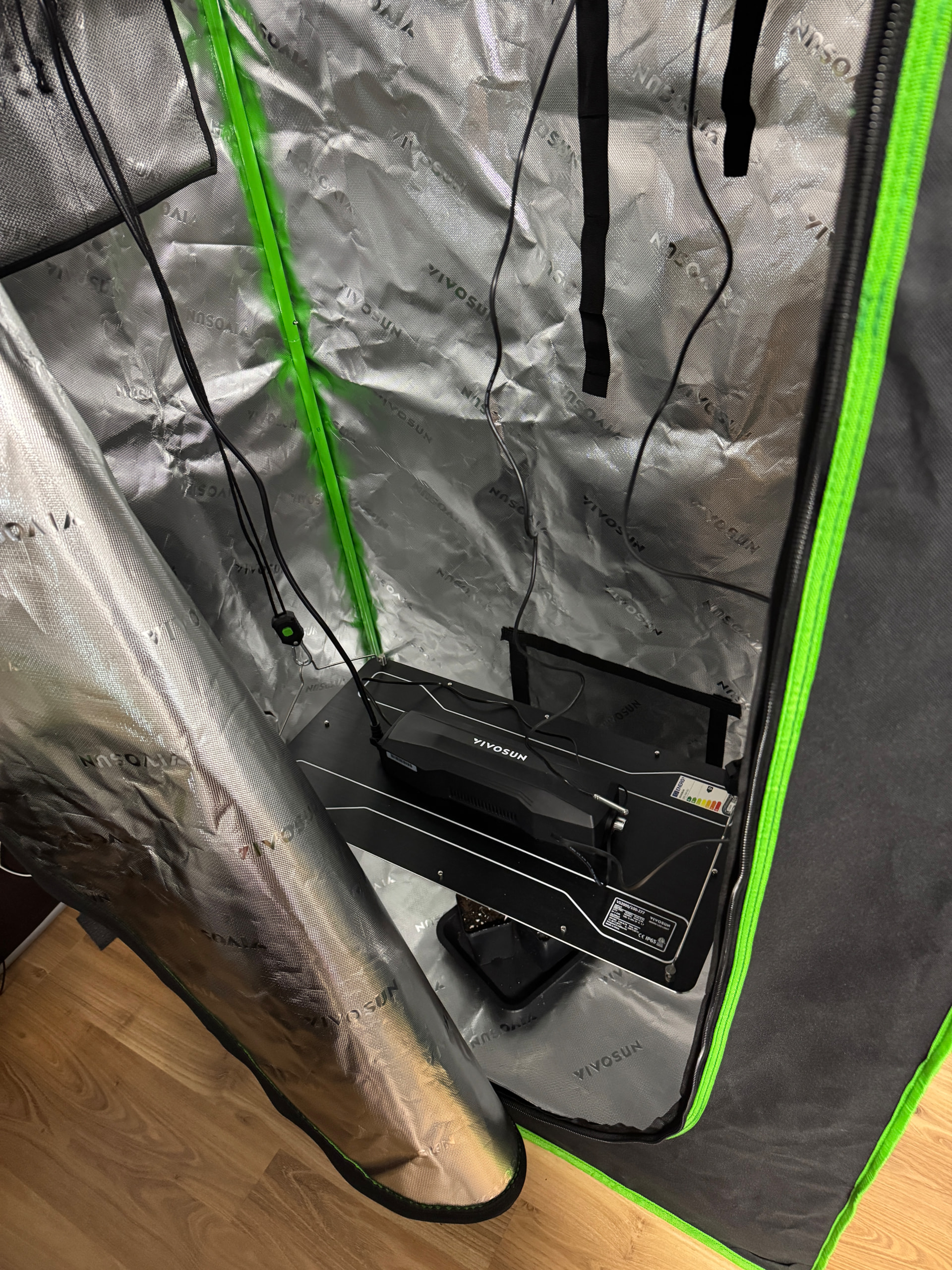 Übrigens , ihr lieben Sparfüchs:innen: Mein ganzes Equipment habe ich von Vivosun via eBay gekauft. Vivosun nimmt dort auch Preisvorschläge entgegen und ich meine, ich hab die Sache echt günstig bekommen:Lampe ca. 120€, Rohrventilator (150mm) 85€, AKF 35€, Venti 35€, zwei kleine Ventis 20€, Zelt 60€, zwei Brillen 15€. Dazu noch ne Phonetictrap von Eden Grow 30€, gesamt: 400€.
