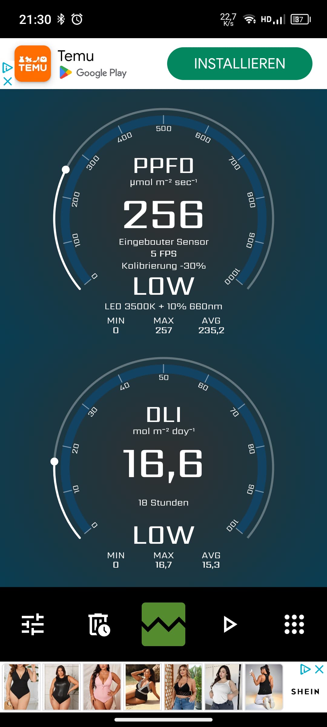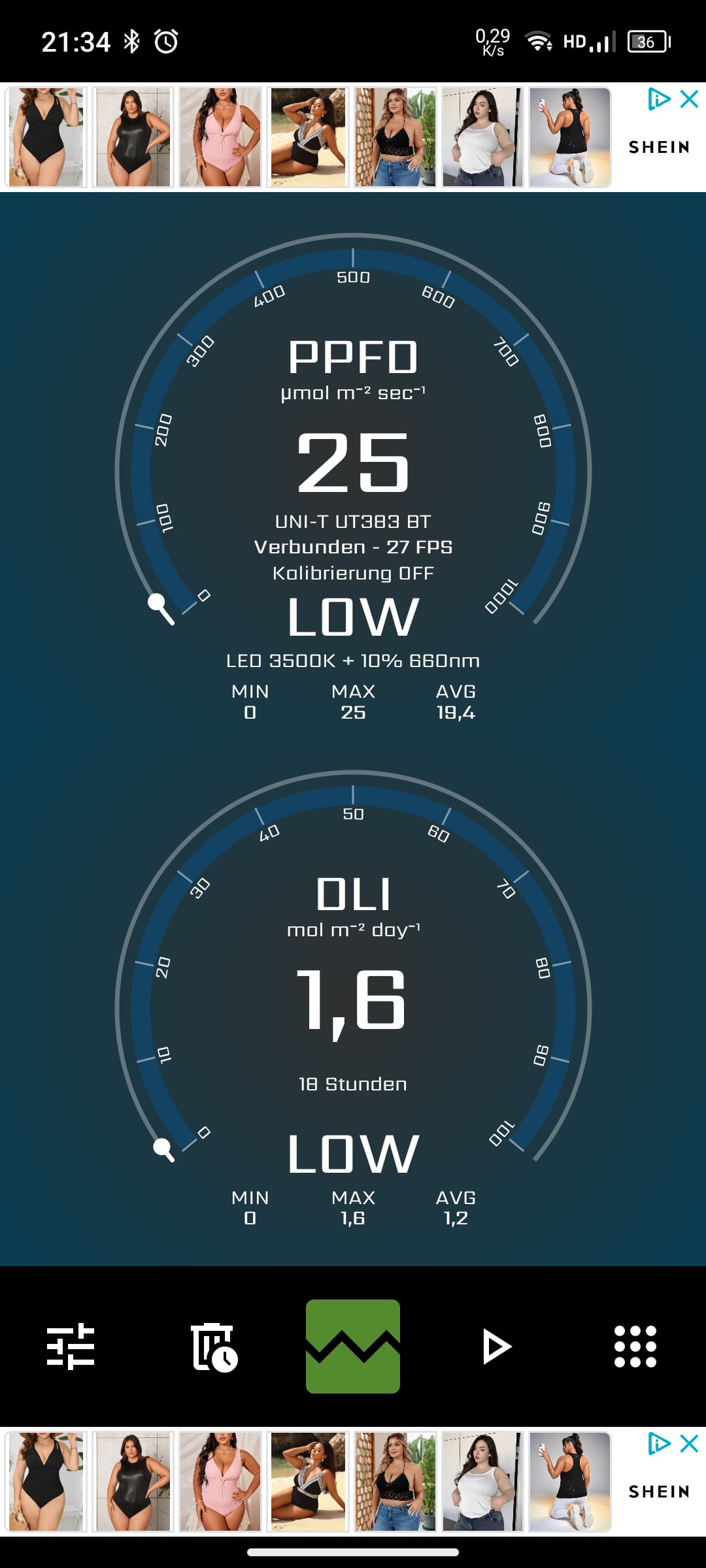 Dann die App mit dem empfohlenen Bluetooth Luxmeter gekoppelt dann passen auch die par Werte vom Hersteller der Lampen mit dem Messgerät/App