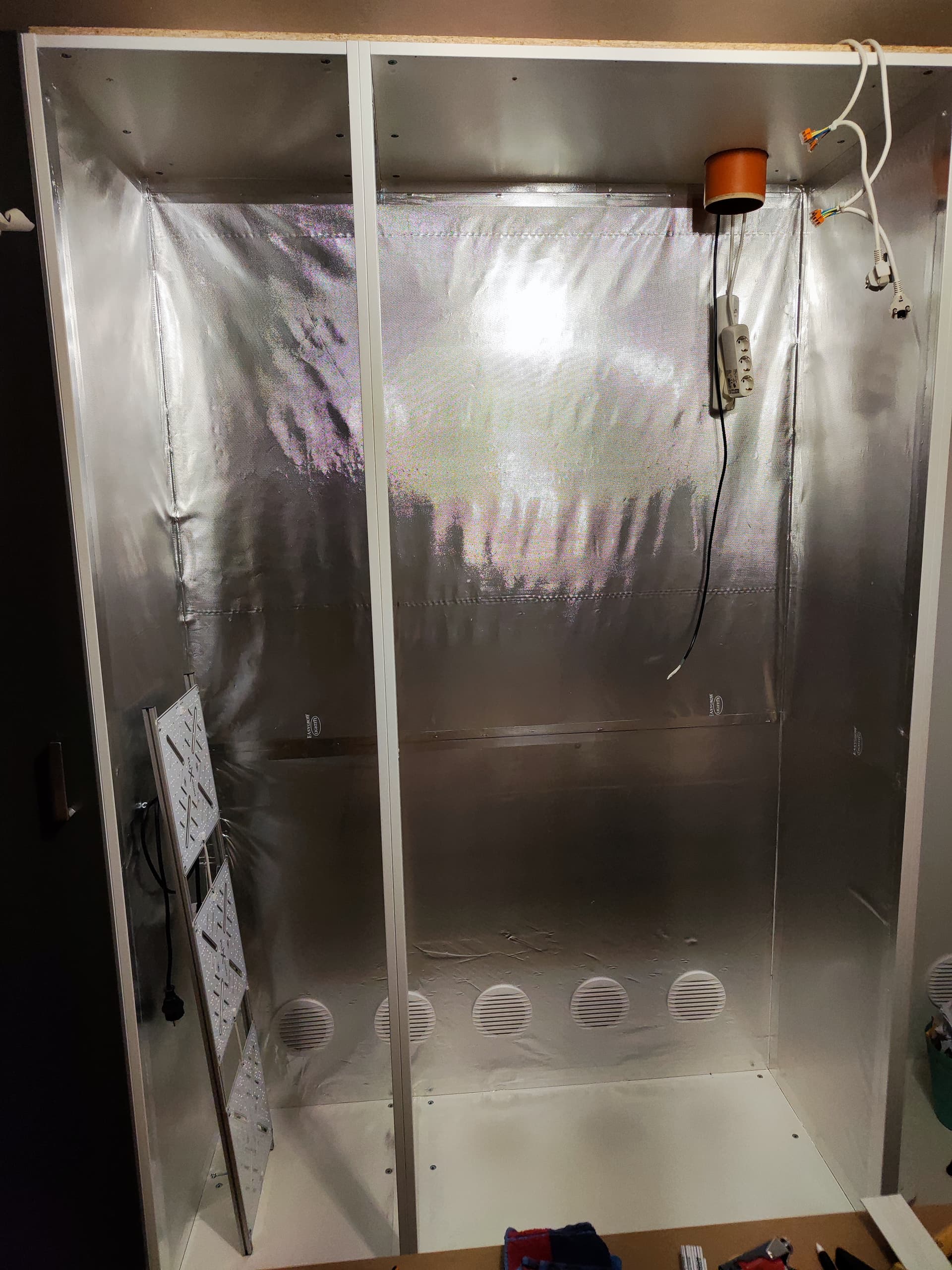 Ein paar Querstangen auf verschiedener Höhe plane ich auch noch, wobei ich mir nicht sicher bin ob ich auch rundrohre benutze, dachte an ein system wo ich zb den Lüfter anbringen und jederzeit auf einer schiene bewegen kann, vielleicht auch automatisiert auf und ab fahren lasse. Aber mal schauen, rundrohre sollte auch Taugen.. kann irgendwann wenn es mich stört immernoch ändern. Aber mal schauen was die Tage so mit sich bringen.