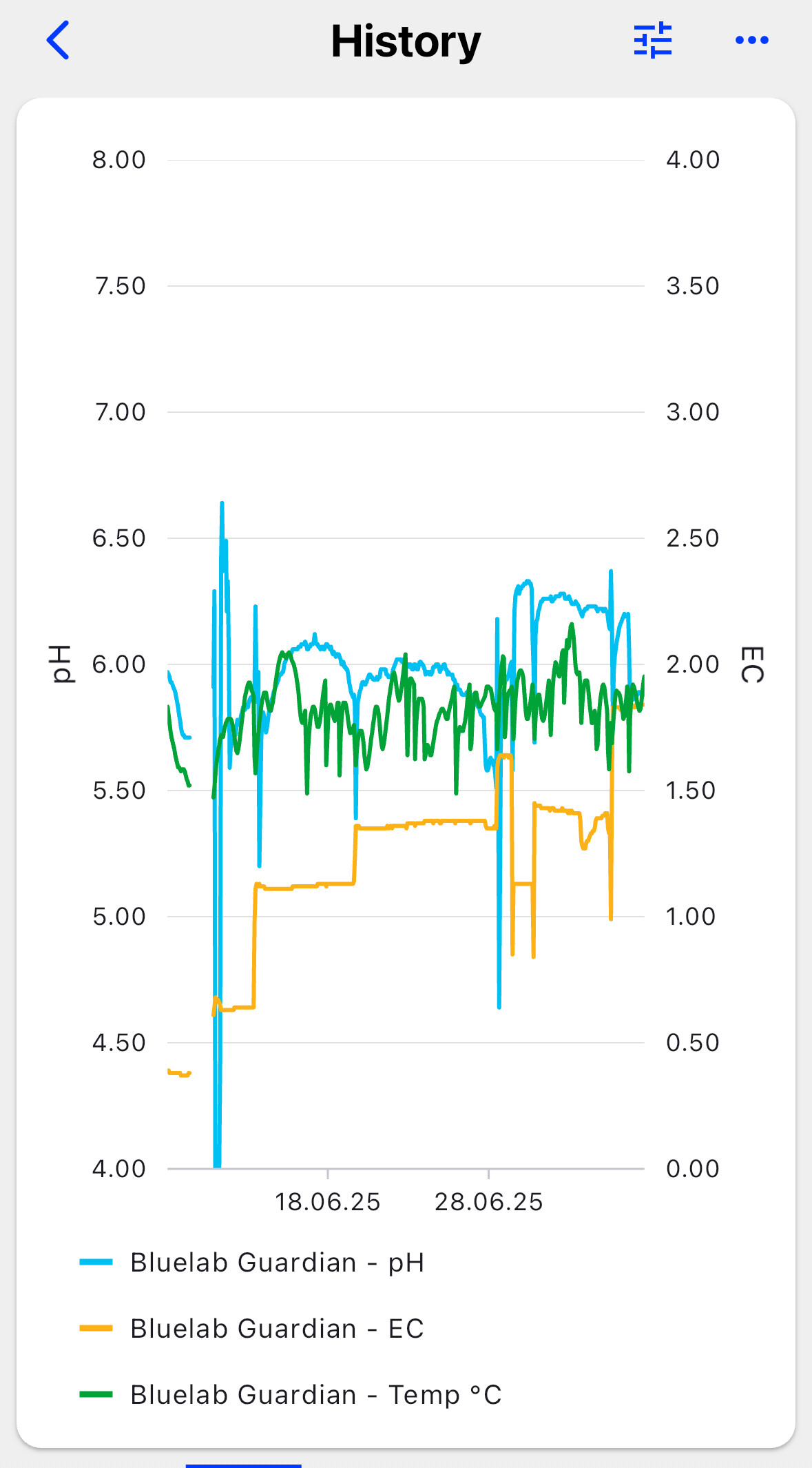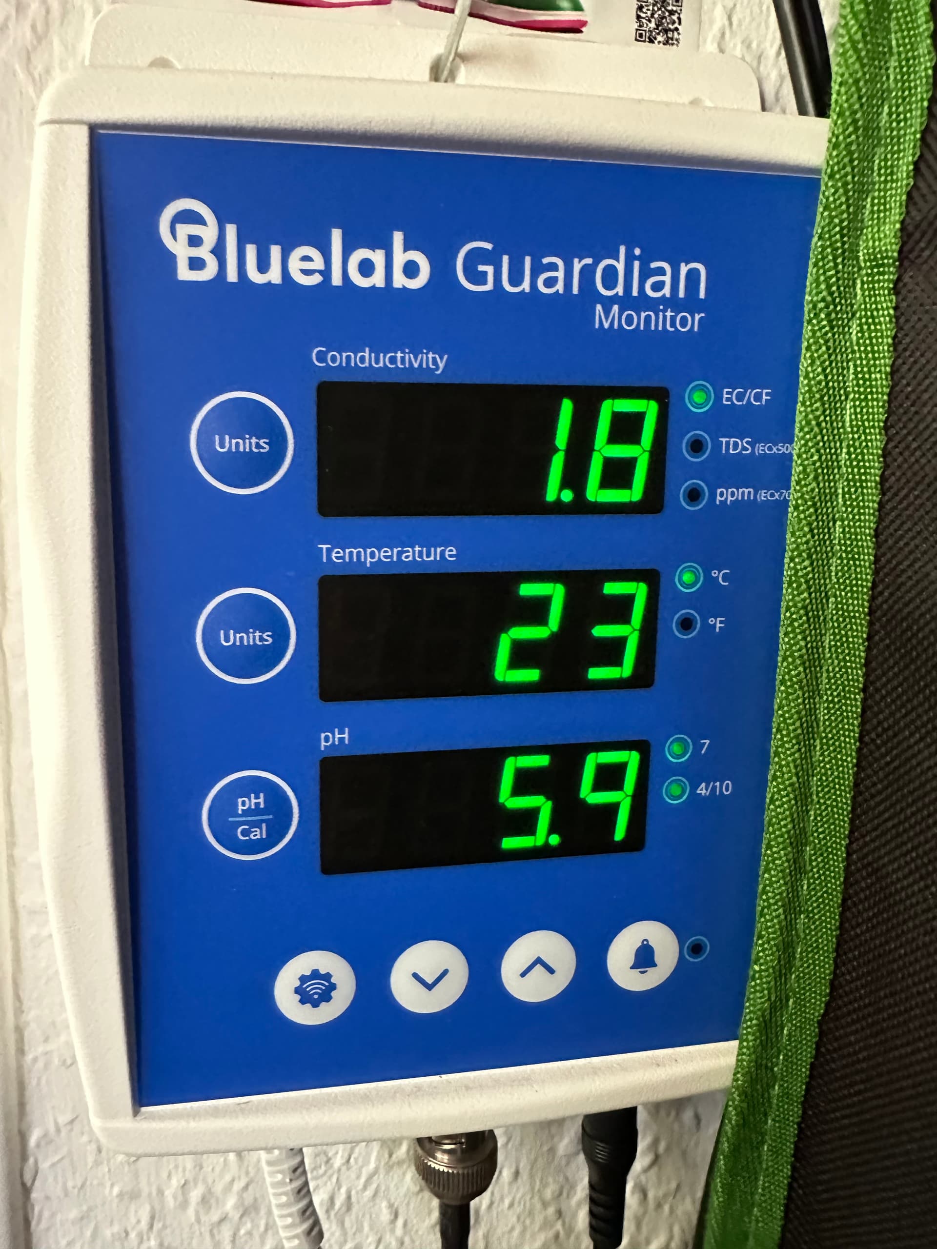 pH steigt auf 6,3 – kein Stress, Bluelab Guardian (ATC) regelt.