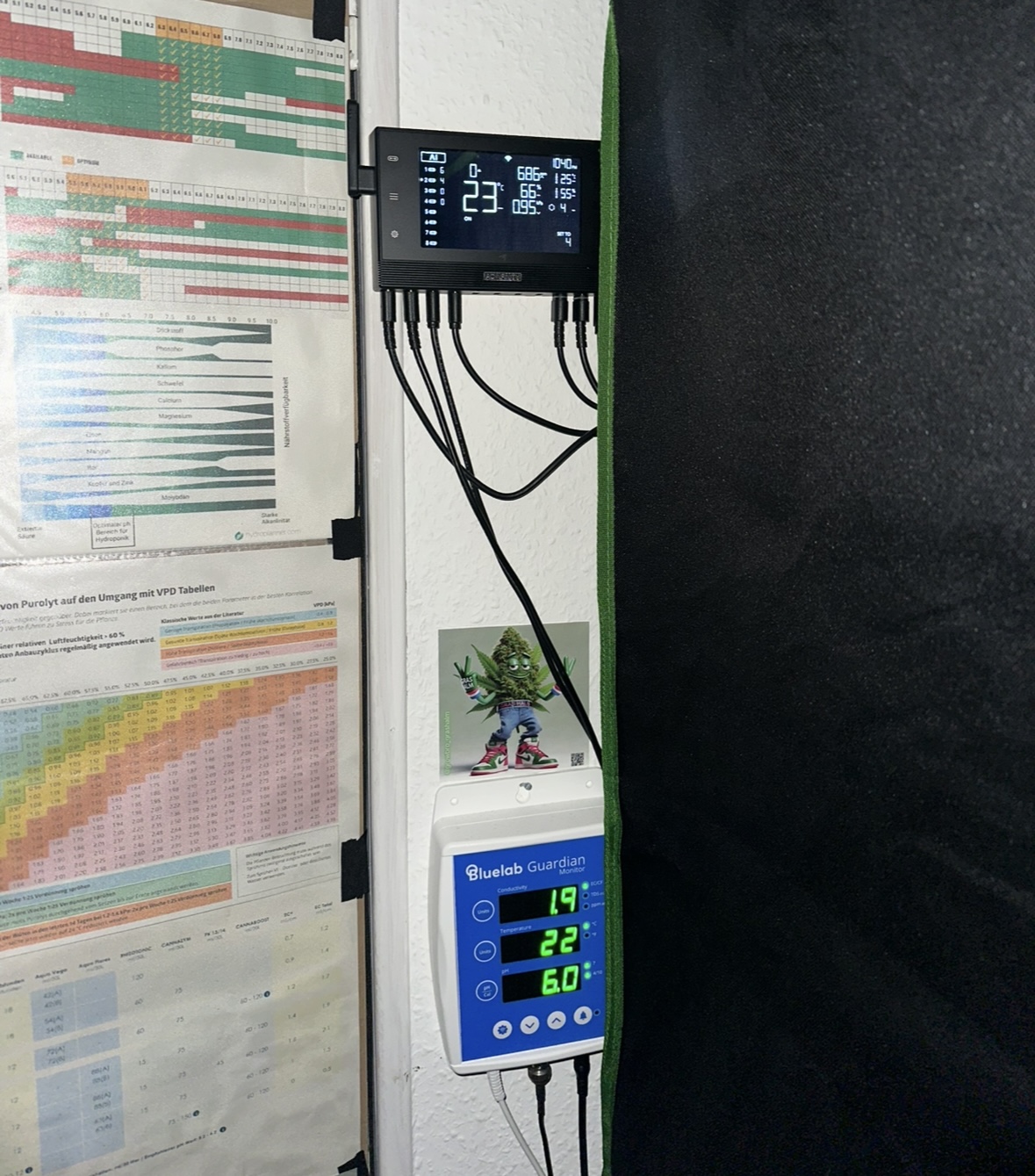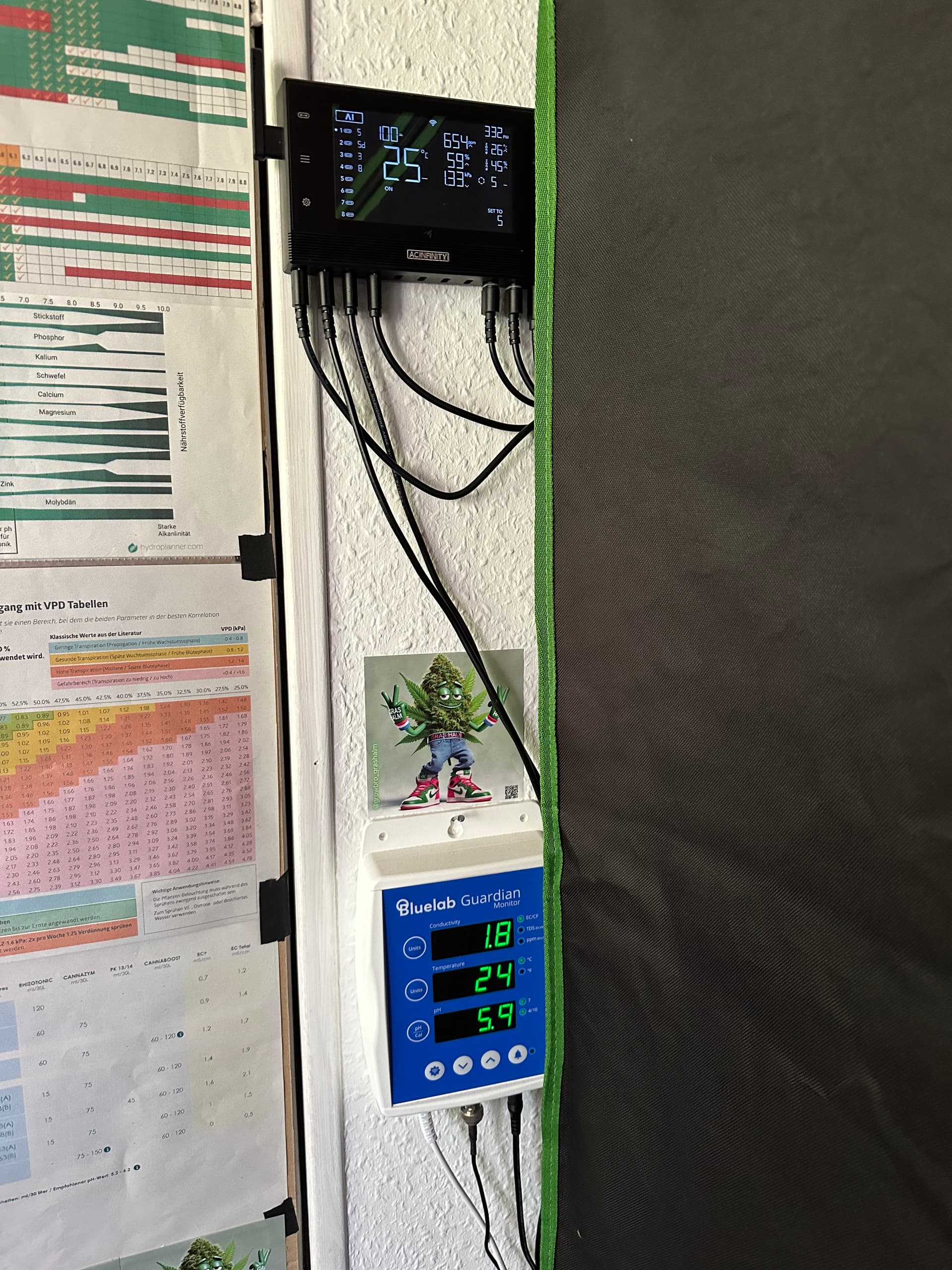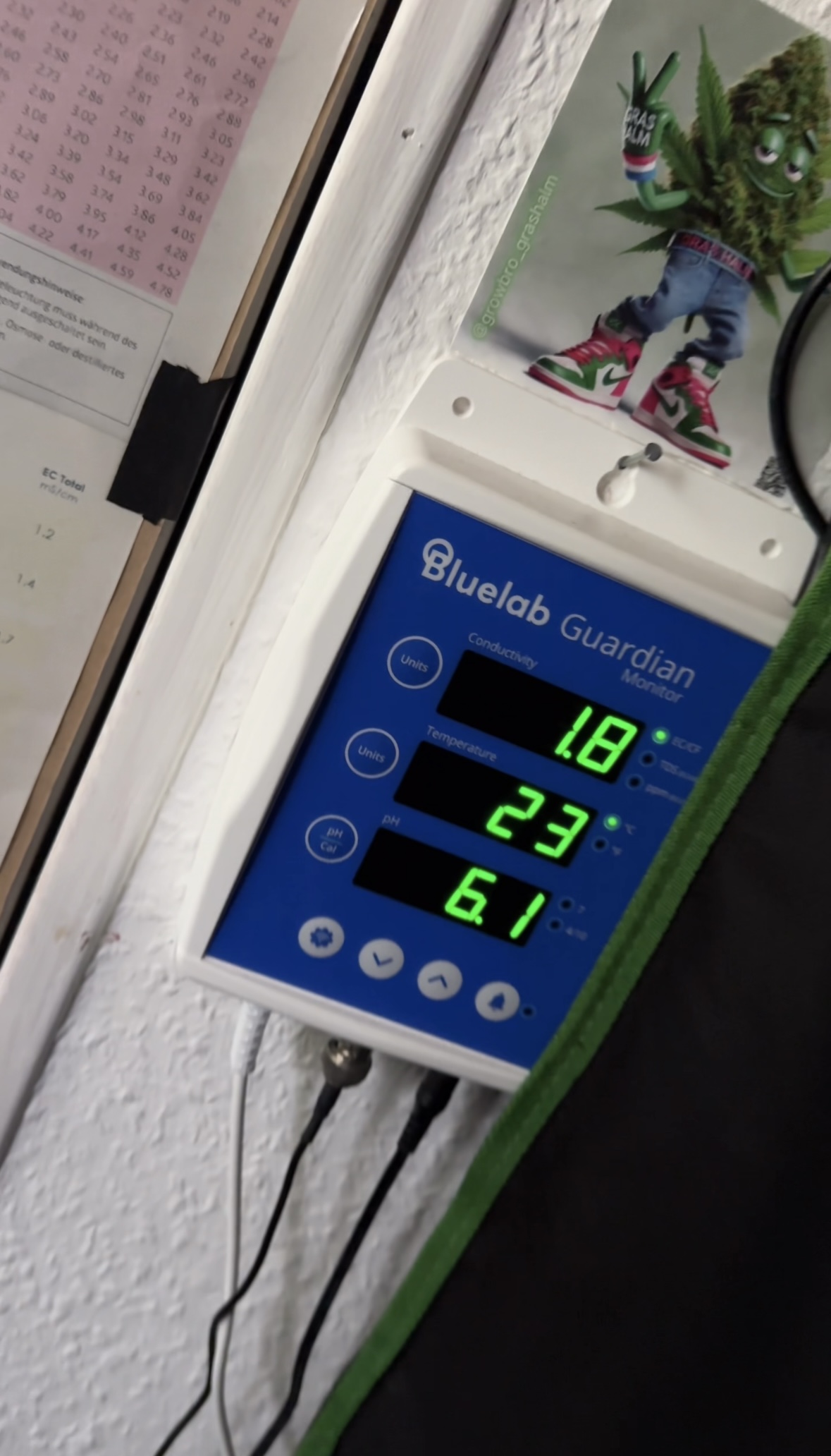 Zurück von der Mary Jane Messe → #2 zeigt erst spät Wurzeln → Tropfbewässerung leicht verlängert → Erfolg, danke stetiger Überwachung mit Bluelab Guardian in Verbindung mit Edenic (siehe Werte im Screenshot ganz unten)