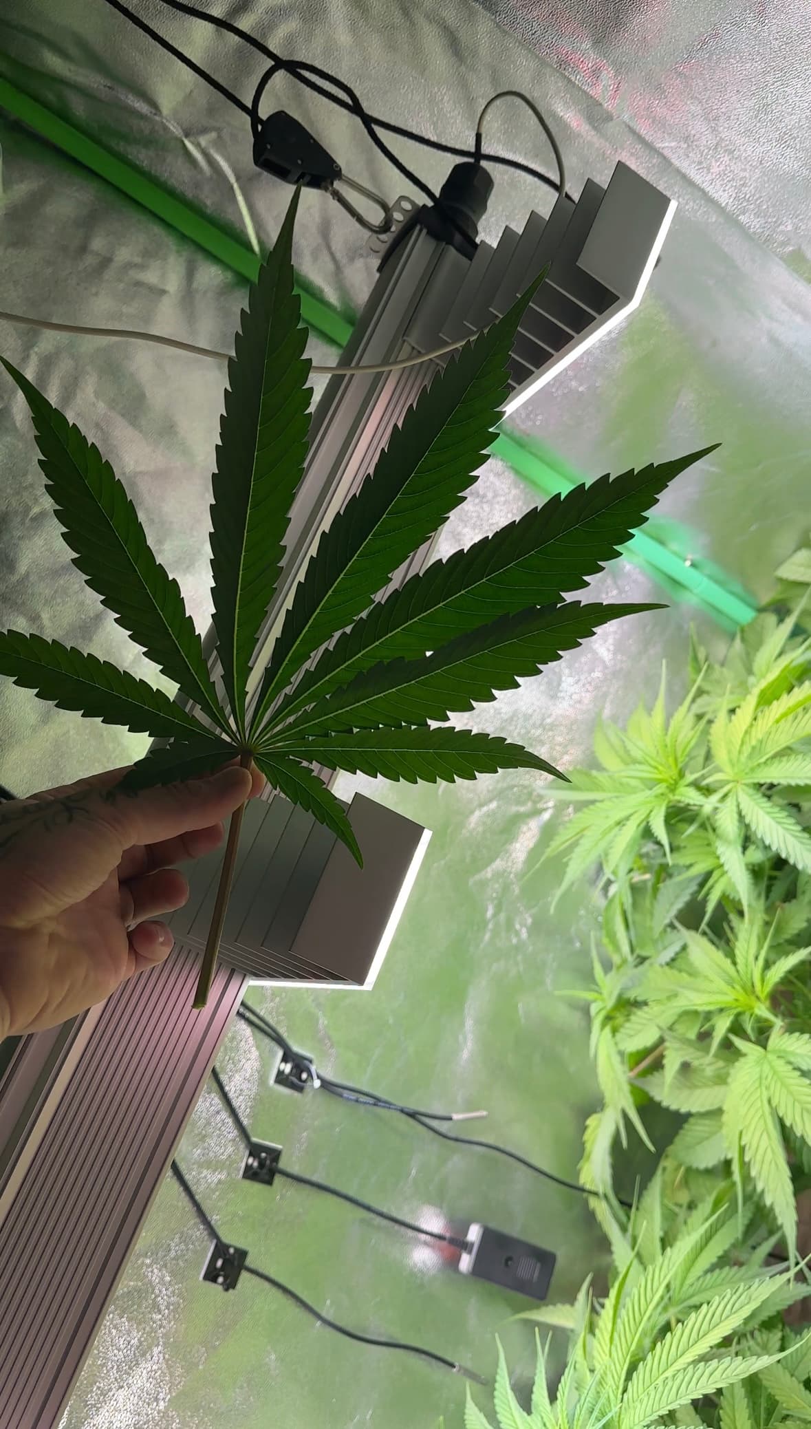 Licht auf 50 % (~770 µmol → DLI 33 bei 12/12).