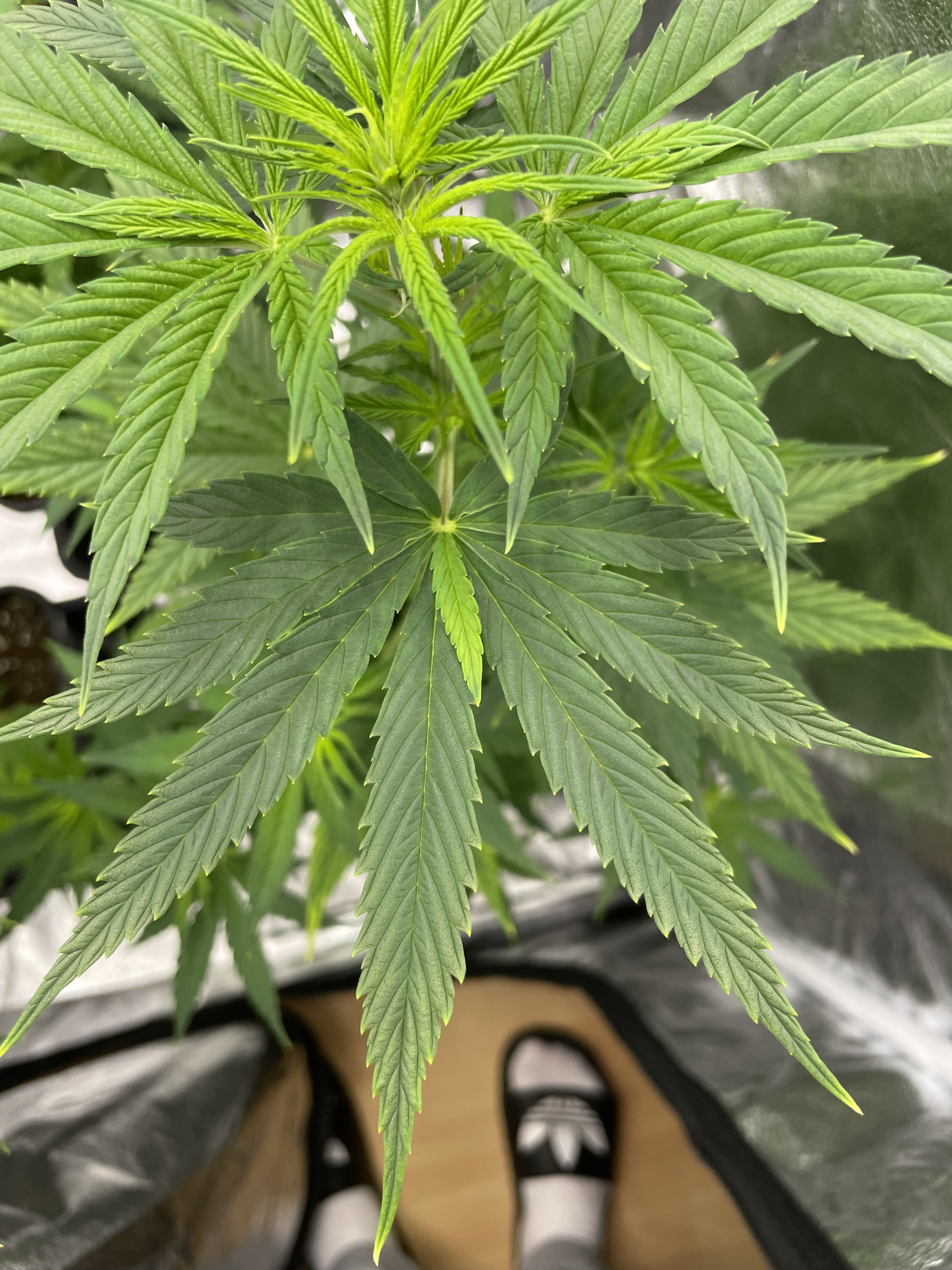 Vorweg: Mit der Mutation meinte ich nicht, dass die Pflanze Blätter mit 8-Fingern hat, sondern die Pflanze bekommt von vornerein alles 3x (angefangen mit 3 Keimblättern beim Keimling im Jiffy). Normal wäre alles 2x zu bekommen. Das ist mit Mutantin bzw. Mutation gemeint und nicht der Zustand der Pflanze!