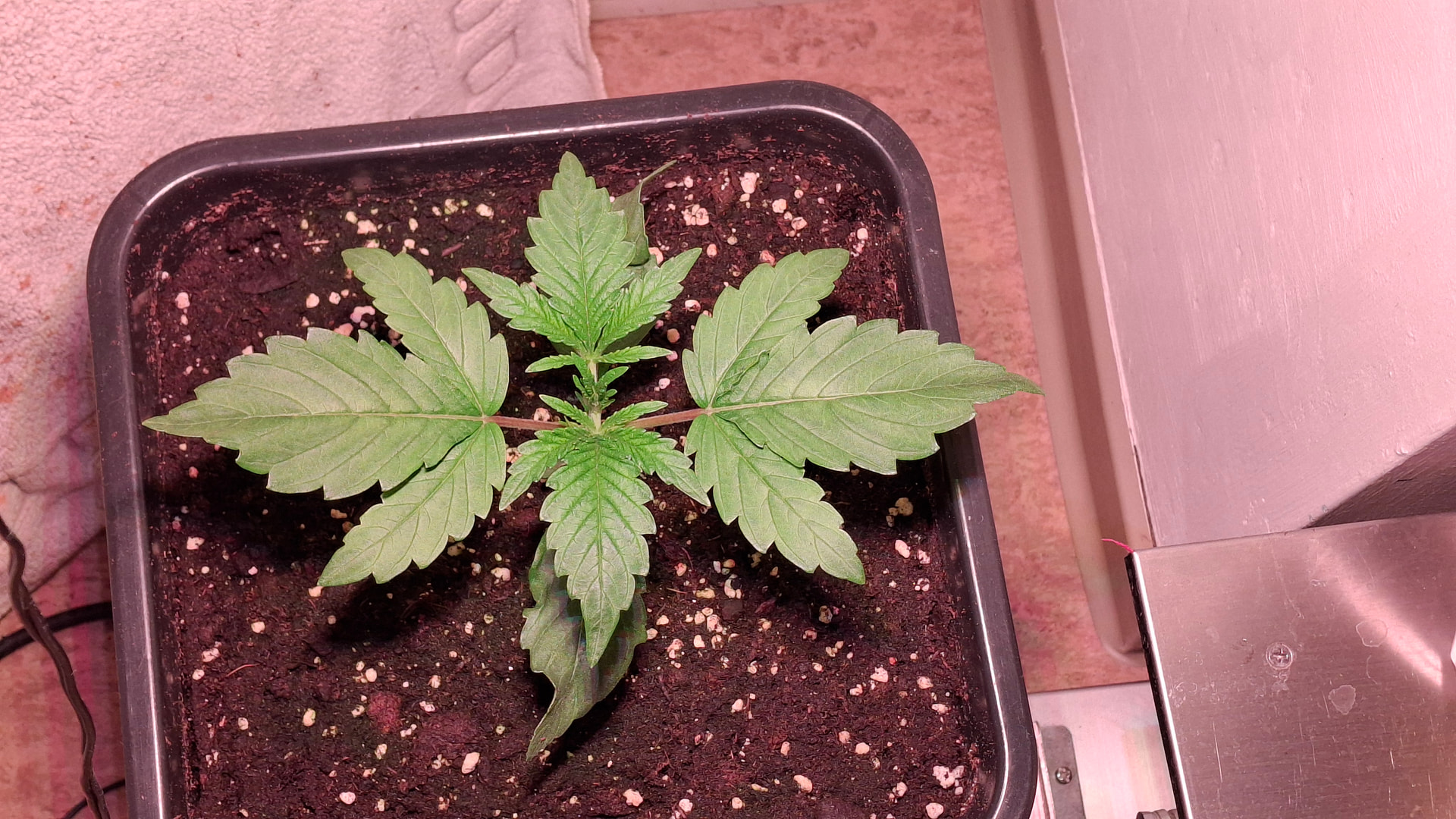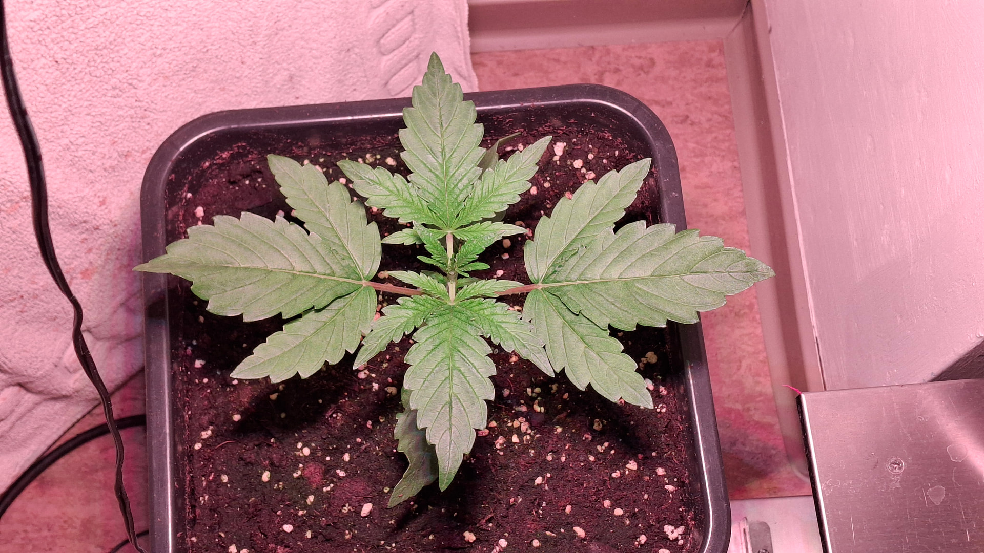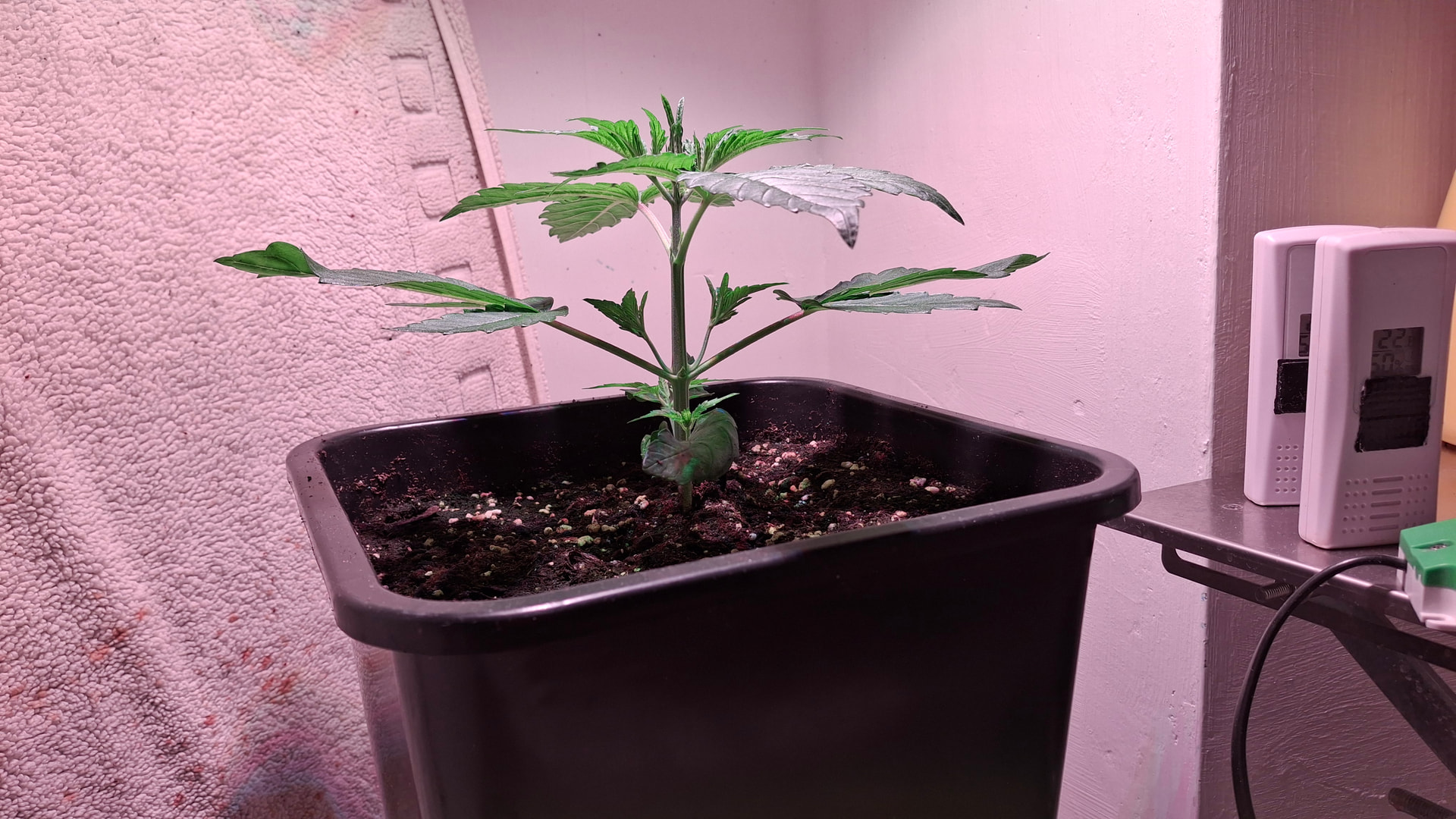 Ich habe mich 10 Tage überhaupt nicht um die Lady gekümmert. Im dreckigen Space stand sie bei ca. 42 % - 46 % RLF - einfach keine Zeit und i-wie auch die Faxen dicke von i-welchen hohlen Nüssen. Diese Big Bud ist auch der 2. Keimversuch gewesen und von daher war meine Einstellung eher Laissez-Faire. Jedoch zum Umtopfen erwachte mein Interesse