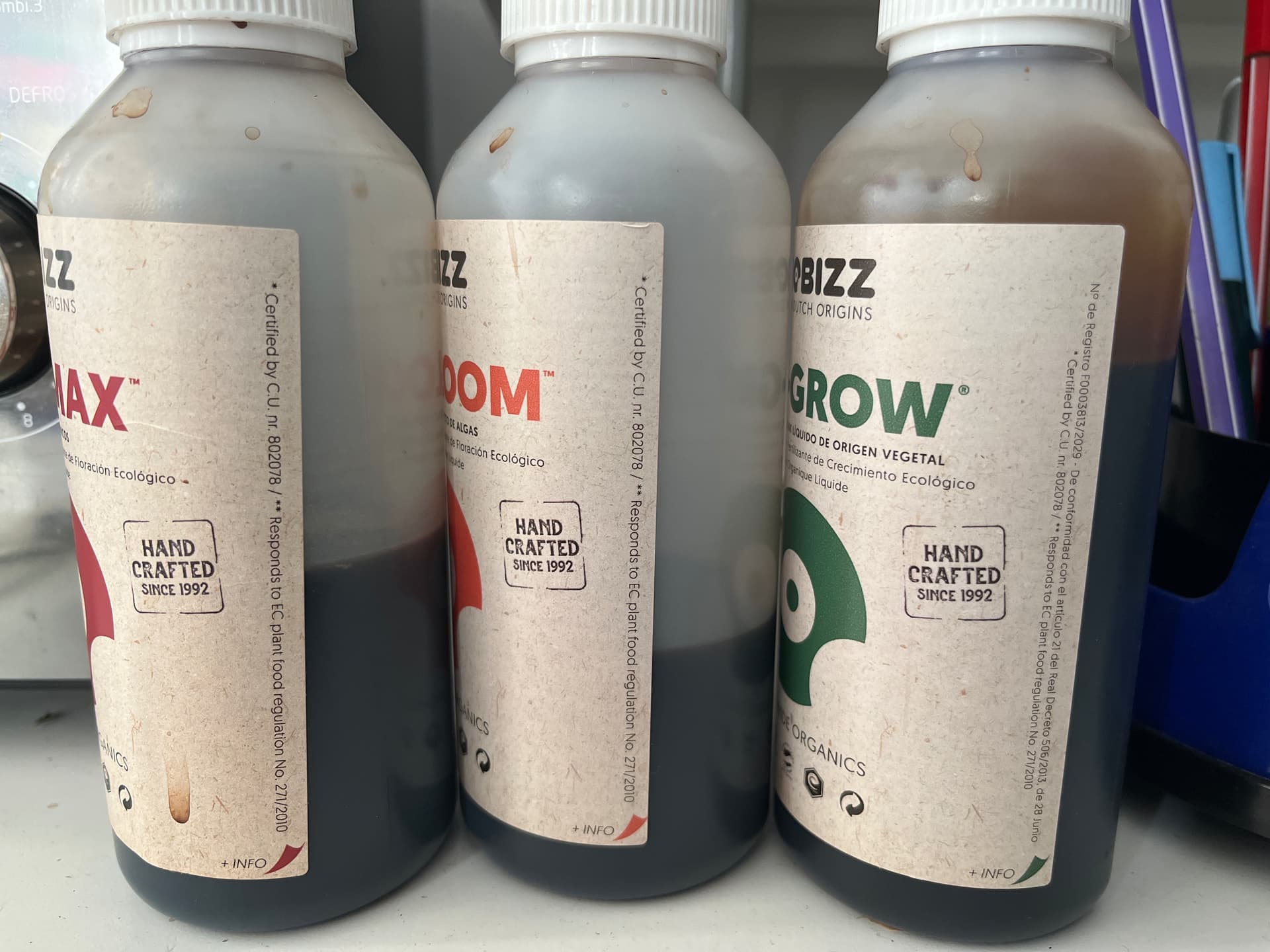 Ich habe hier die gleichen Düngerflaschen seit Jahren… Organisch und Mineralisch, die liegen im Growzimmer im Schrank