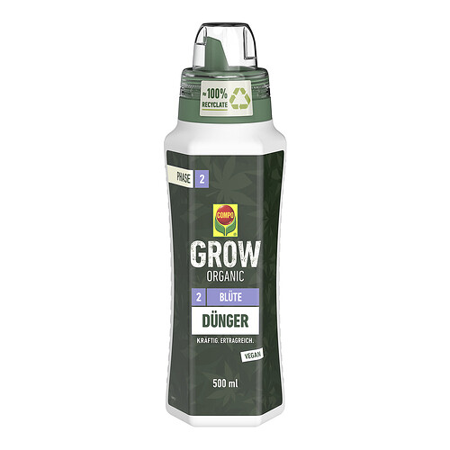 Aus irgendwelchen unbewussten Gründen habe ich mir für meinen letzten Grow den Blüte- und den Wachstumsdünger der „Compo organic Grow“ Reihe gekauft.