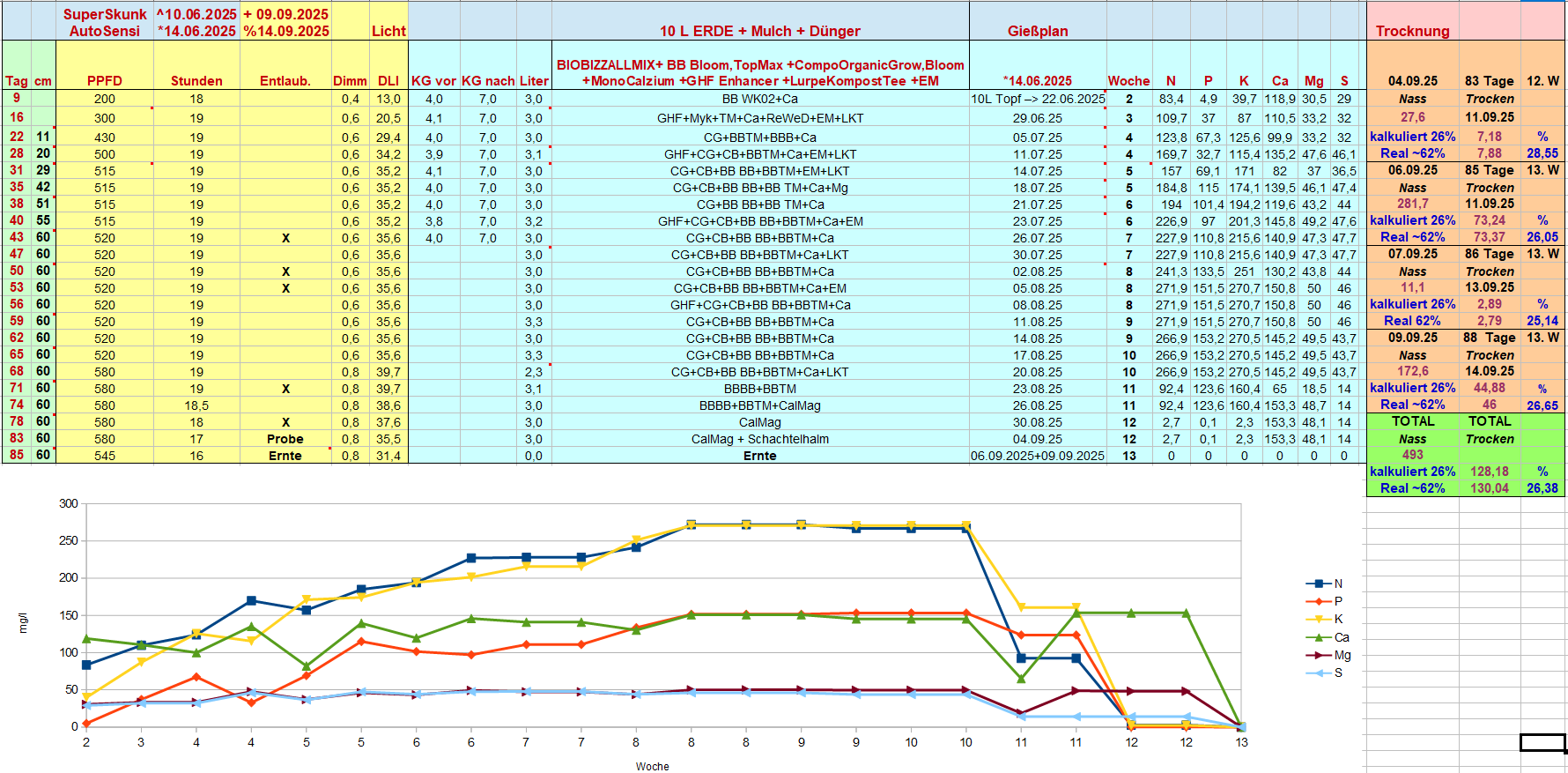 Werte sind mit der Hilfe von dem Düngerrechner von Bergrow und mit meinen Leitungswasserwerten erstellt worden.