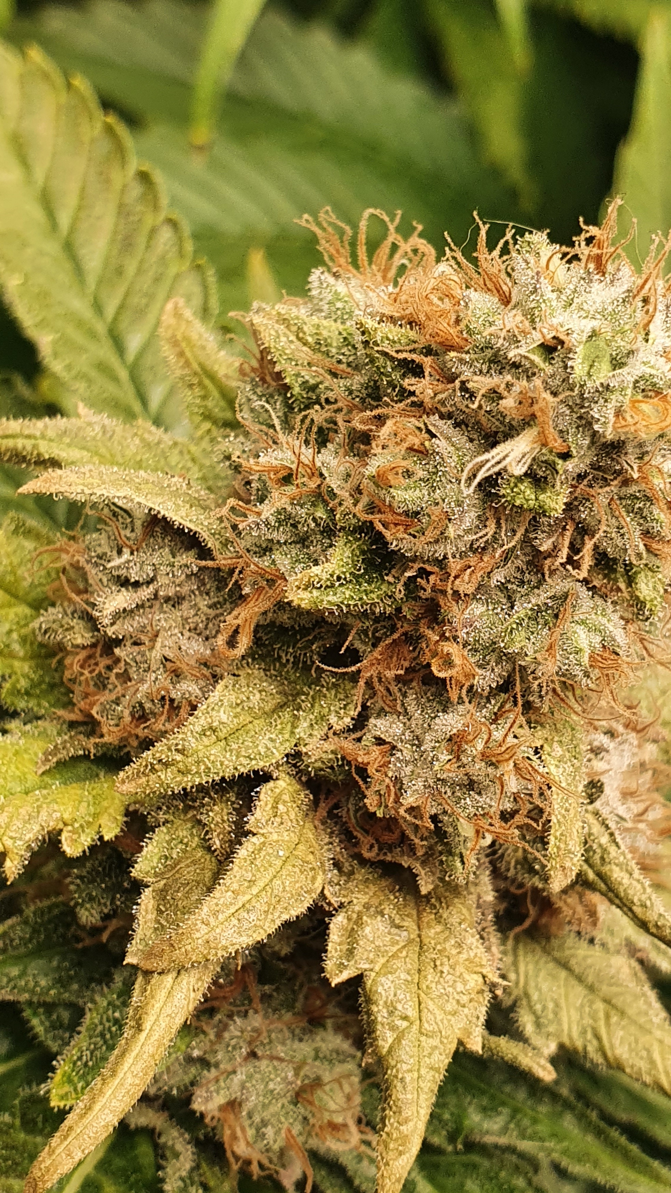 So langsam geht es in den endspurt die Trichome sind noch Durchsichtig, für diese Woche hab ich mir die Arbeit nicht gemacht um euch Bilder der Trichome zu präsentieren da sie noch Durchsichtig / Milich sind. Die Nachtphasen habe ich versucht so kalt wie möglich zu gestalten um das Dunkle der Dominas zur geltung zu bringen ein wenig hat es geholfen. hoffe ich war bin nicht zu früh oder zuspät dran. im großen und ganzen ein echt prächtiger STrain der optisch wirklich was her macht bin auch aufdenm ertrag gespannt da ich einpaar richtig dicke colas hab