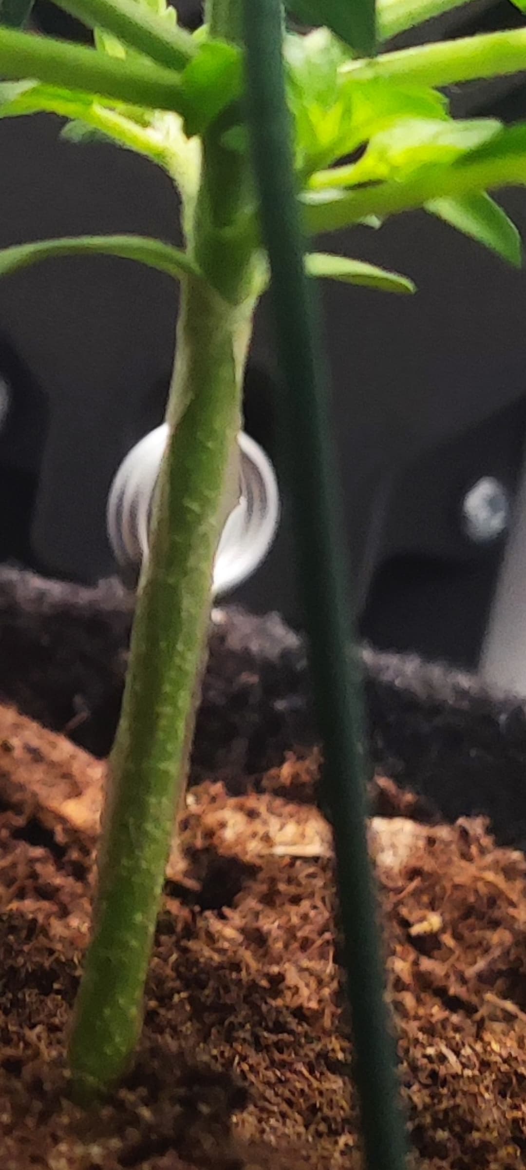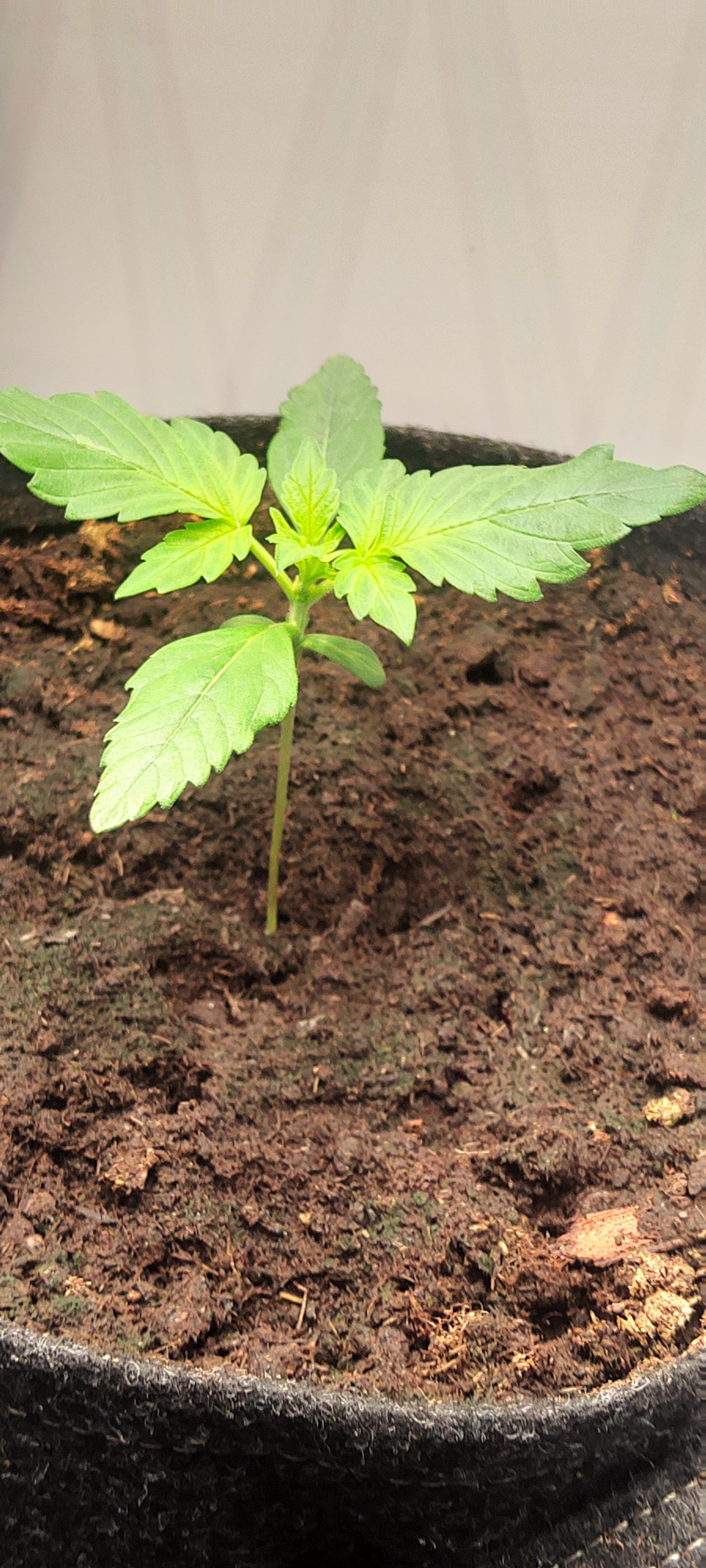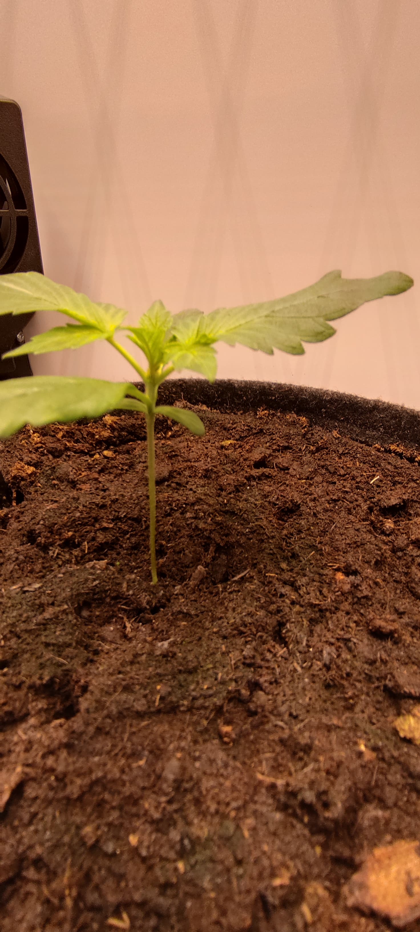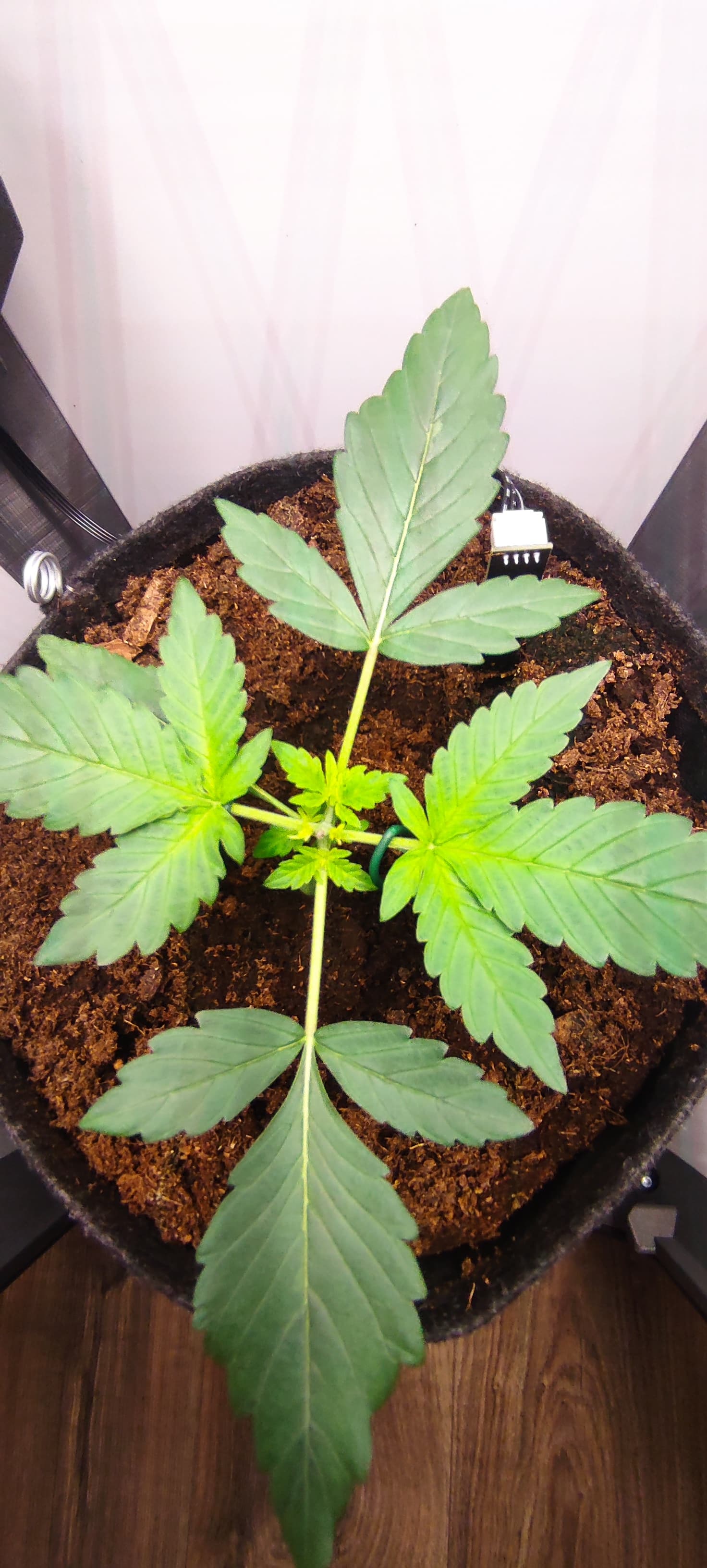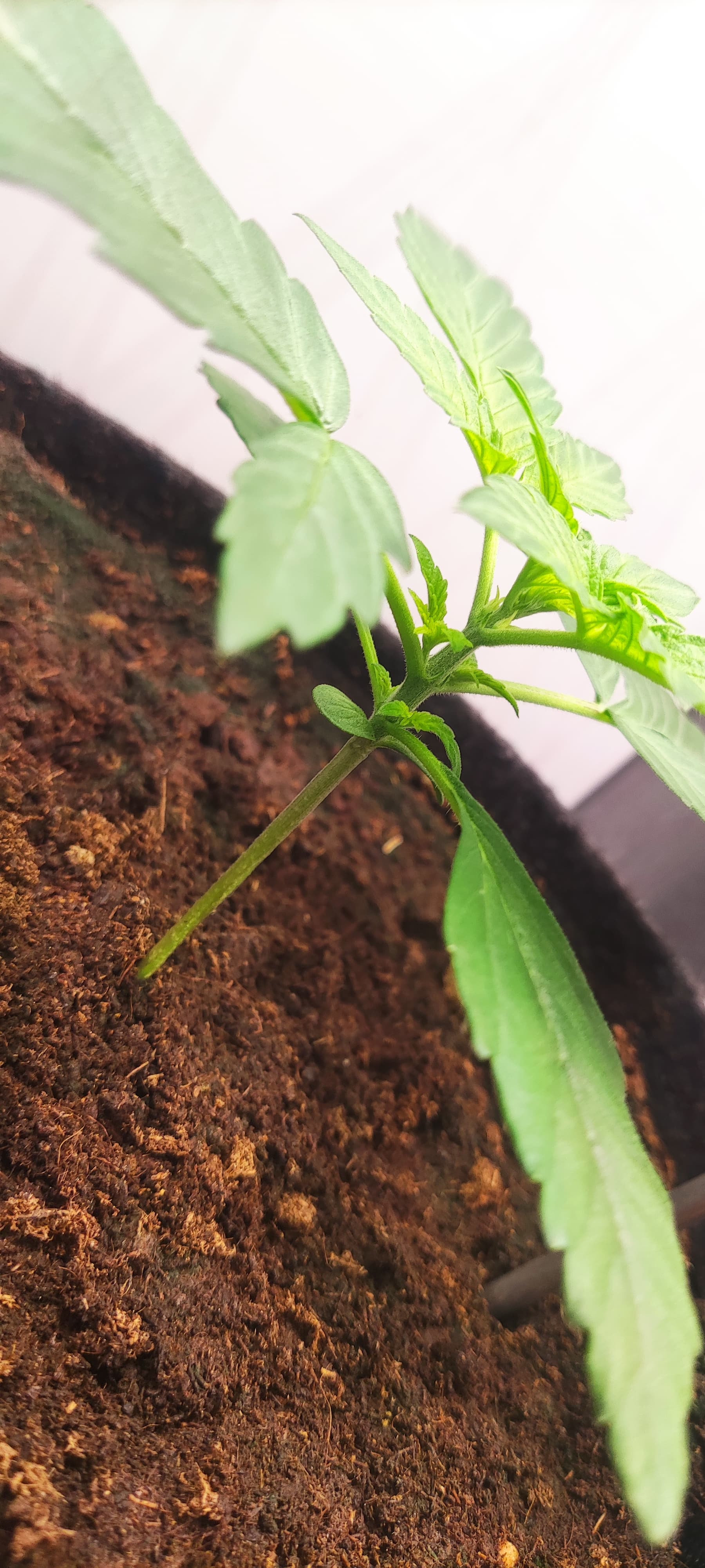 Ich bin wirklich sehr sehr angetan von dem Internodien Abstand. Und ich glaube das Blattpaar welches zurzeit ausgebildet wird, ist mein erstes 5-Fingriges auf Internodie Nr.4