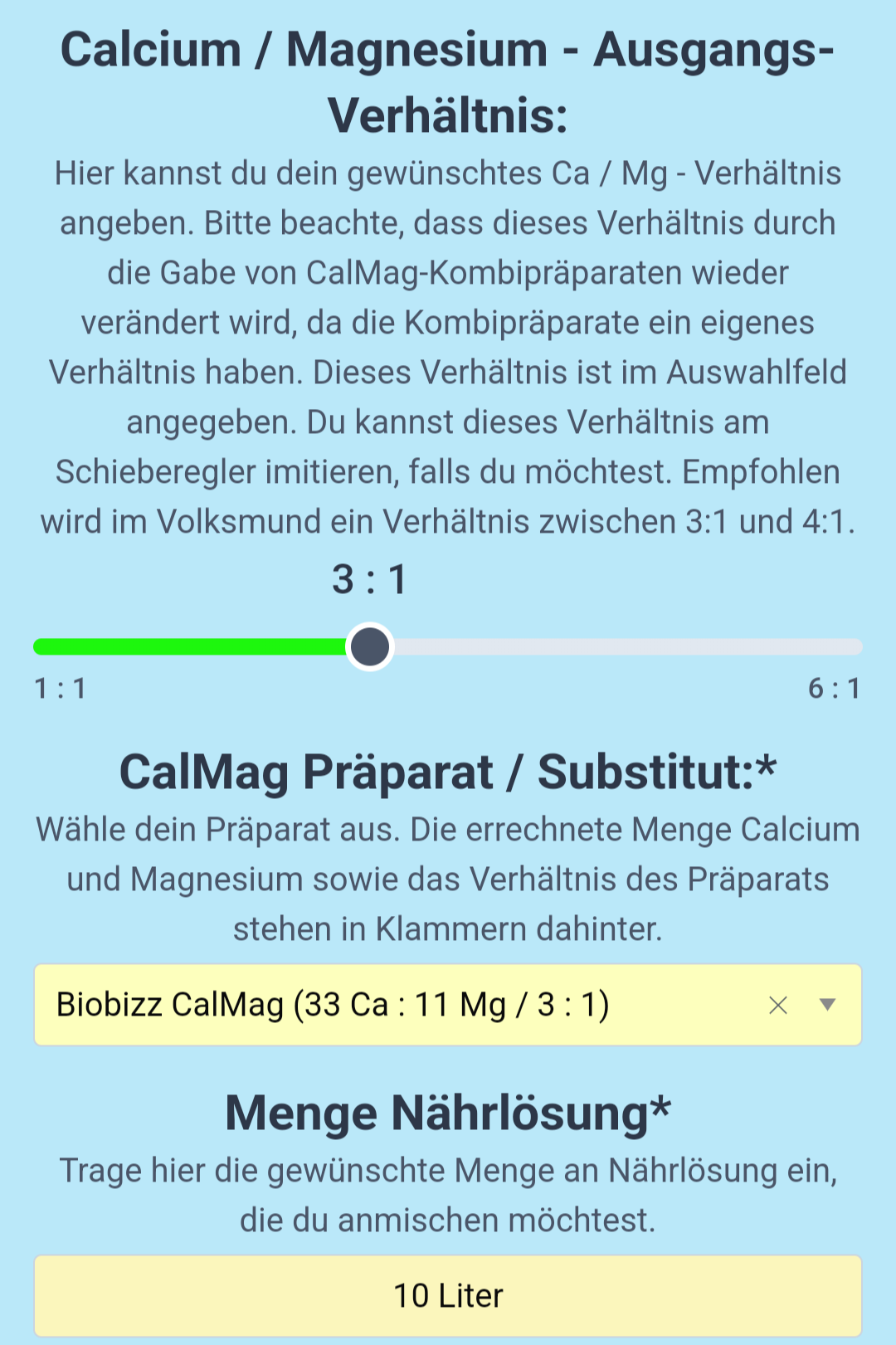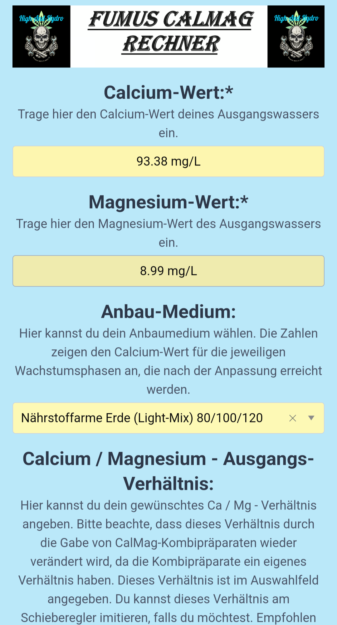 Und im Rechner habe ich angegeben das ich CalMag nutze.
