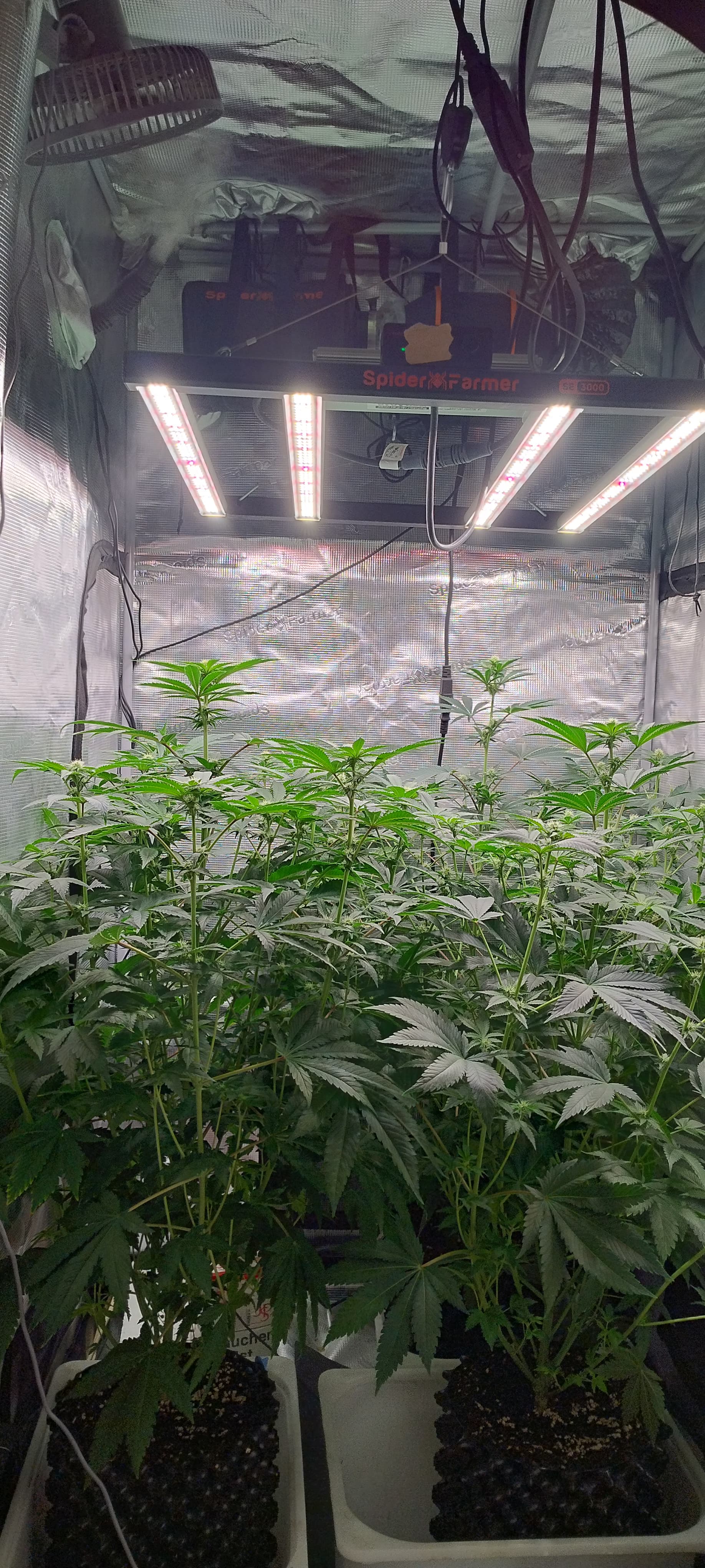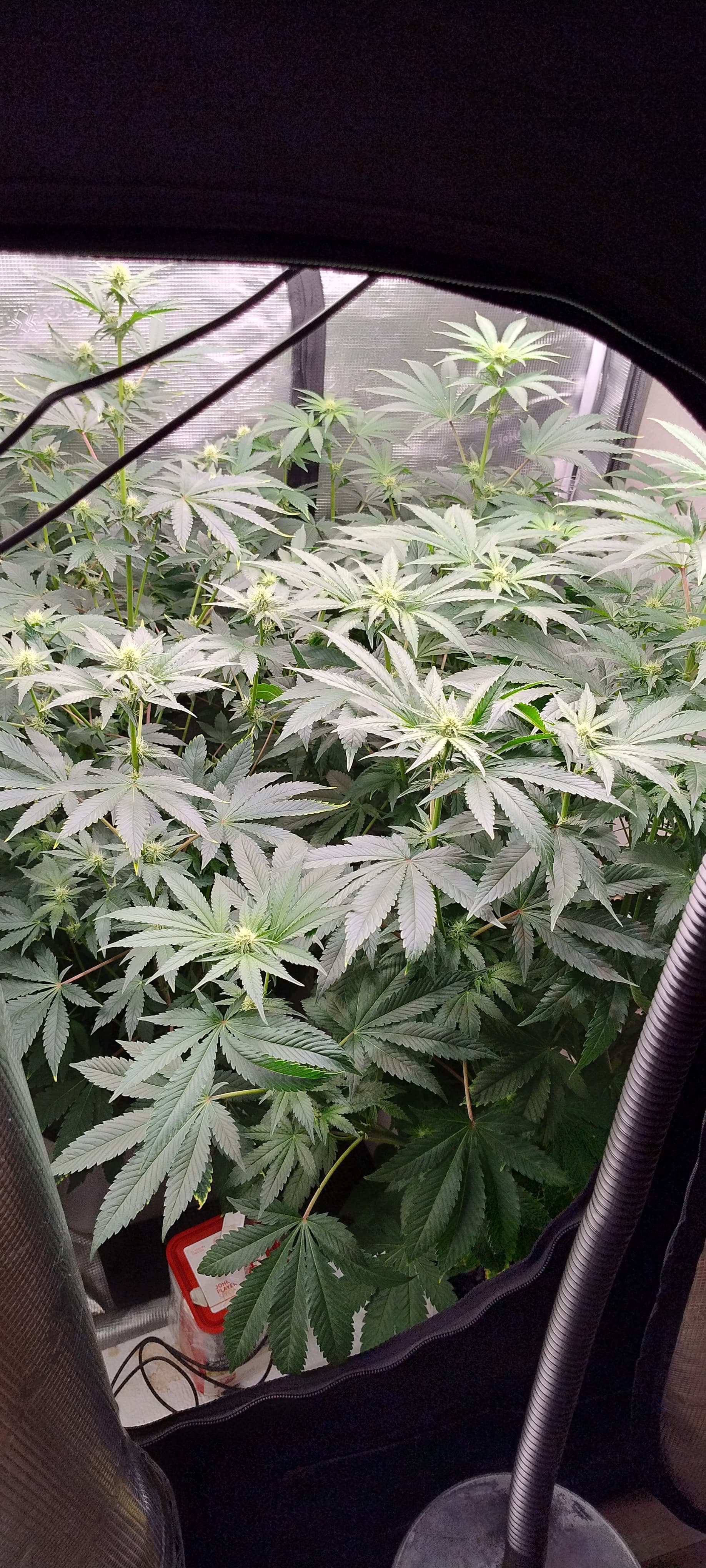 Da wir nun aber auch die 3te Blütewoche bereits rum haben fast wäre eine Kombination des anpassends des AFK plus Filter anzuraten,aber auch durch kräftiges defolieren vor allem in den oberen 60-70% des Pflanzenbereiches wichtig damit die Pflanzen merken es kommt genug Licht von allen Seiten an die Buds ran und sie muss sich nicht aus sich herausstrecken.