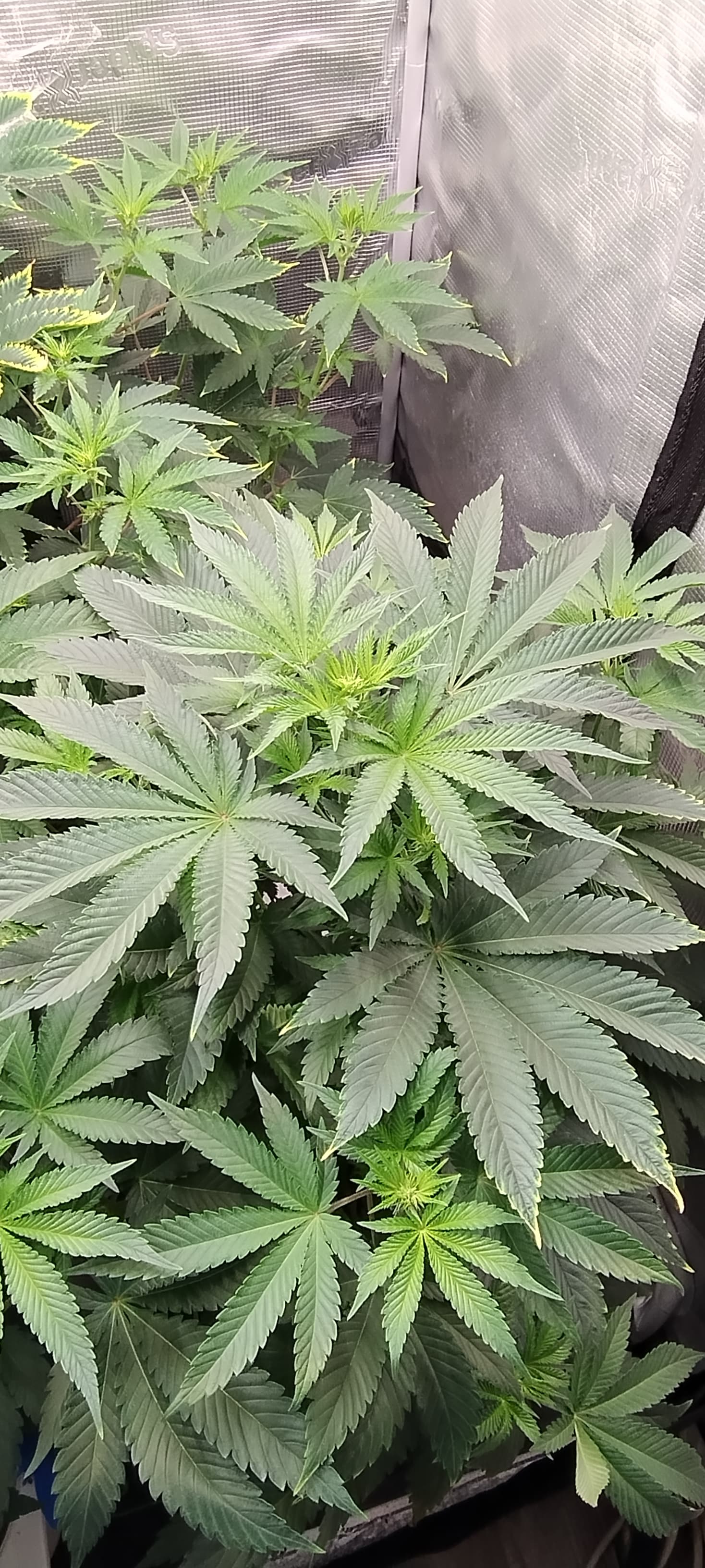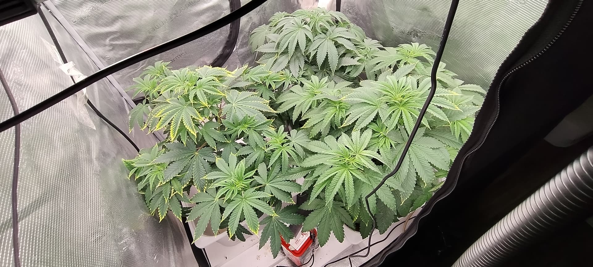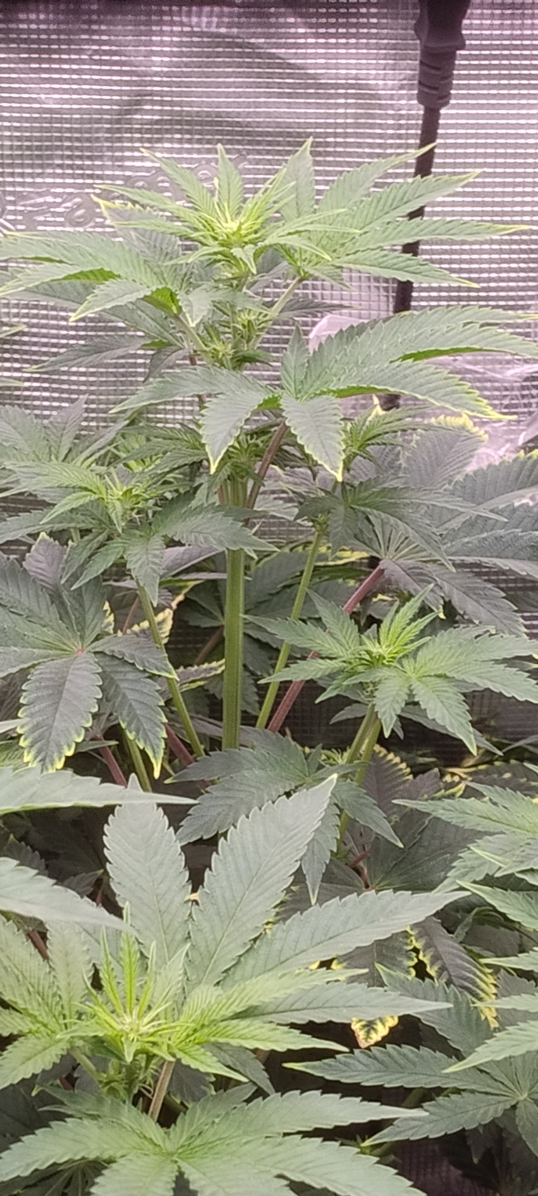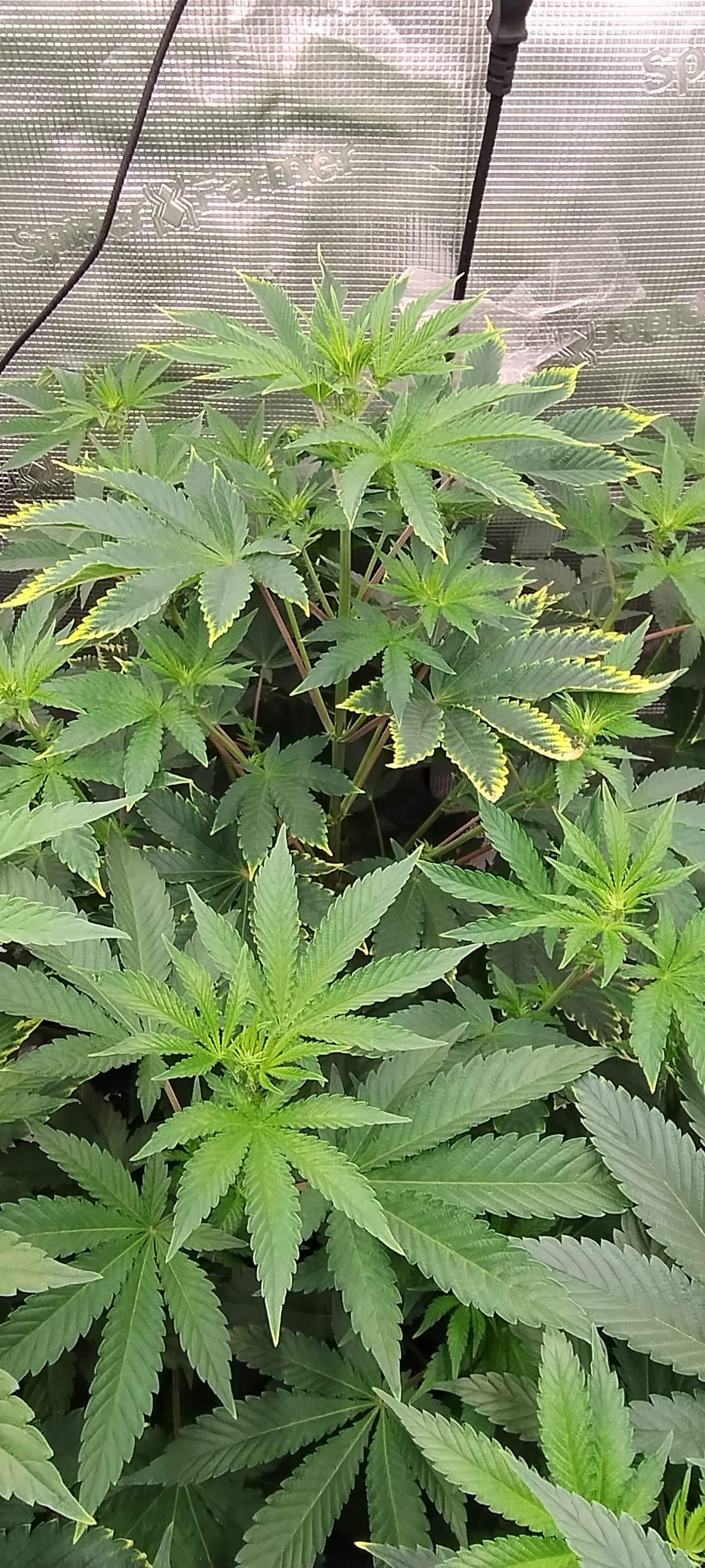 Sieht mir aus das der Kalium Mangel ganz leicht wieder anfängt und manche kleineren Blätter einen Leichten Eisen Mangel haben.