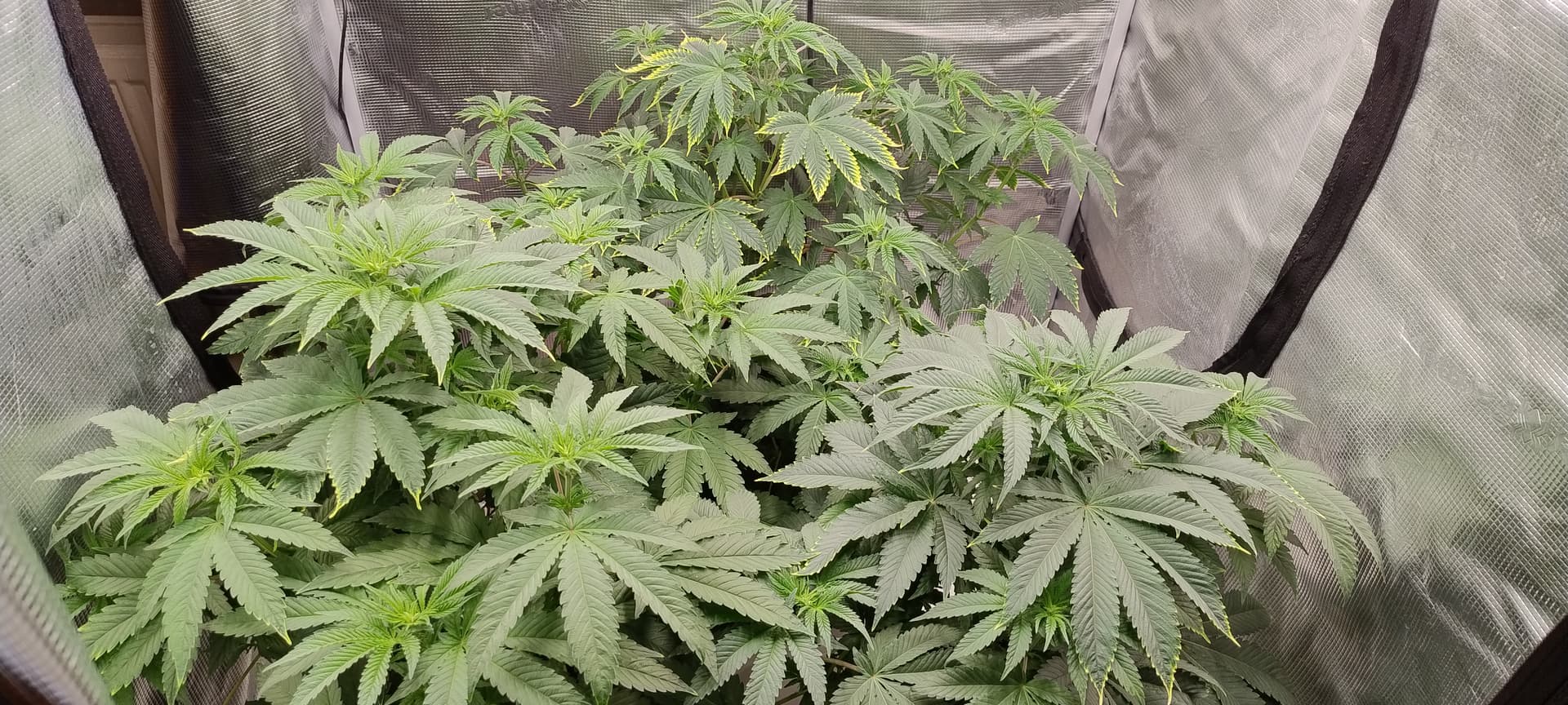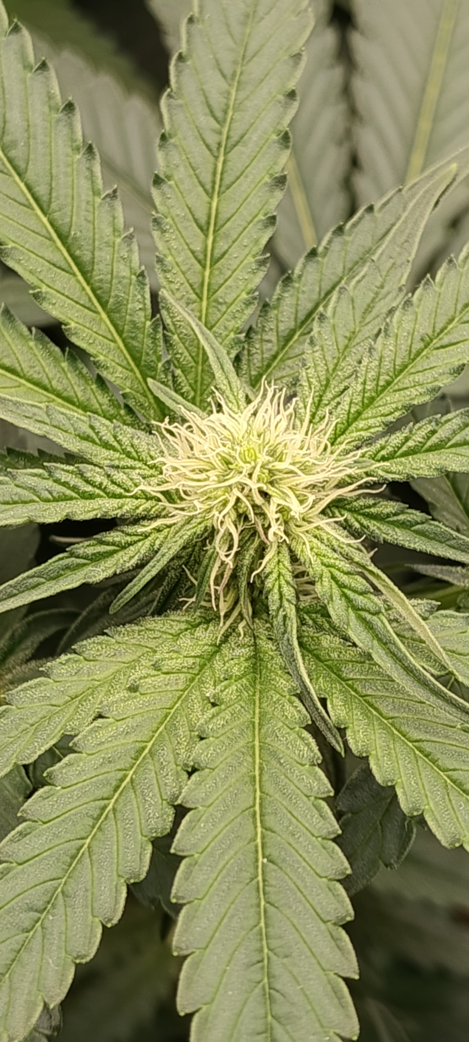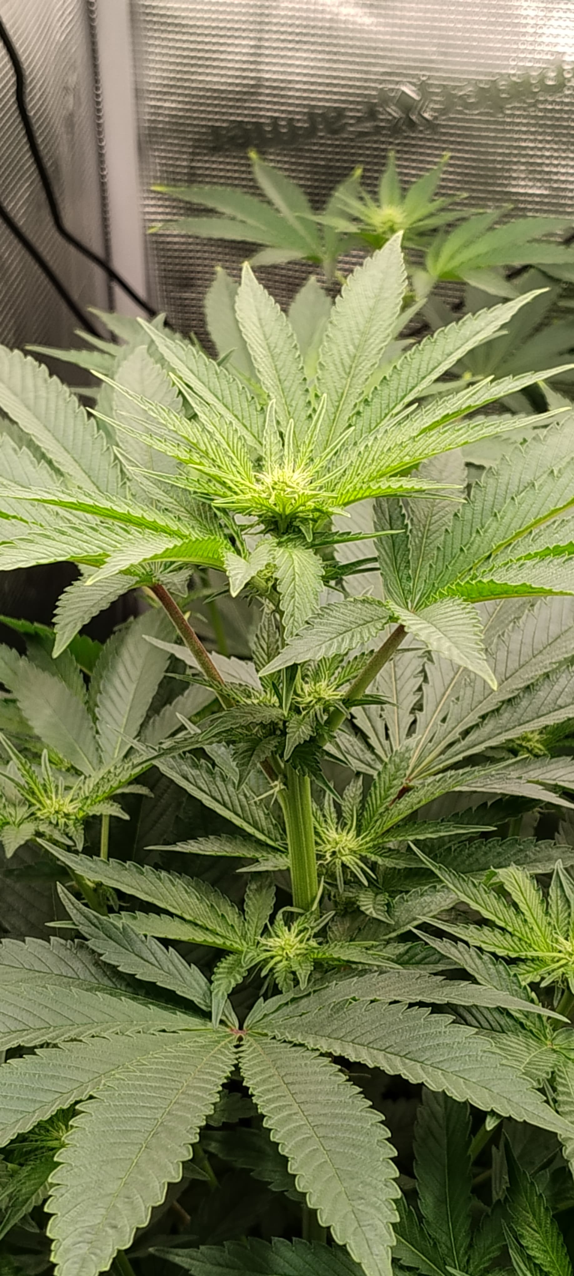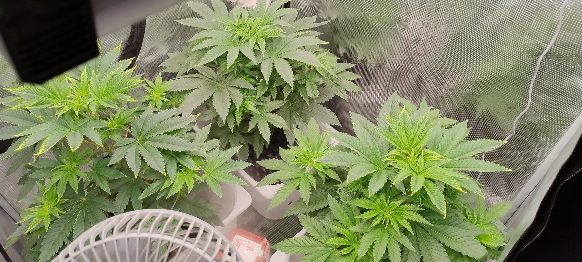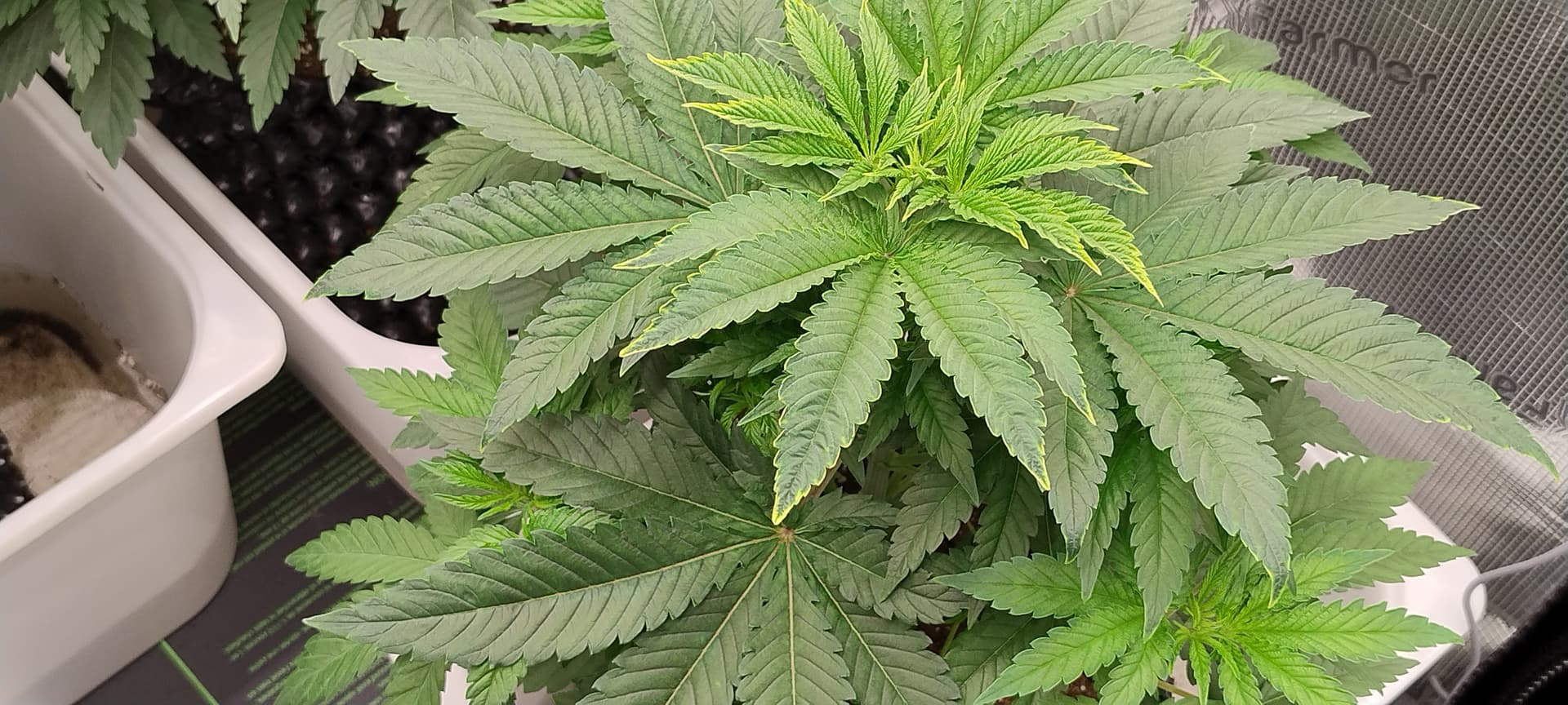 Sieht mir aus das der Kalium Mangel ganz leicht wieder anfängt und manche kleineren Blätter einen Leichten Eisen Mangel haben.