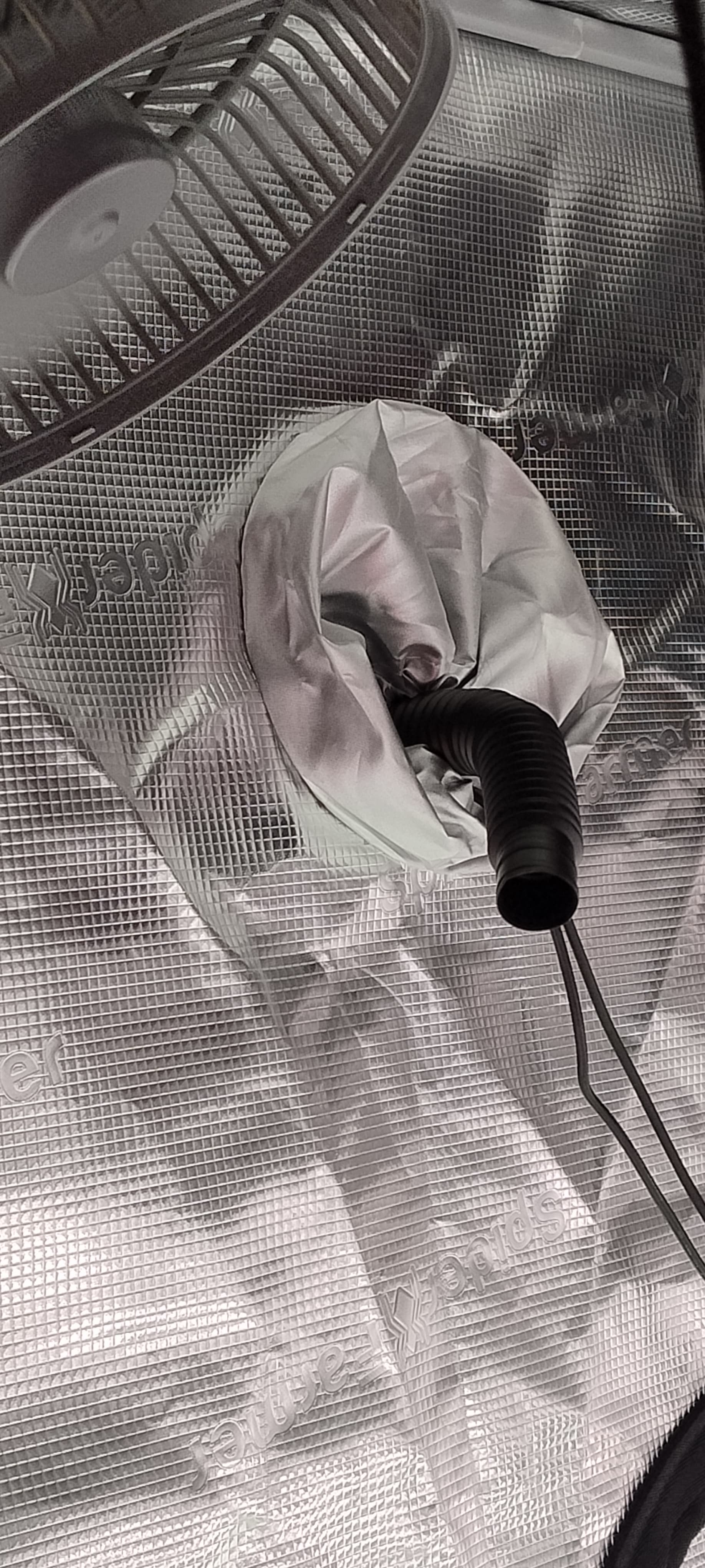 Zum ansaugen dann am liebsten den Schlauch direkt neben der Lampe so das diese so weit wie möglich nach oben kann und du mehr Abstand zu den Spitzen der Pflanzen bekommst da sie nun hier und da ein Streck zeigen.