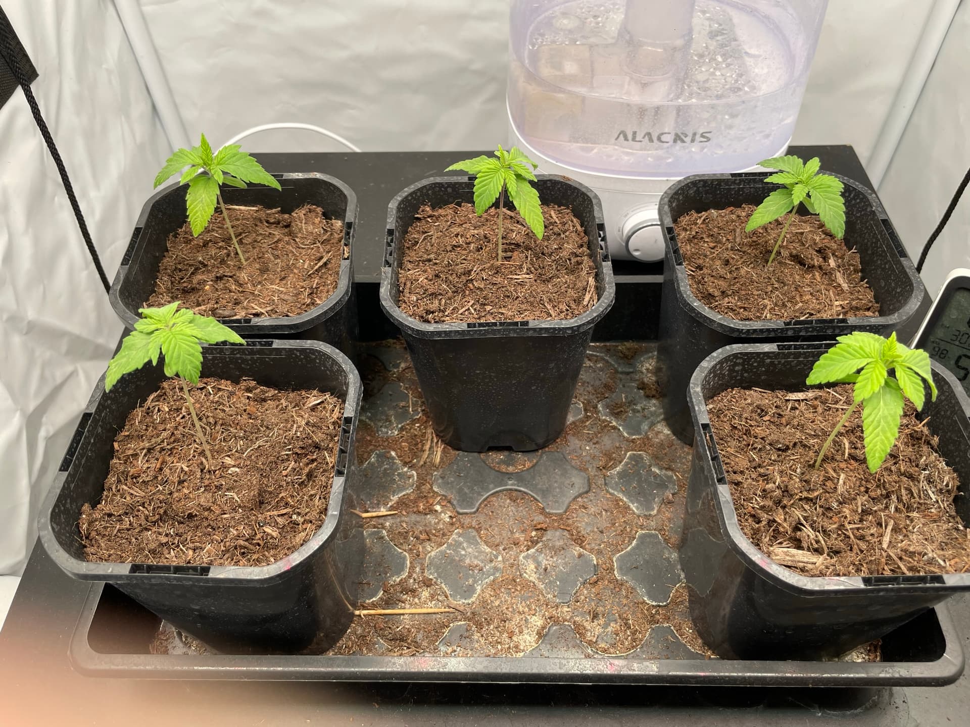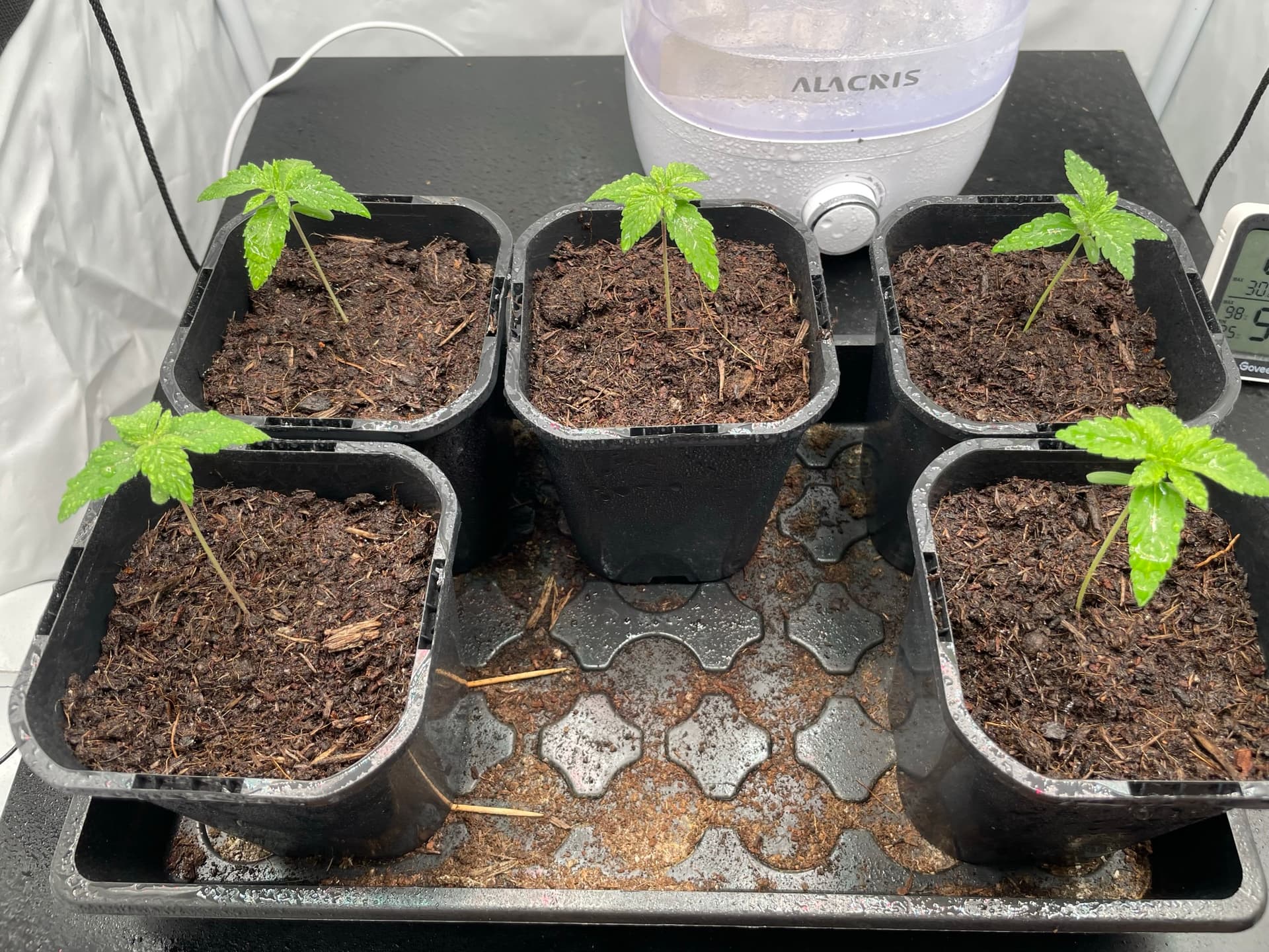 Der Verlauf ist denke ich deutlich, anfangs dachte ich zu wenig Wasser beigefügt zu haben, weshalb ich am Wochenende anfing deutlich mehr Wasser in die Töpfe zu sprühen (Ich habe hier leider keine genauen Mengenangaben, meine Sprühflasche hat keinen ml Stand und ich sprühe nach Gefühl in der Erde).