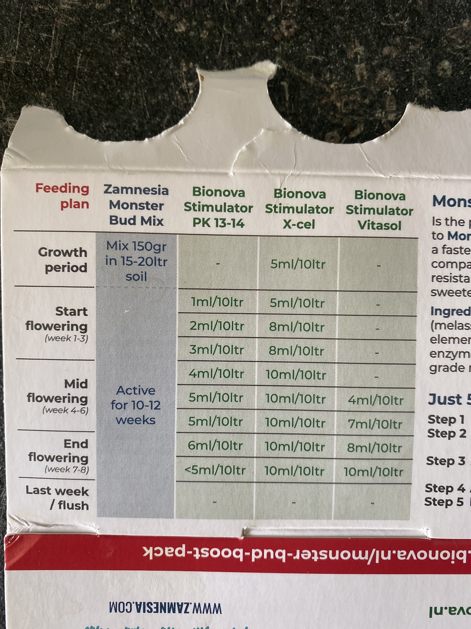 aha, die Damen wollen also XL Flowers 1ml/Liter + 0,5-1ml PK/Liter 13-14 Ich finde das für Erde für den Anfang viel zu kompliziert.