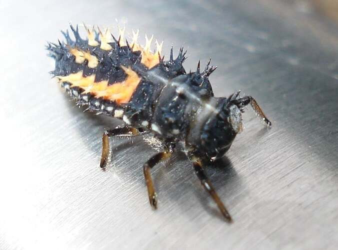 Die Zweipunkt-Marienkäferlarven ernähren sich für ca. 3 Wochen von den Blattläusen. Dabei werden im letzten Larvenstadium bis zu 100 Läuse pro Tag verzehrt. Nach etwa 3 Wochen verpuppen sie sich und dann nach etwa einer weiteren Woche schlüpfen Käfer mit 2 Punkten auf den Flügeln.