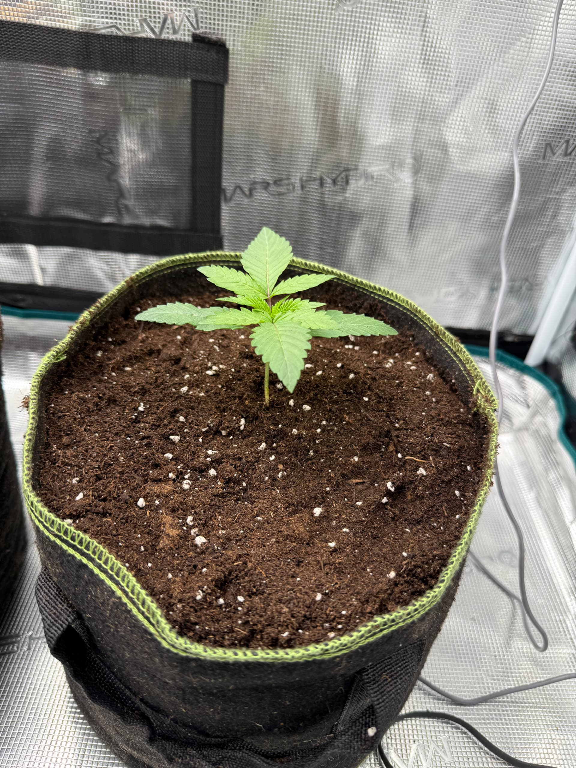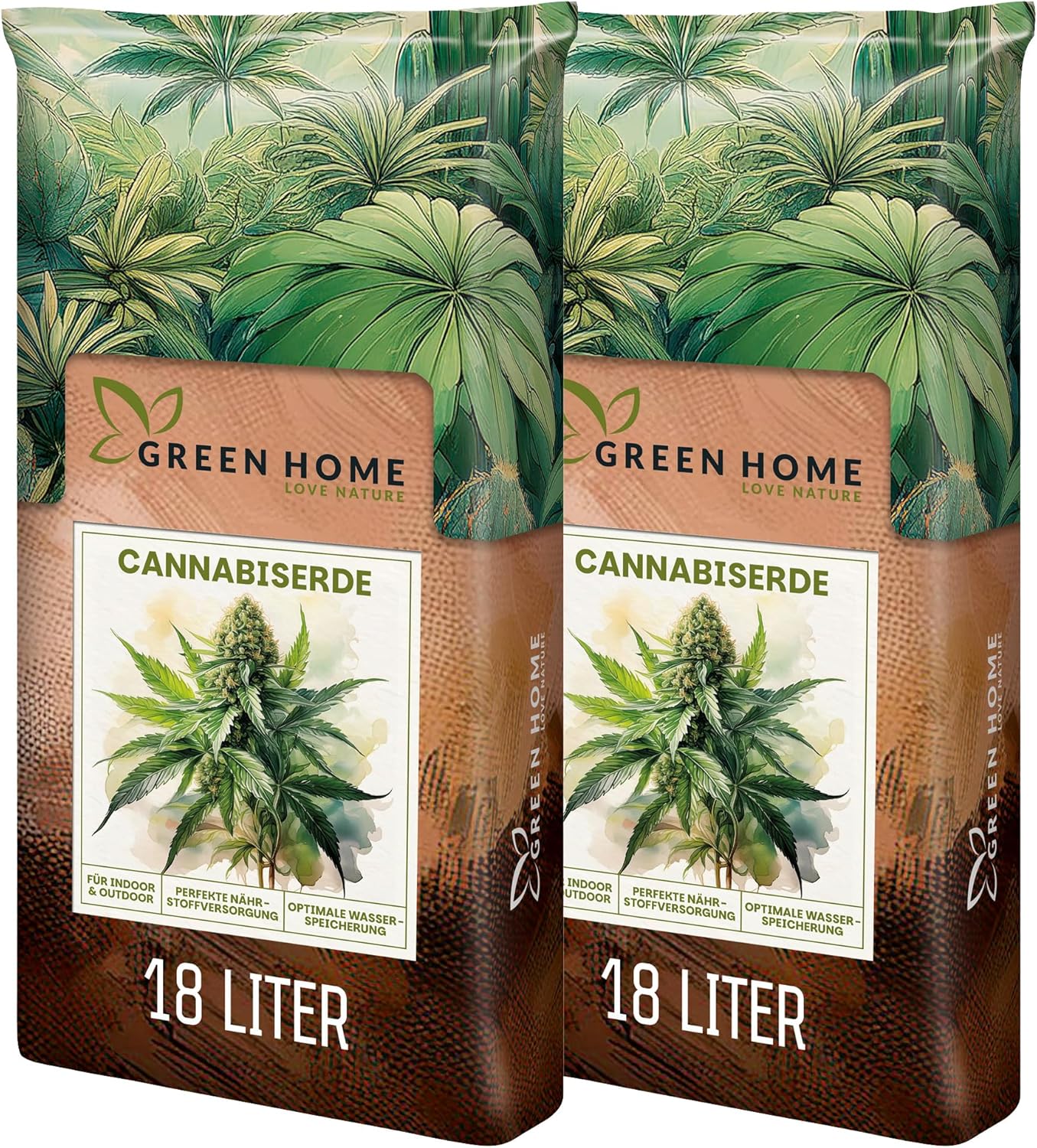 Medium: Vorgedüngte Erde (Cannabis-Erde von Amazon), ca. 15L Stofftöpfe