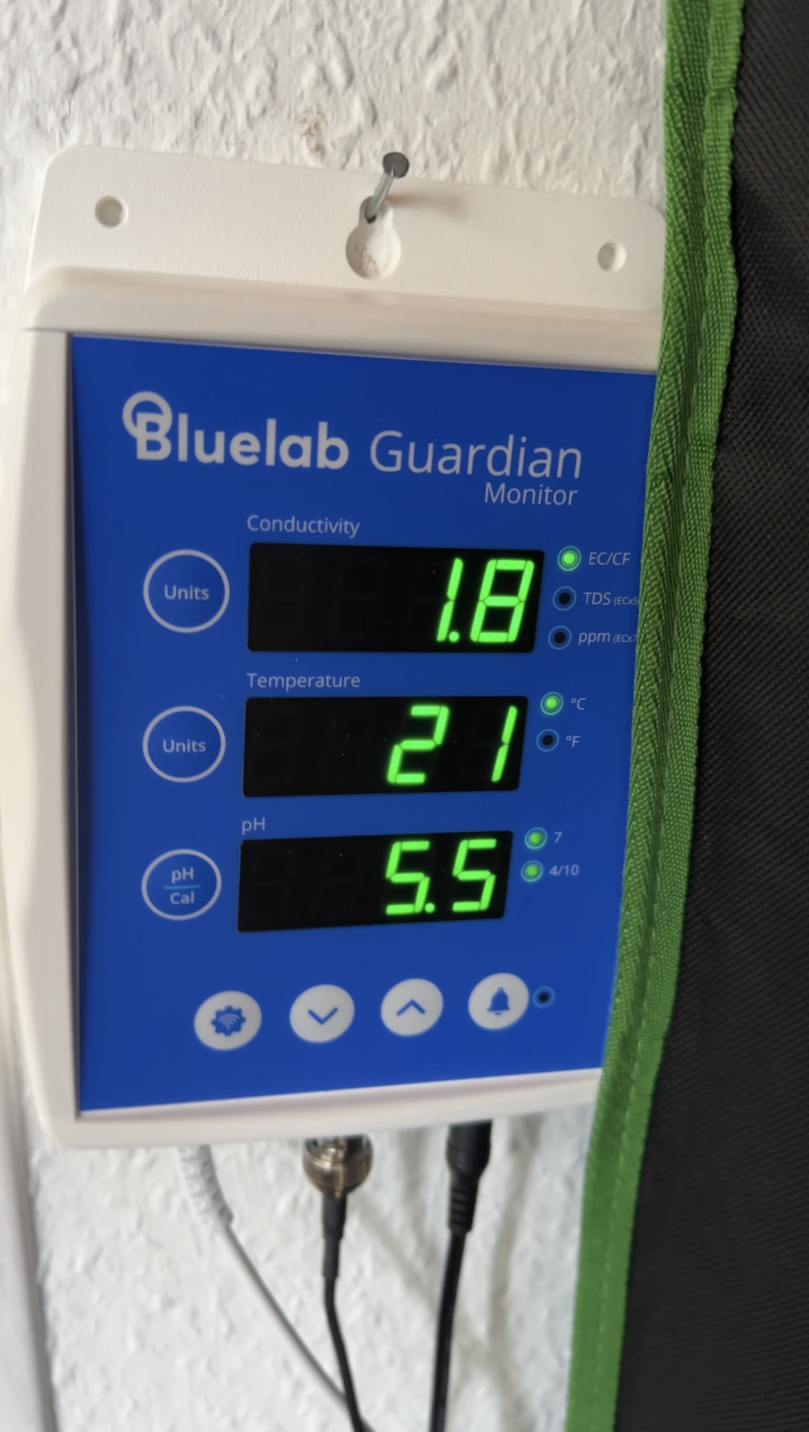 • Pflanze gewinnt an Stabilität, EC-Wert wurde leicht angepasst, aber insgesamt noch keine starke Nährstoffaufnahme.