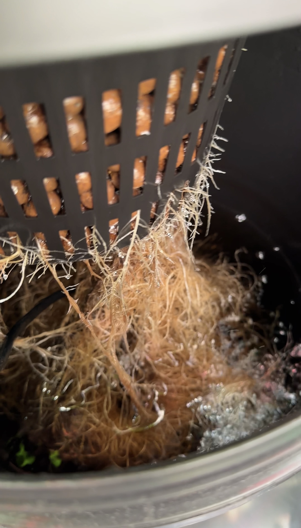 • Oberflächenbewässerung deaktiviert, um den Blähton leicht antrocknen zu lassen – Ziel: Wurzeltrieb ins Reservoir fördern.