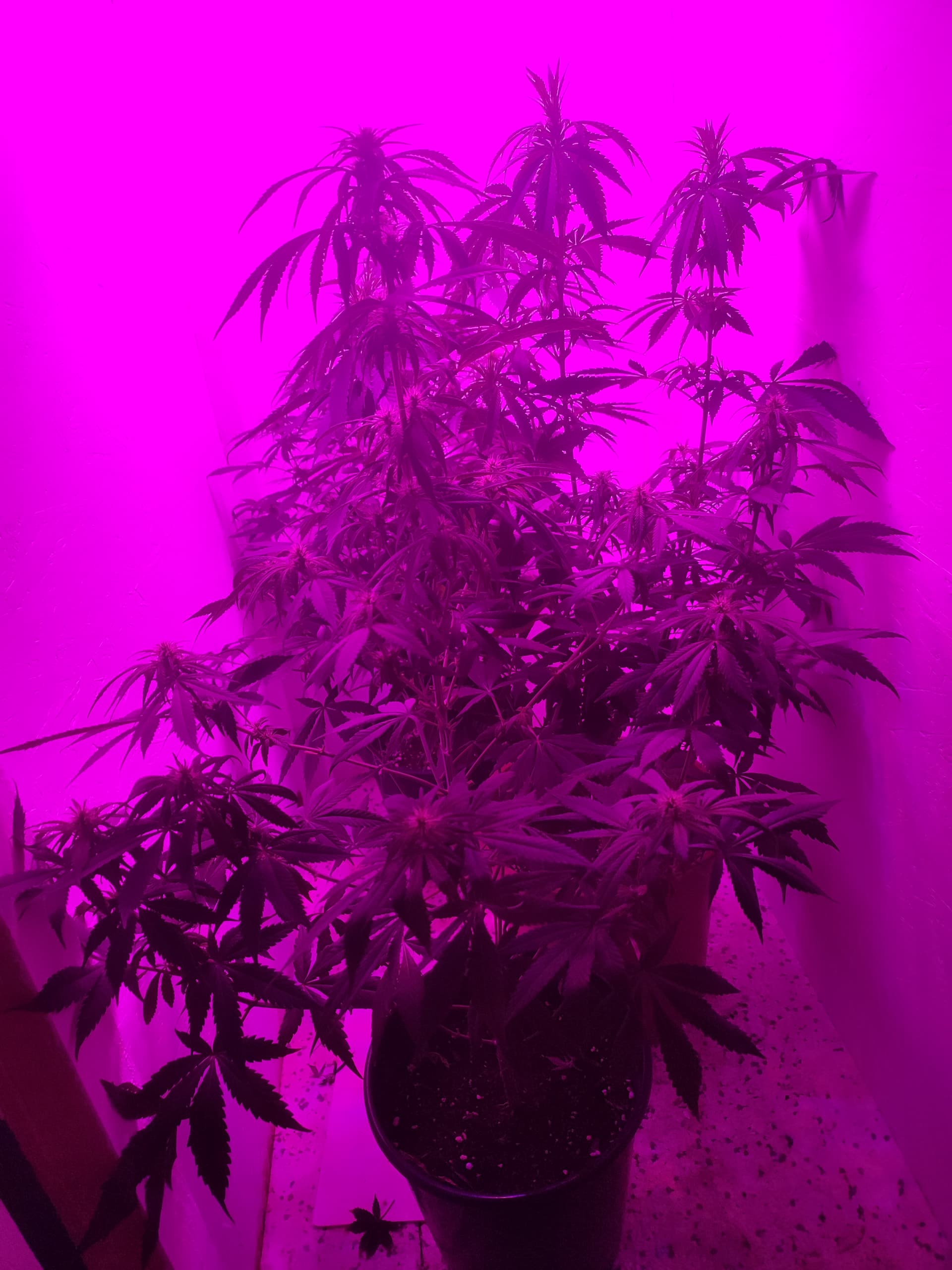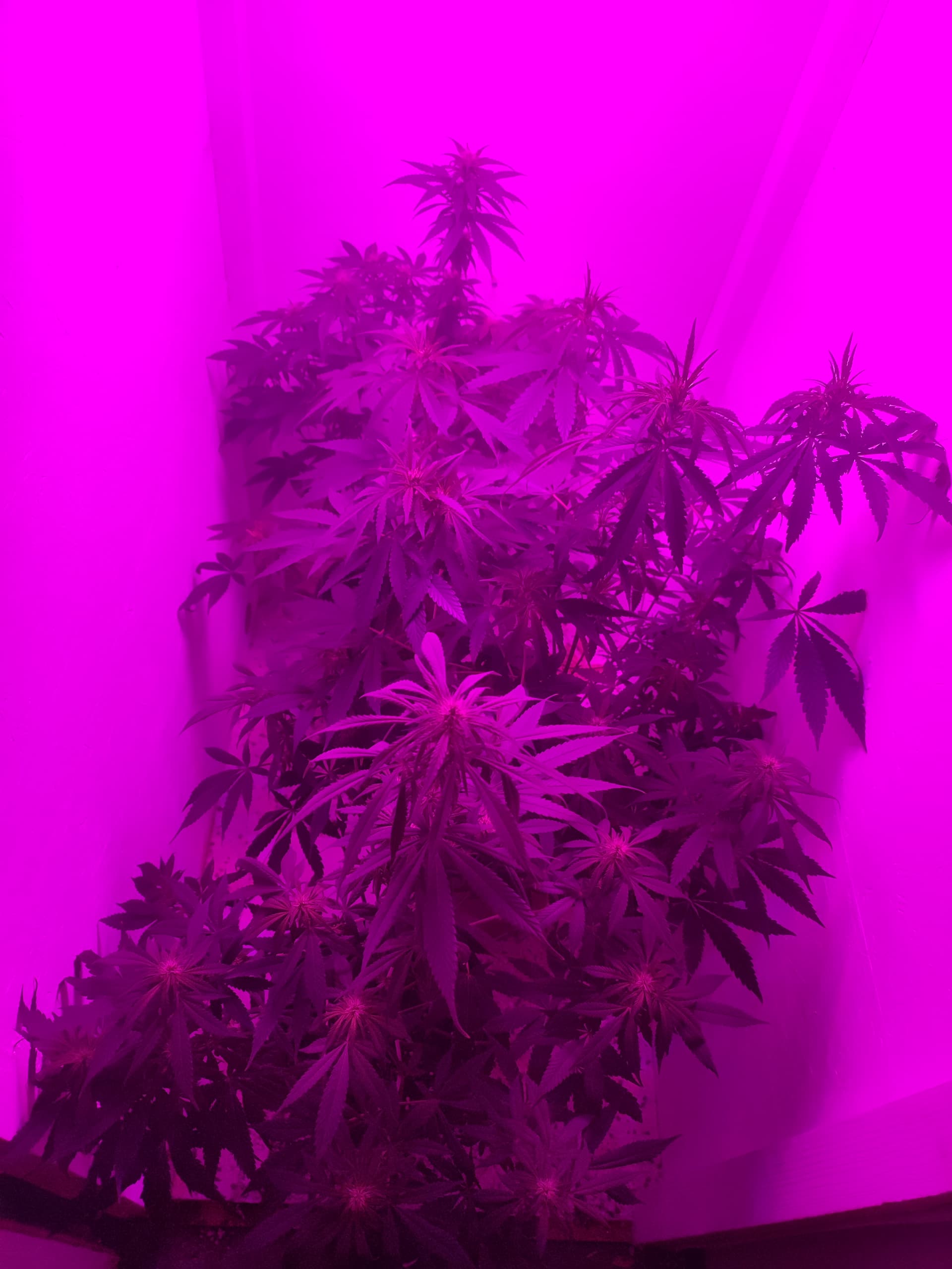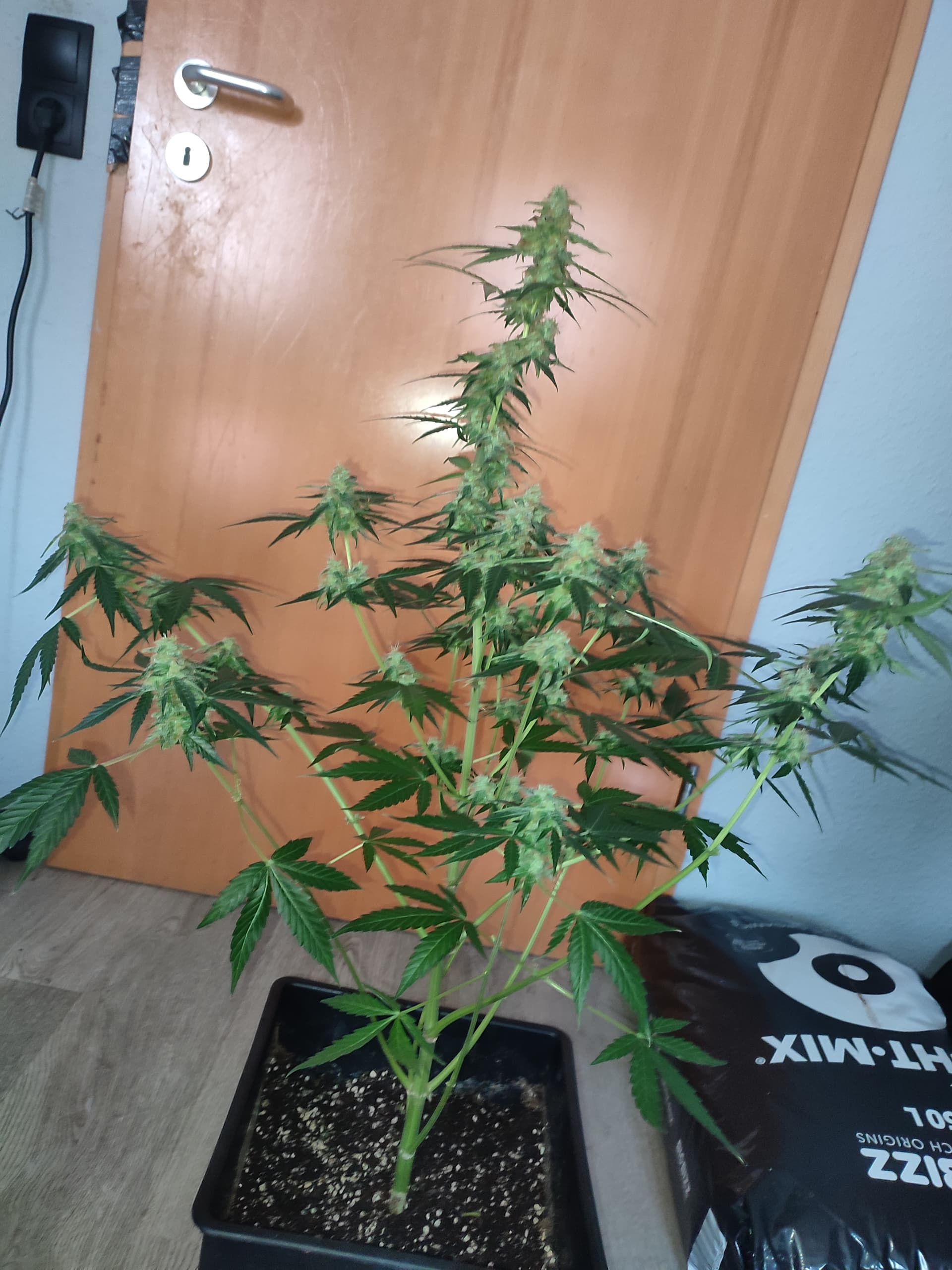 Sieht so aus, als hätte deine Dame noch etwas vor sich – richtig groß ist sie auf dem Foto noch nicht. Ich würde einfach ganz normal weitergießen, nur Wasser und ggf. etwas CalMag. Sobald sie anfängt zu herbsteln, also langsam gelb wird, ist das meist ein gutes Zeichen, dass die Erntezeit näher kommt. Hab anfangs auch oft zu früh geerntet, war da auch zu ungeduldig – mit der Zeit bekommt man ein besseres Gefühl dafür.