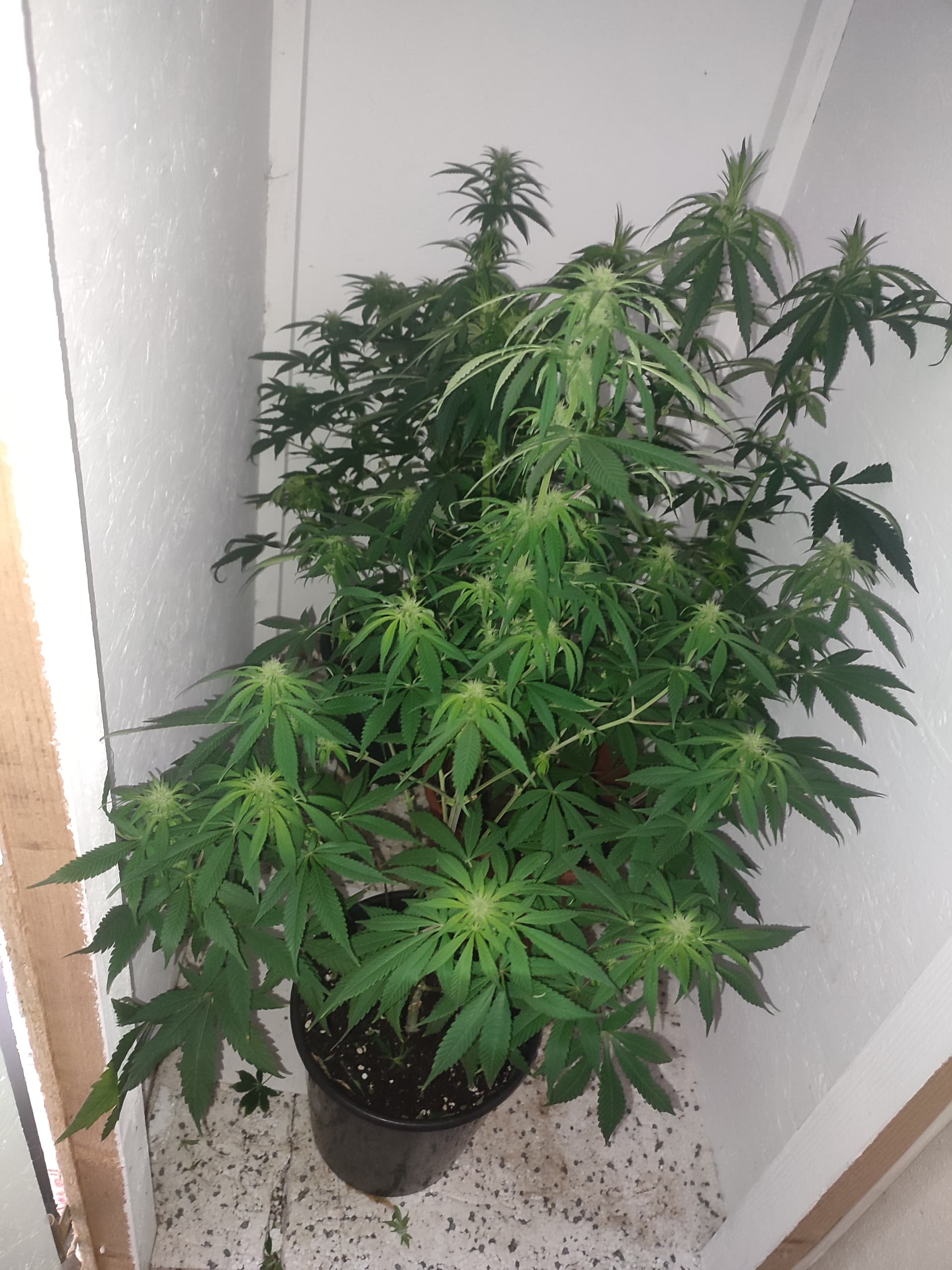 ich würde Sie noch stehen lassen, wäre mir persönlich noch zu Grün. Mache ein Bud von Oben ab, trockne diesen 4-5 Tage und probiere es. Dann kannst du mit sicherheit selber sagen ob du Sie ernten möchtest oder noch stehen läst .