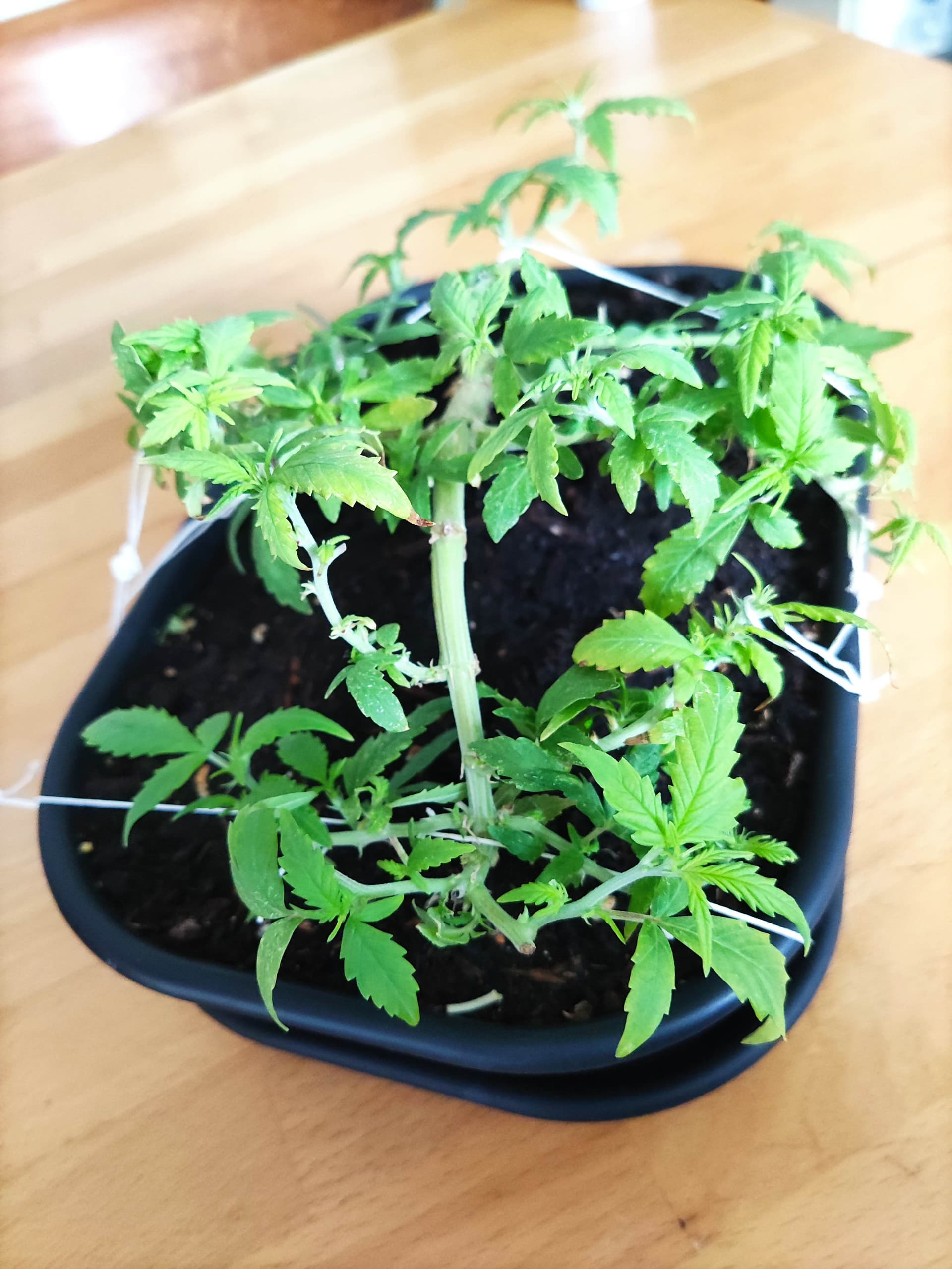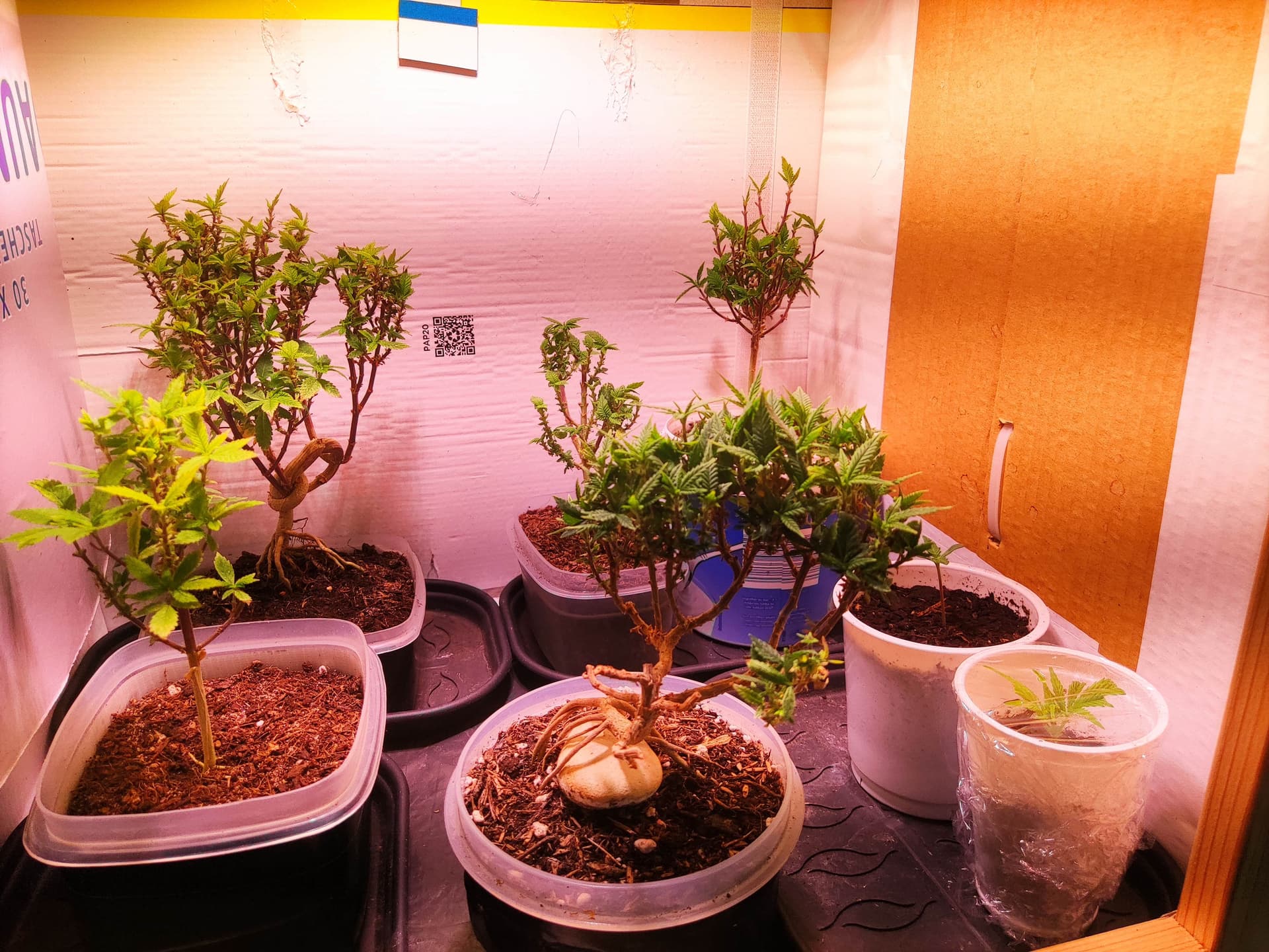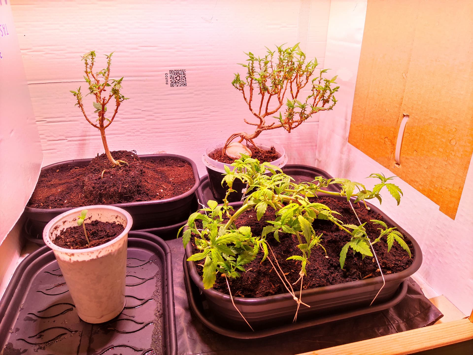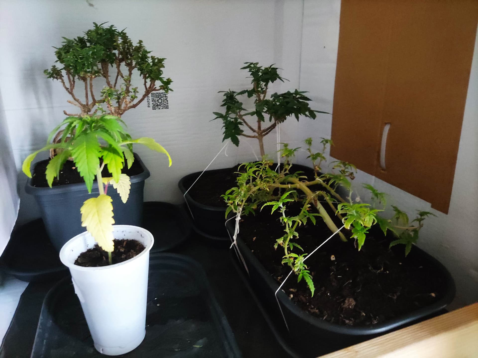 Bei mir tut sich ja nicht so viel im Schrank. Auf dem Balkon stehen zwei Pflanzen, aber die mussten sich ihren kleinen Platz zwischen den vielen anderen Blumen/Pflanzen meiner Frau hart erkämpfen. Sind in drei Liter Töpfen untergebracht und bisher auch eher klein. Sollen auch nicht höher als 60 cm werden, deshalb einmal bzw. zweimal getoppt. Die dürfen dann im Sommer blühen, wenn sie es bis dahin schaffen.