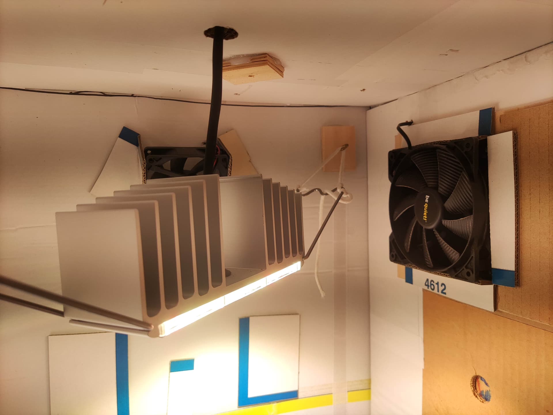 Es hängt eine 50 Watt SanLight LED drinnen, die leuchtet das mehr als genug aus. Belichtung 16 Stunden am Tag.