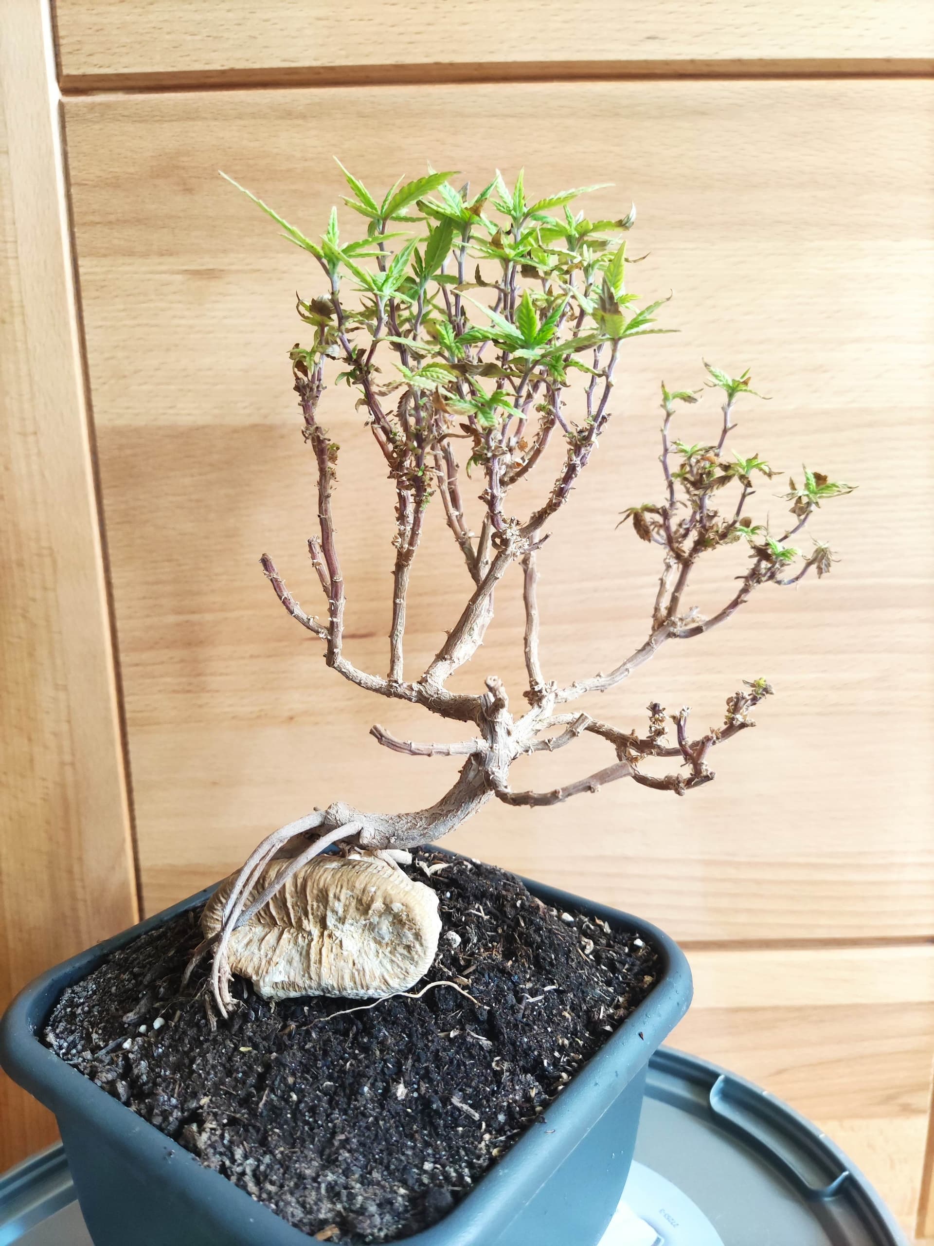 Da ich für zwei Exemplare Topf-Platz auf dem Balkon bekommen habe … wollte ich meine „Bonsai“ nochmal durch einen Winter bringen. Also erstmal nicht blühen lassen.