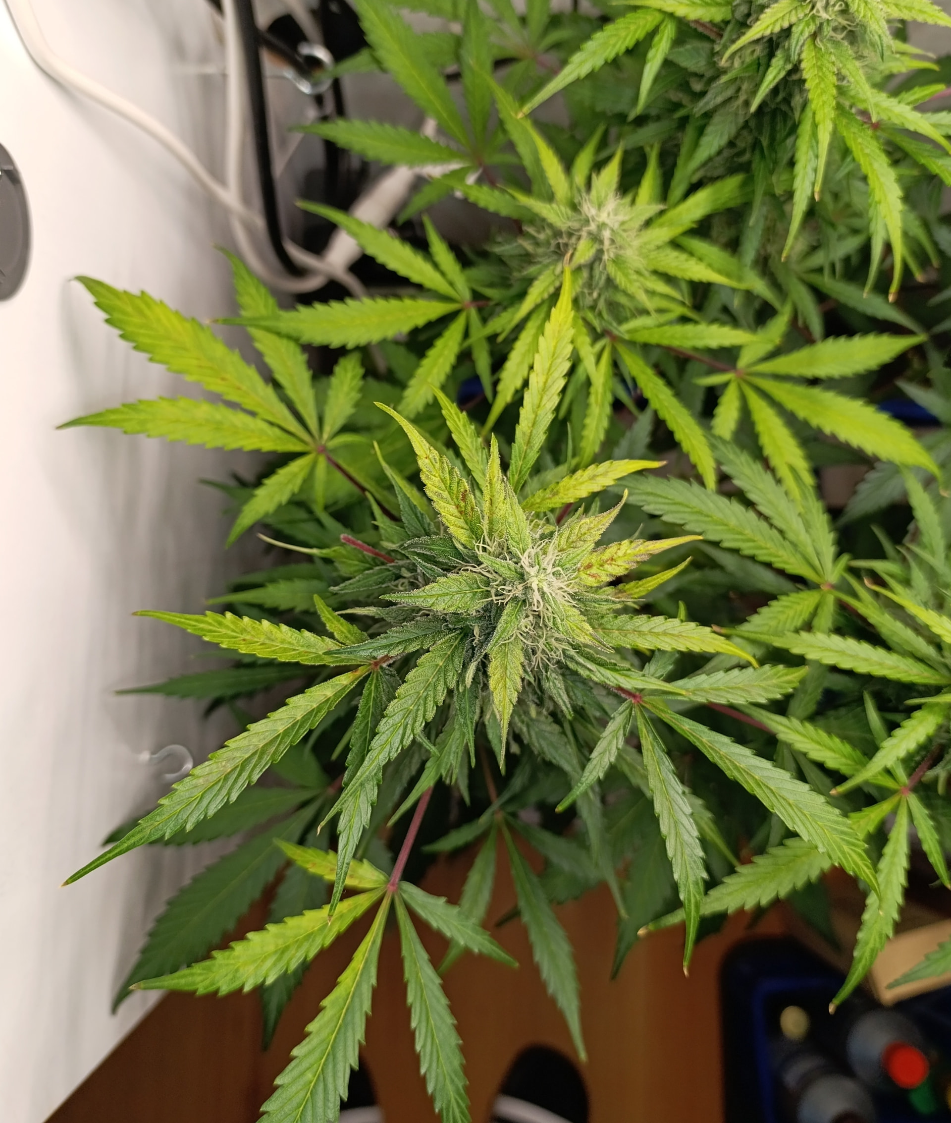 Die Pflanze wieder weiter gegen die Aussenwand geschoben und die Licht Leistung von 90% auf 80% reduziert.