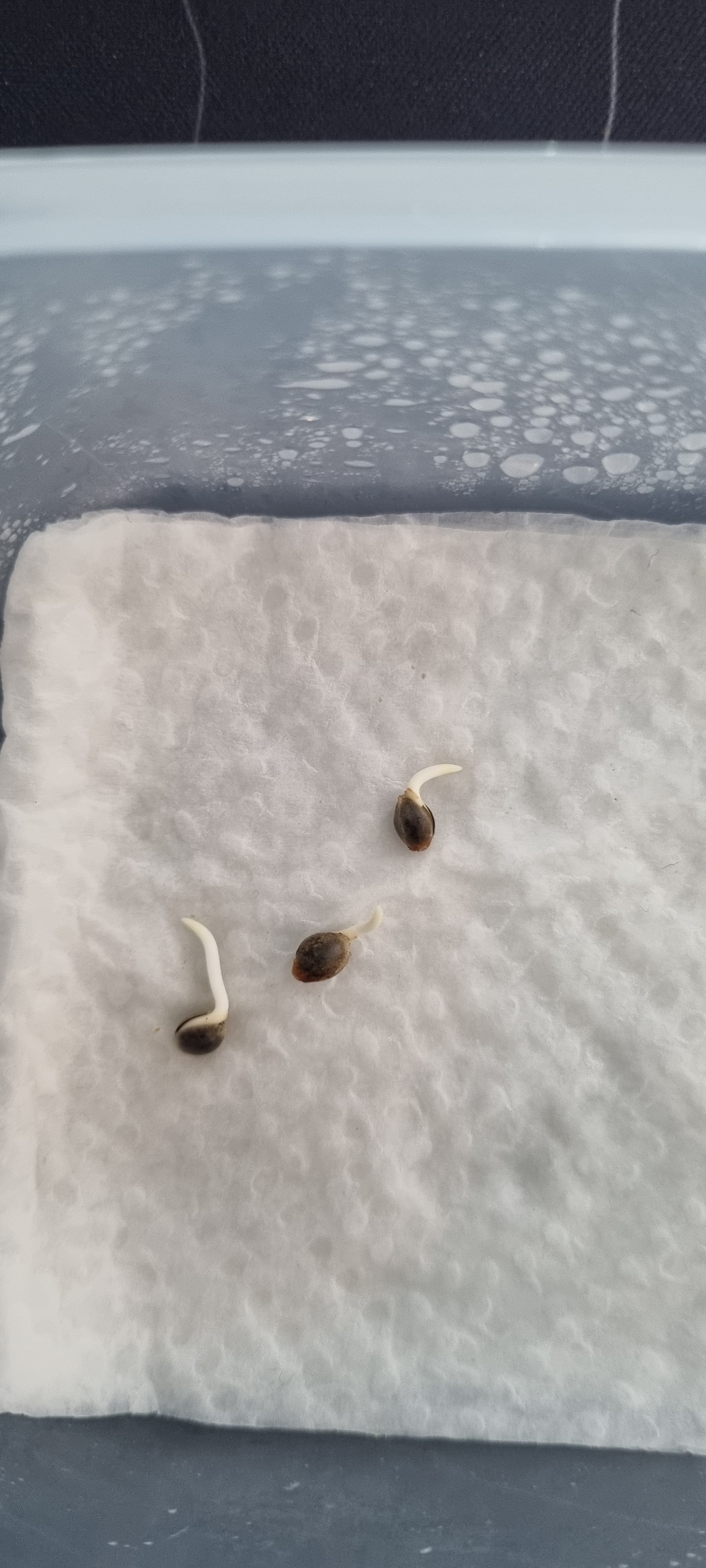 Die Seeds weichen in feuchter Küchenrolle im Dunkeln auf