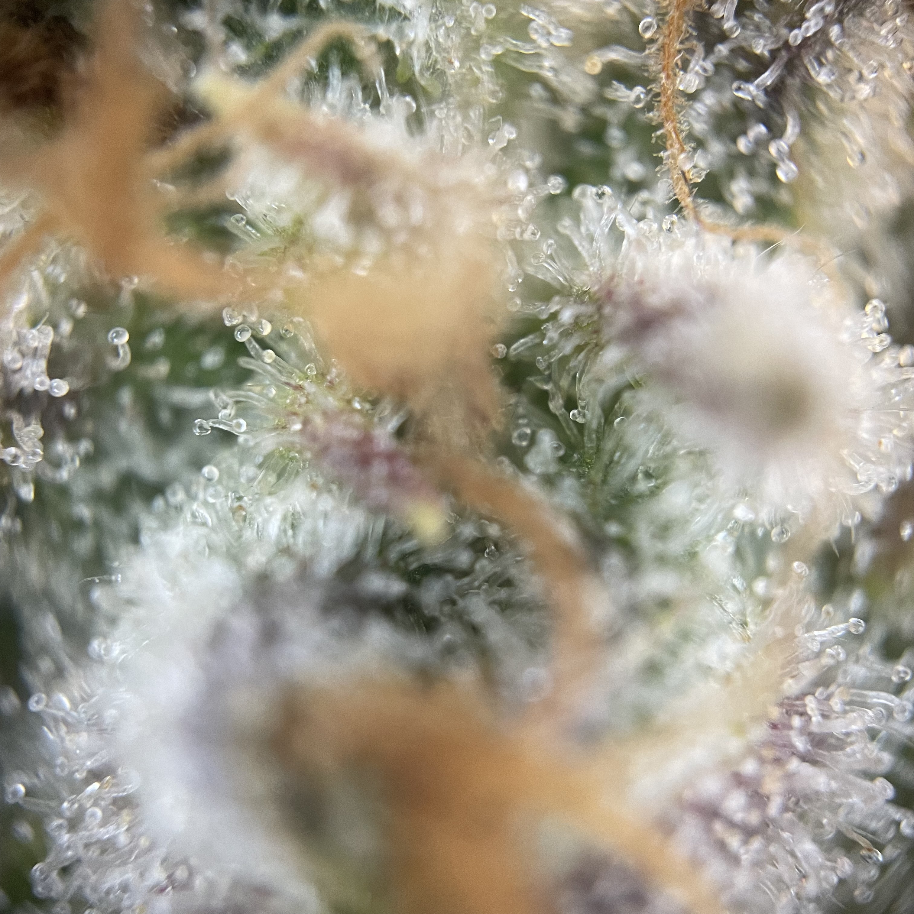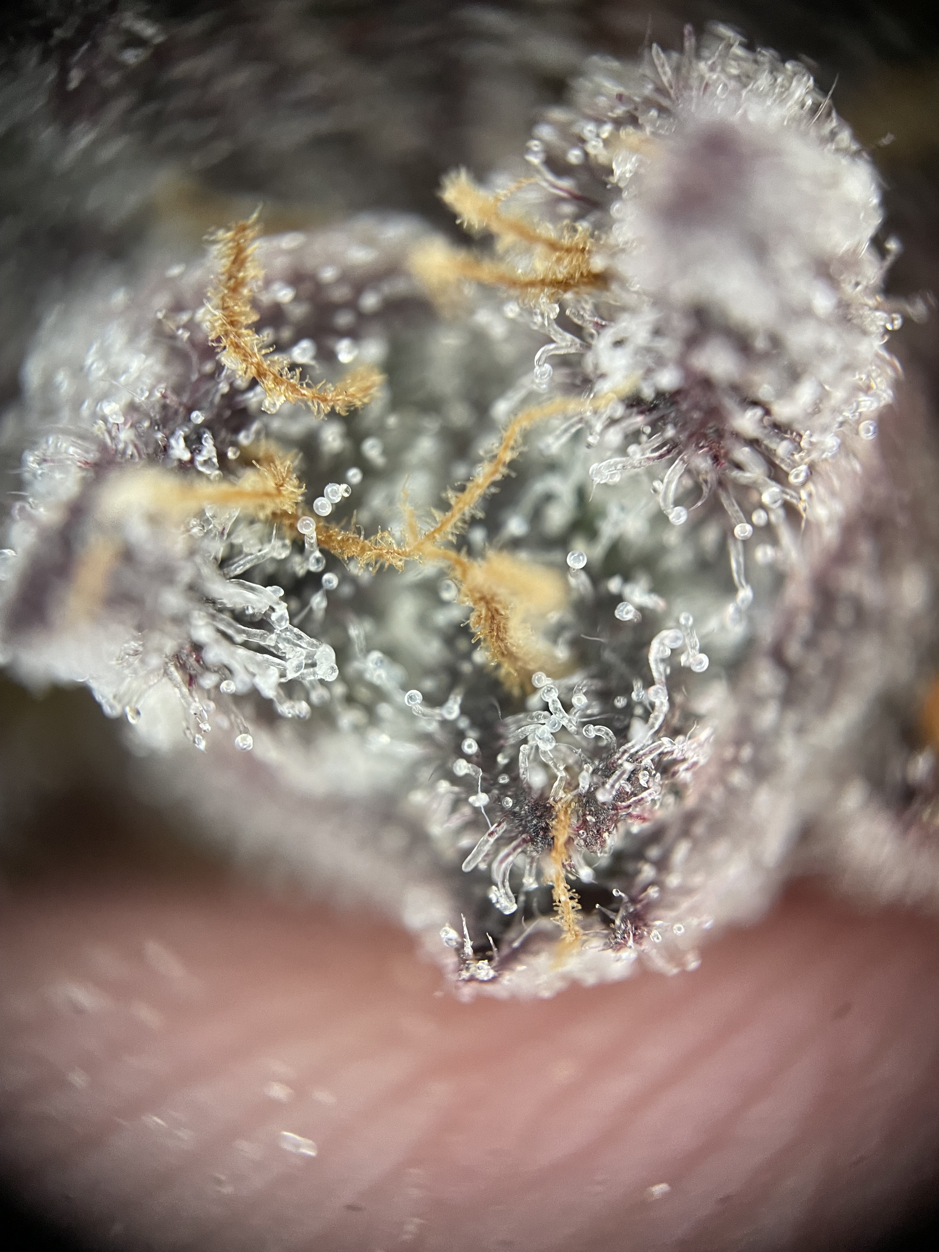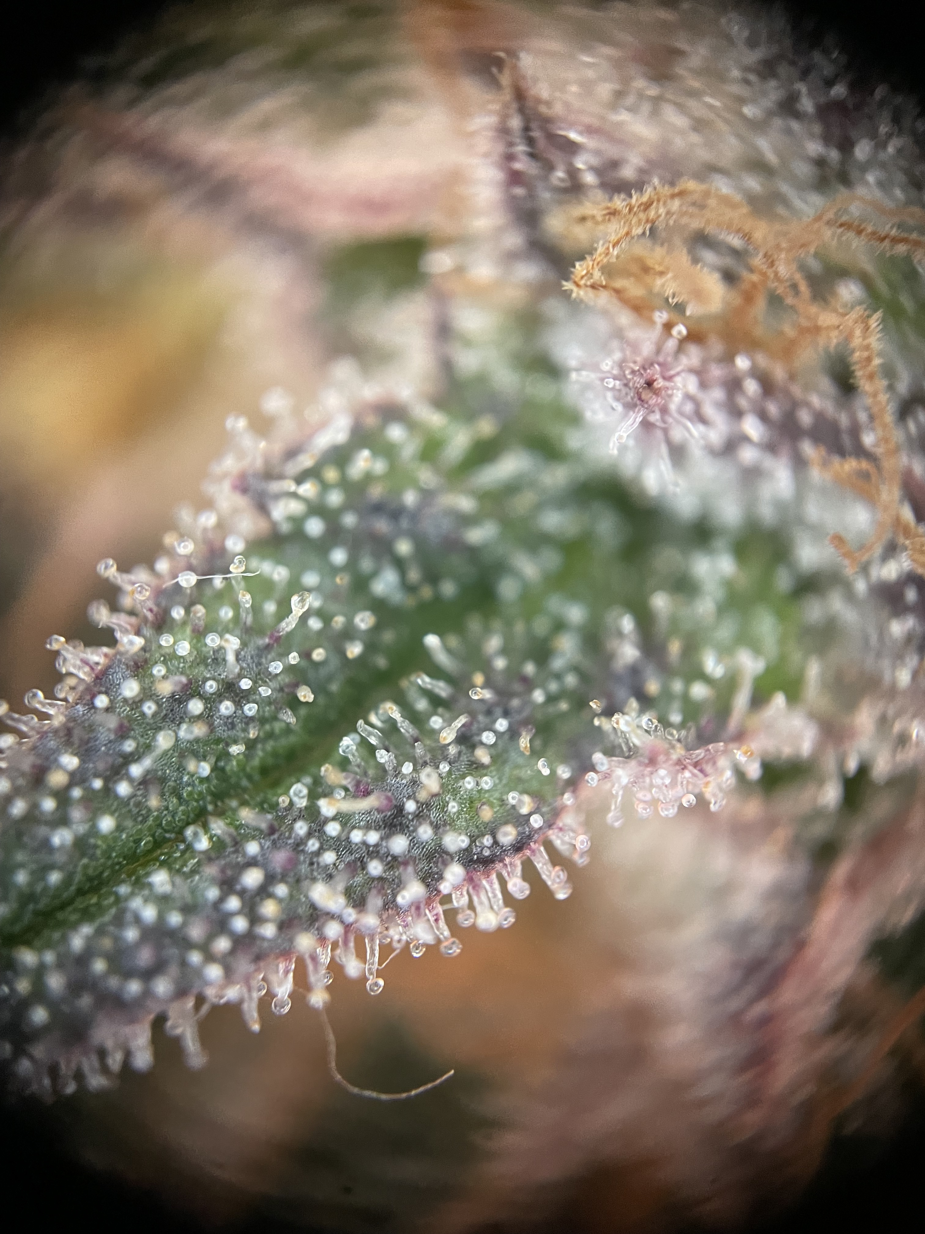 Bei den Trichomen blitzen überall ein paar goldene durch. Mal schauen wie sie in ner Woche sind. Könnten die letzten Bilder lebend sein.