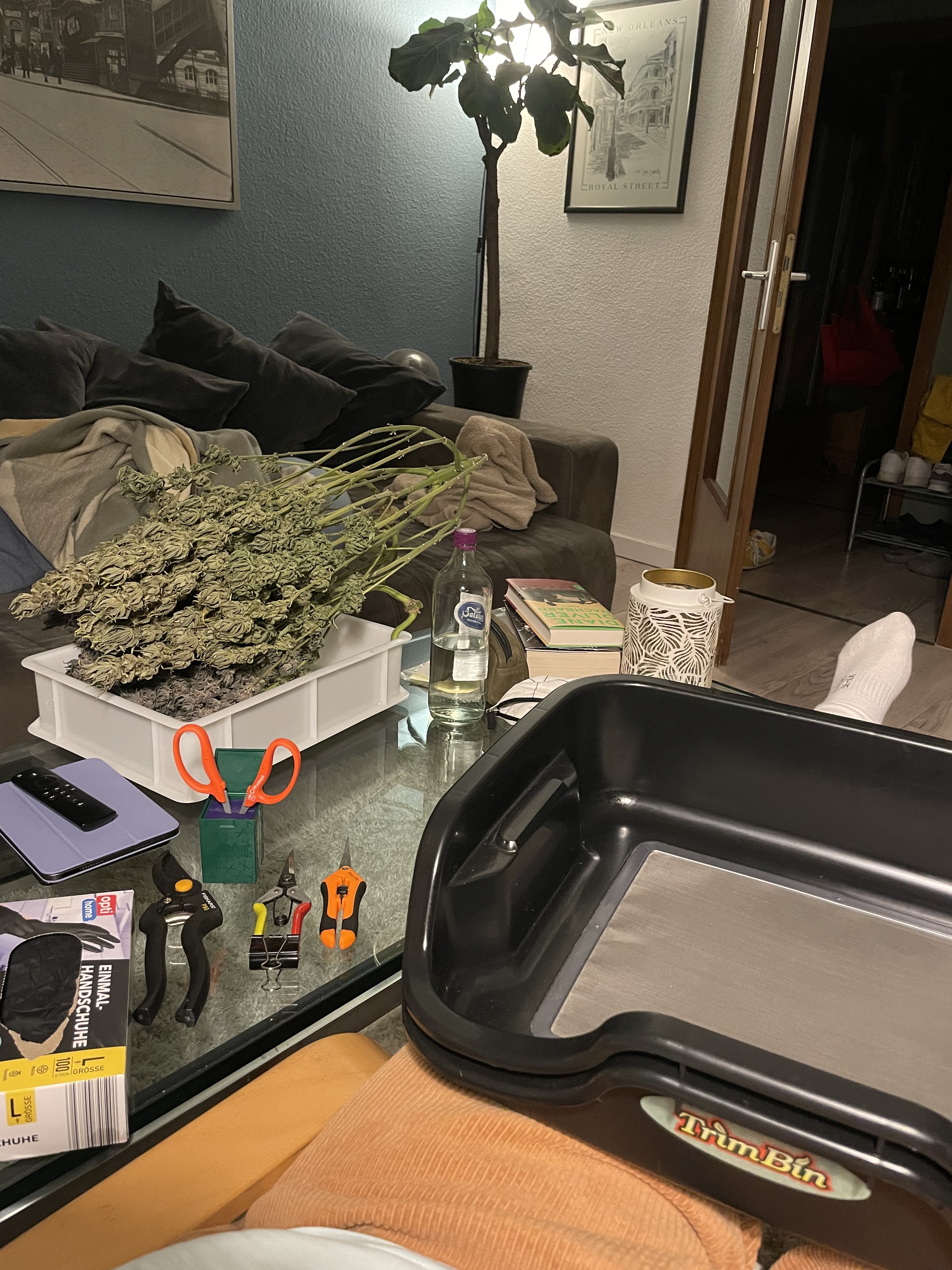 Ich habe knapp 142g getrocknete Blüten eingetütet und 3x 100g Beutel Popcornbuds mit Zuckerblätter im TK. Hinzu kamen 32g Dry Sift aus dem TrimBudy.