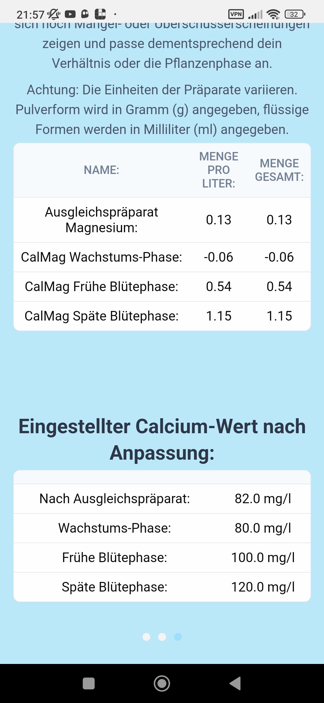 Bewässerung: Aldi still 22,3mg Cal, 7,9mg Mag, PH7, nach 1/3 Regel