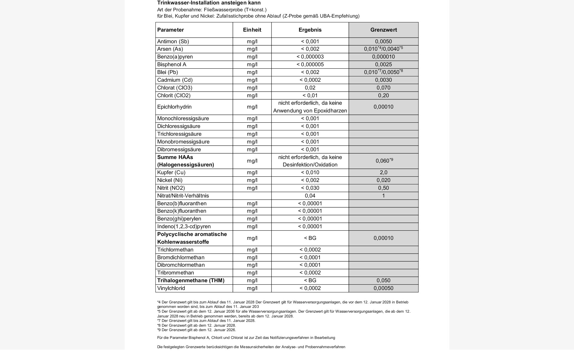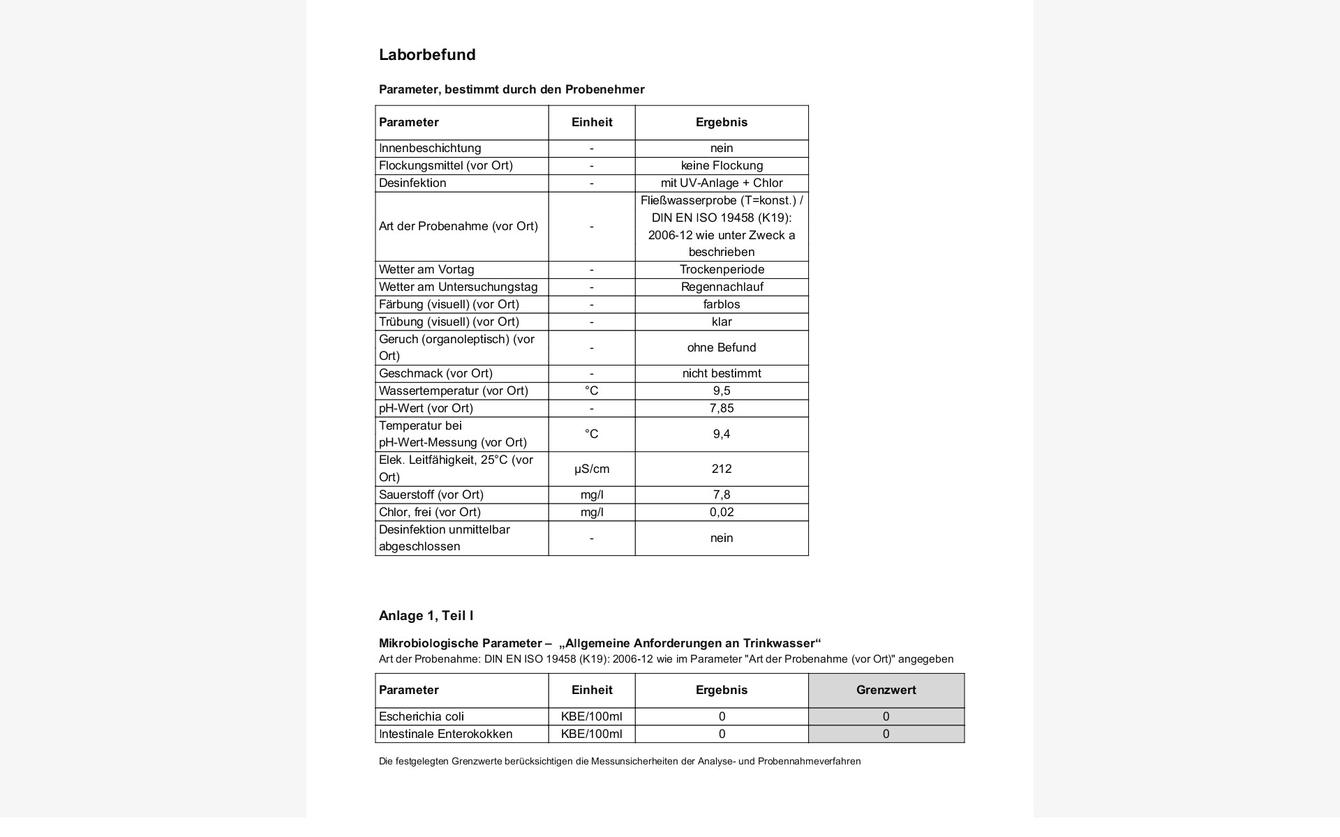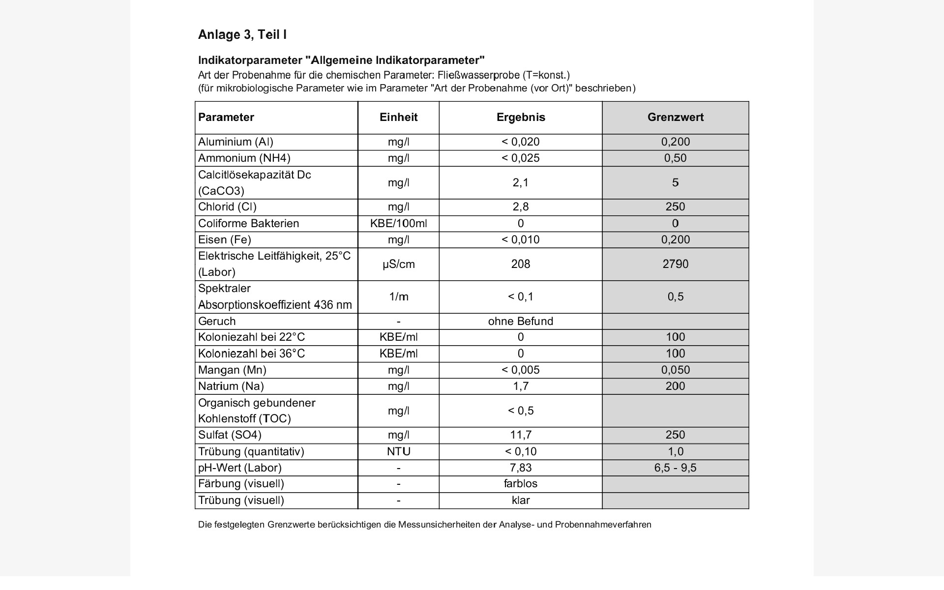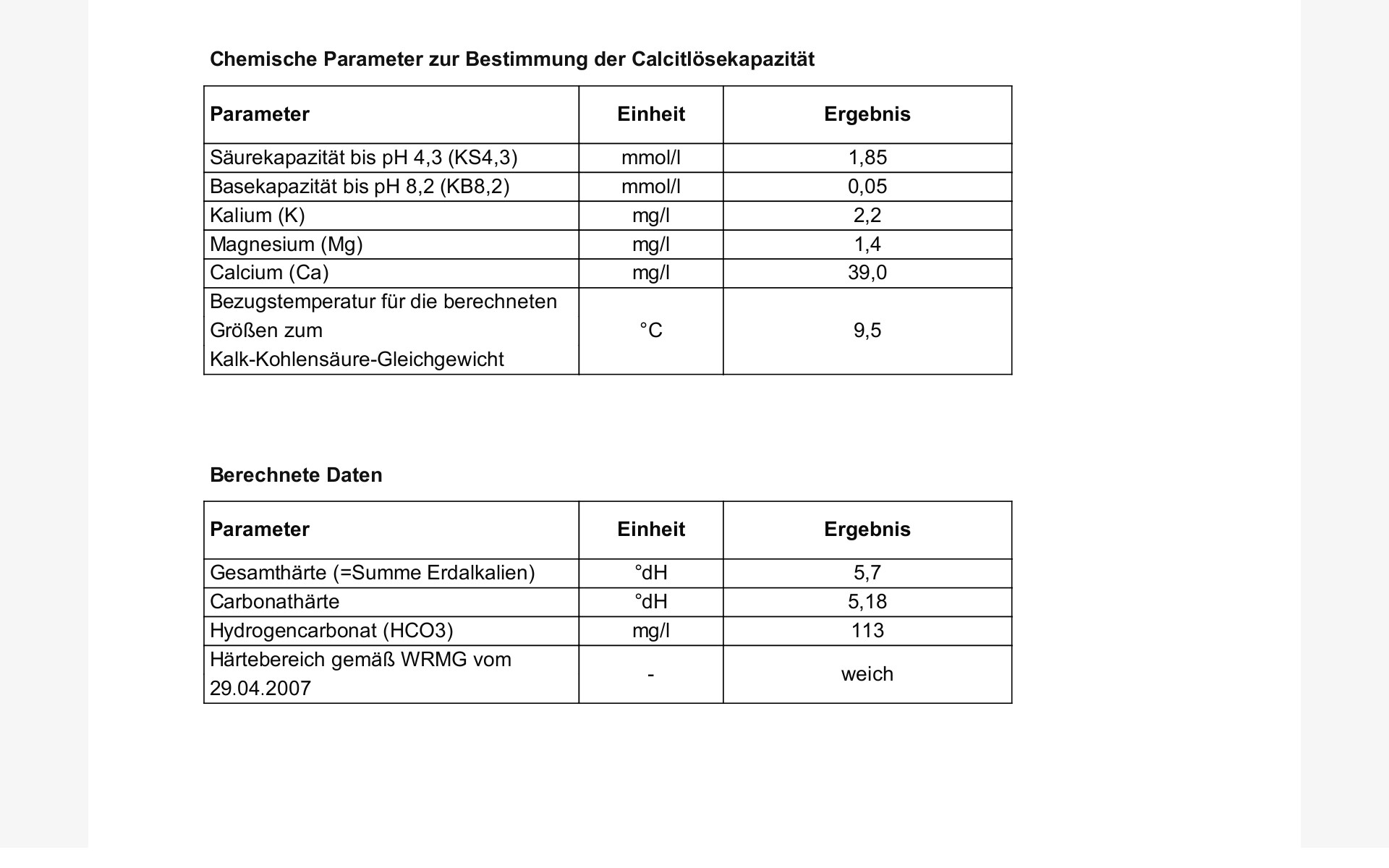 Anbei noch ein Auszug von meinen Wasserwerten.