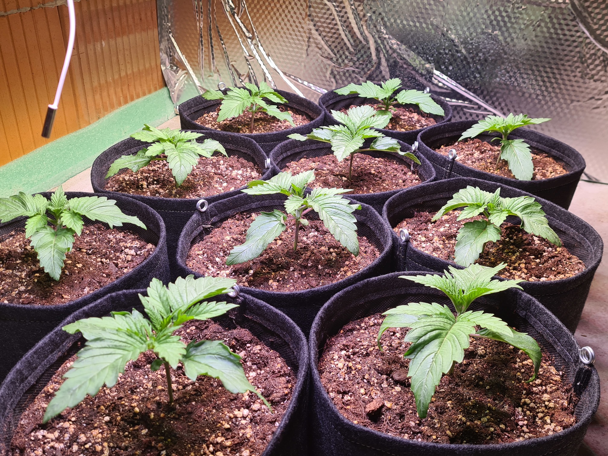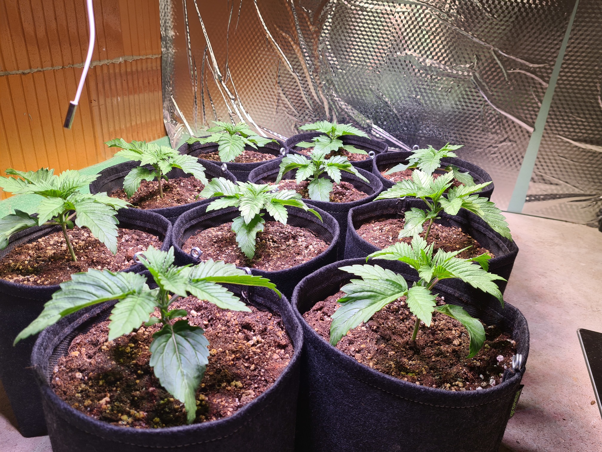 man muss nur bedenken das der jetzige grow nur aus 6l töpfe besteht, beim ersten grow waren die kleinsten die 6l töpfe die anderen wie man sieht größer