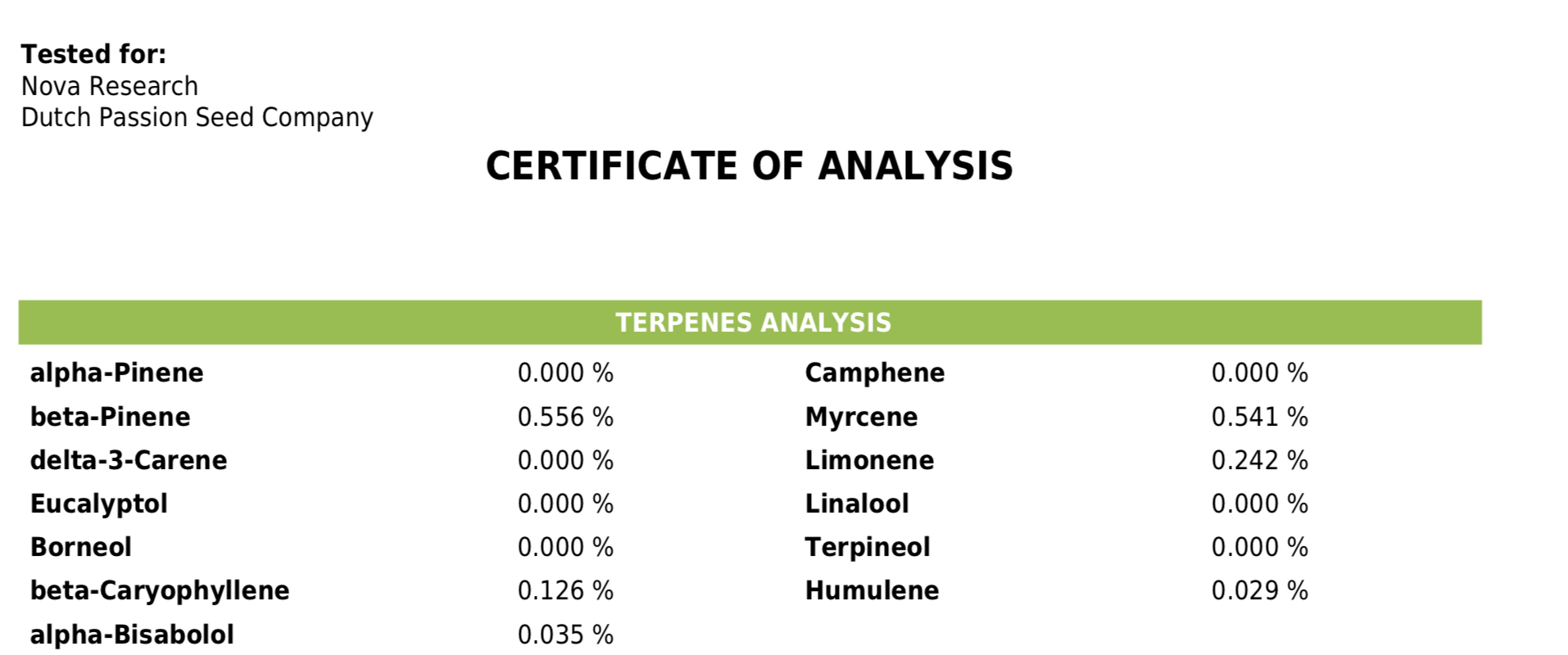 Terpene in Dutch Passion Cannabis-Sorten