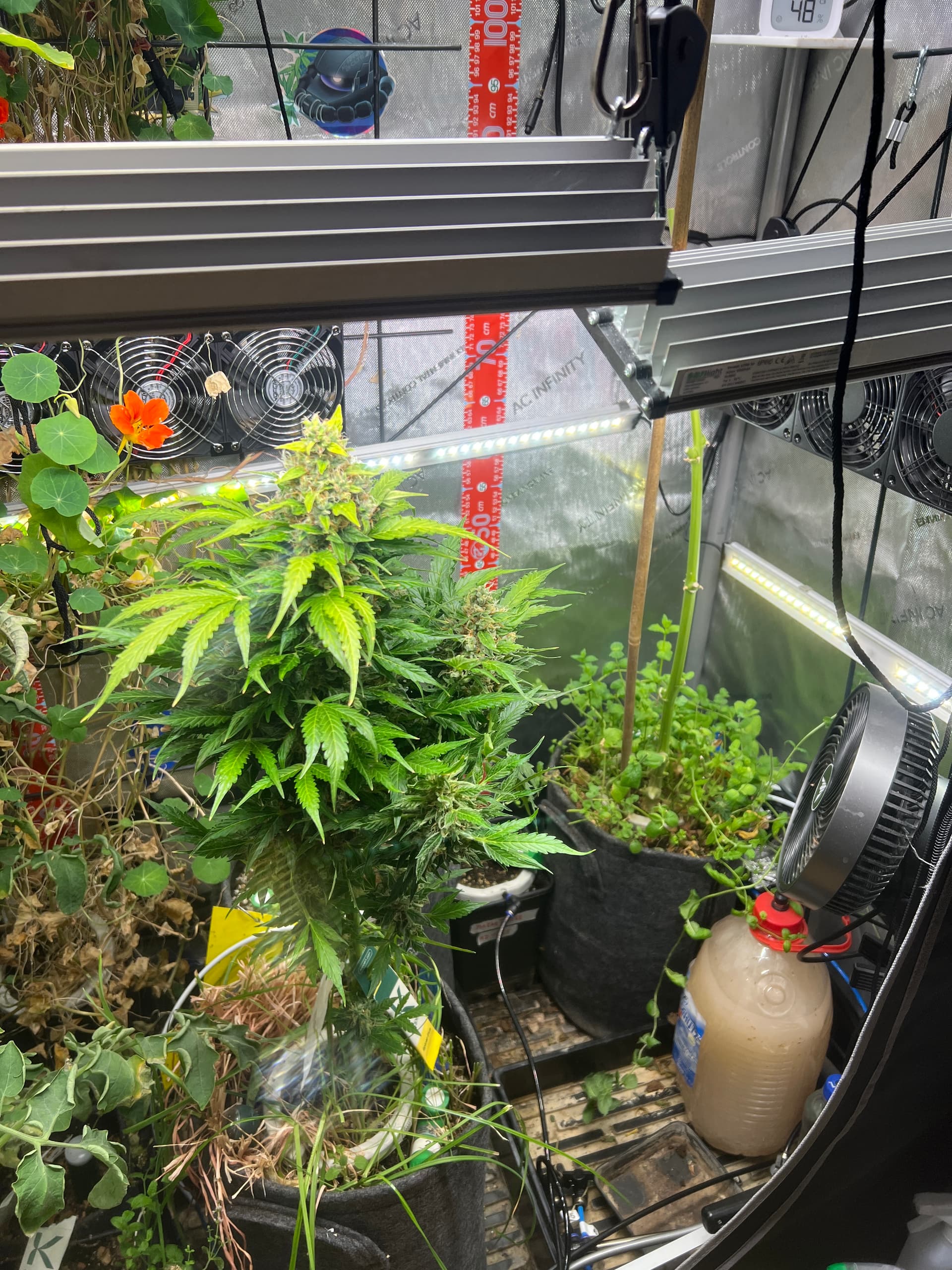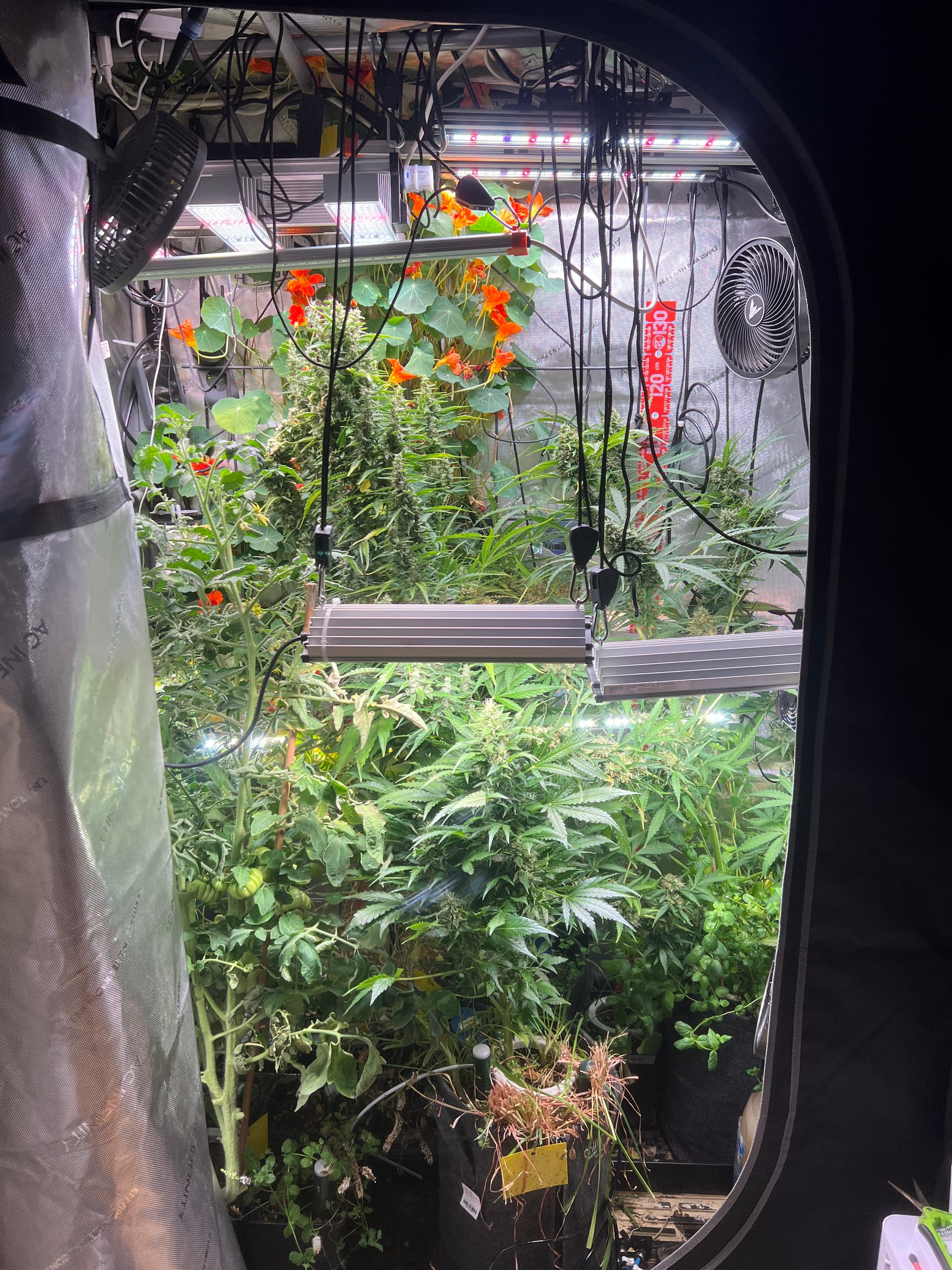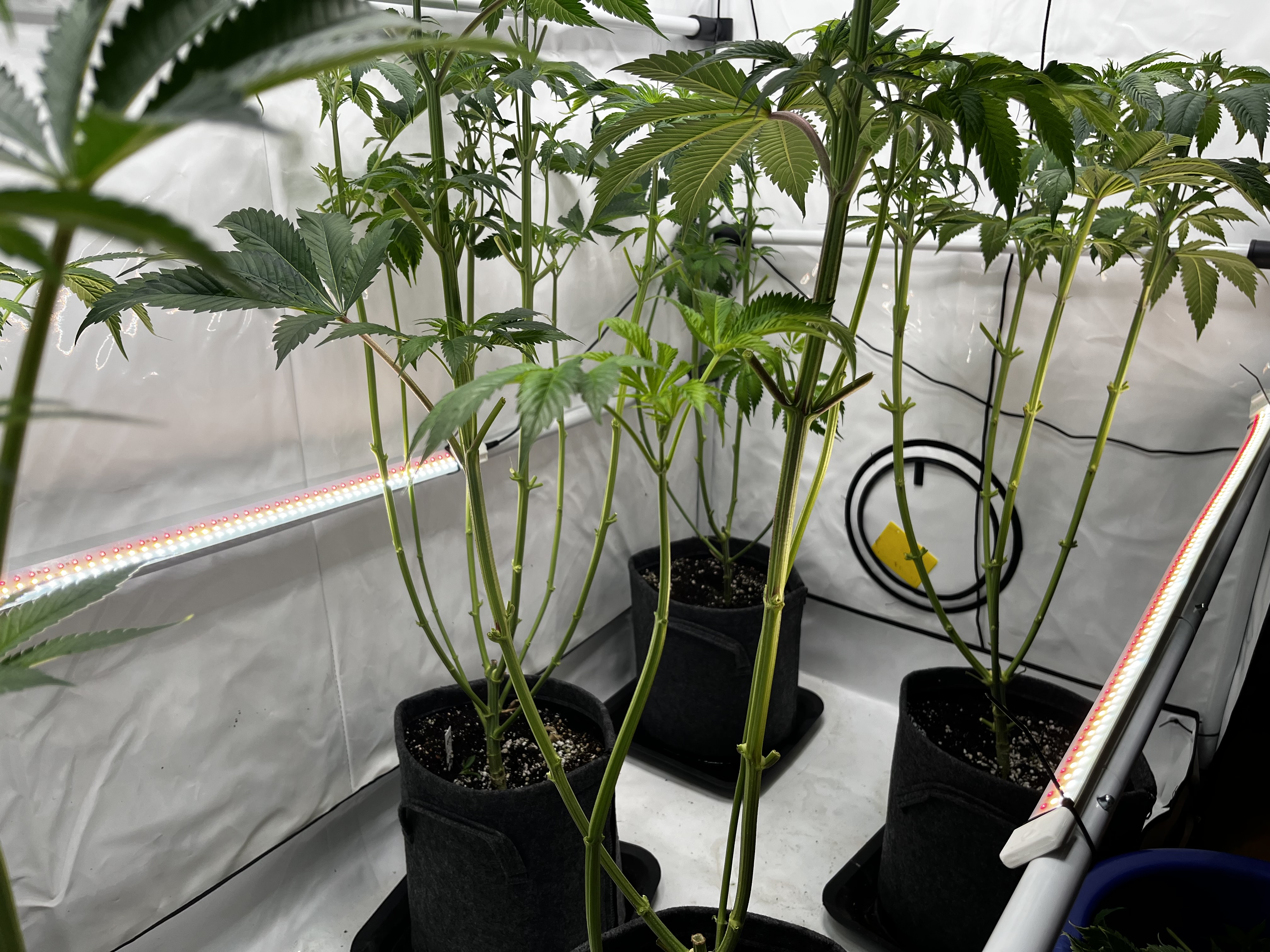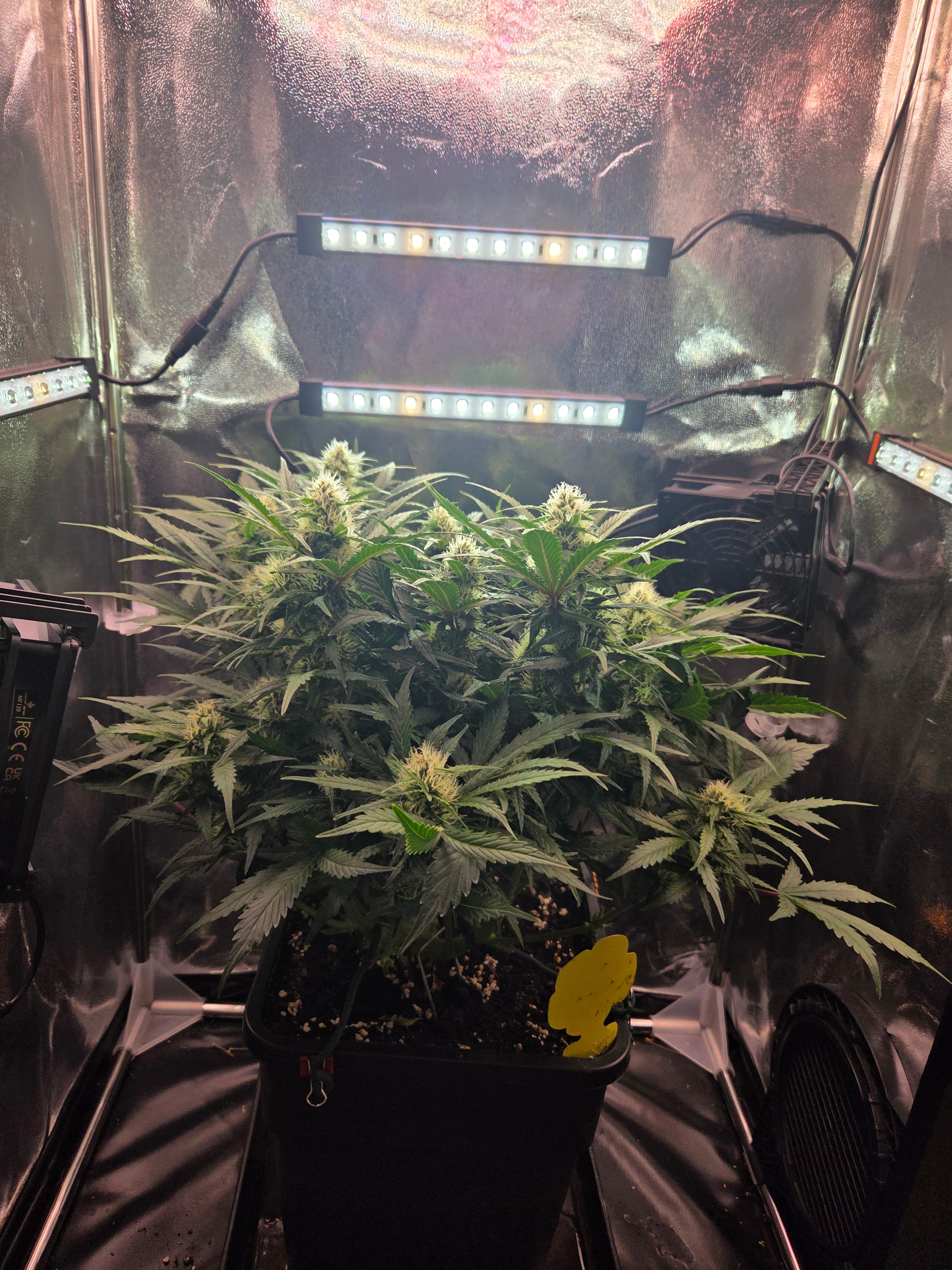 Man kan sich Seitenbeleuchtung natürlich auch sparen wenn man toppt und systematisch runterbindet, so dass alle Buds ungefähr die selbe Entfernung zum Panel haben. Ist weniger Aufwand als es klingt und spart halt Strom. Wenn man im größeren Stil growt natürlich keine sinnvolle Option, aber für den Eigenbedarf mit wenigen Pflanzen? Mich stört’s nicht. Man bekommt das mit ein bisschen Vorabrecherche innerhalb von 1-2 Grows ins Gefühl.
