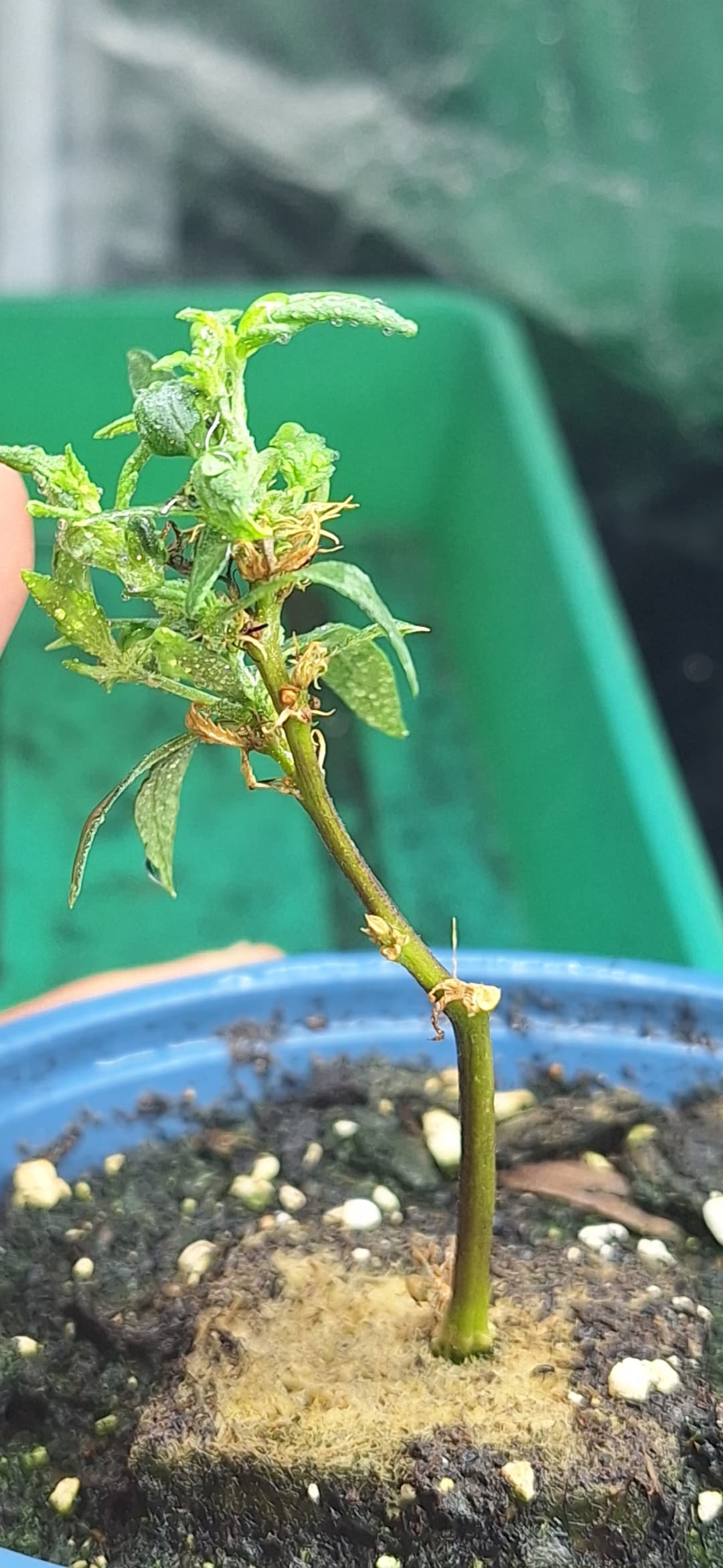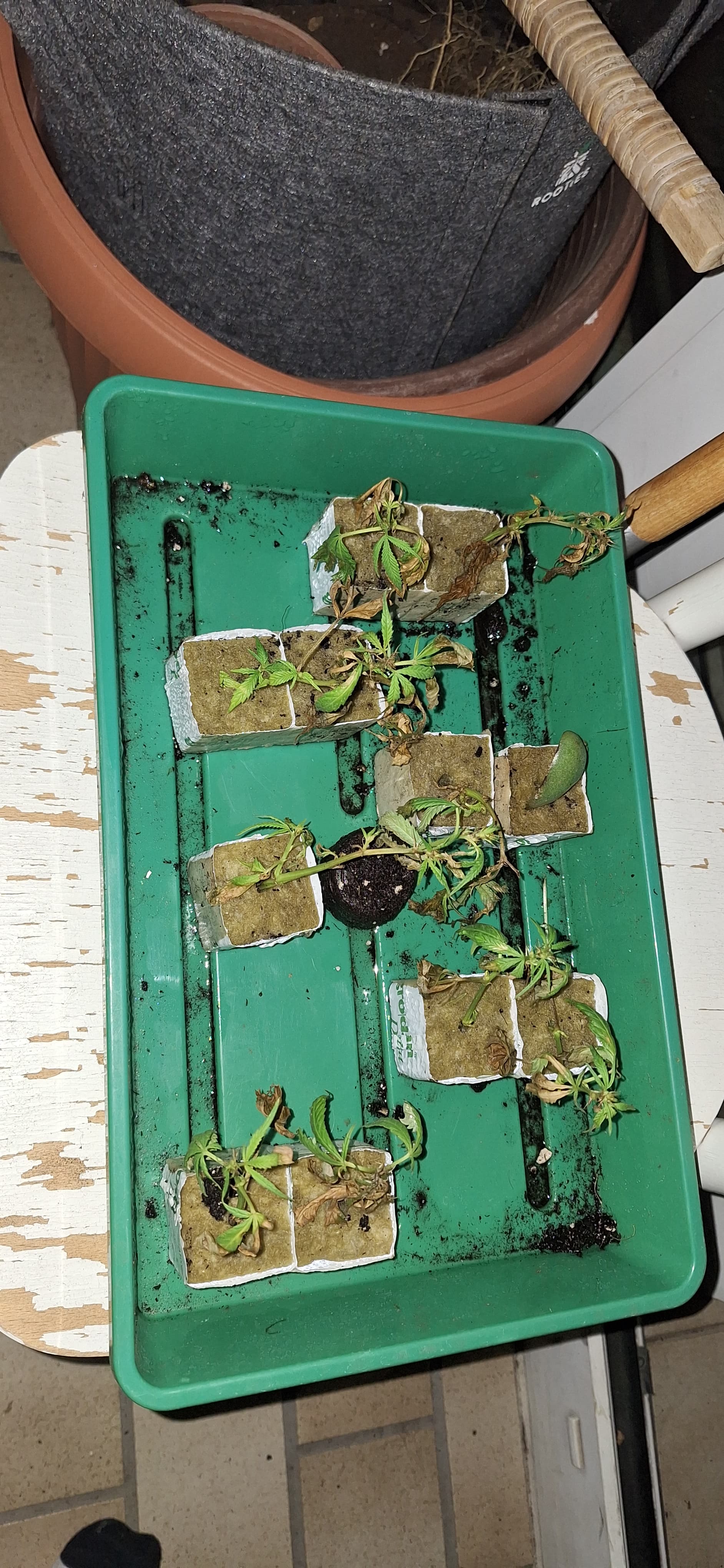 Das weiße ist ne Neemölemulsion mit der sie mehr oder weniger feucht gehalten werden, leider ist immernoch leichter Thripsenbefall, daher die Quarantäne.