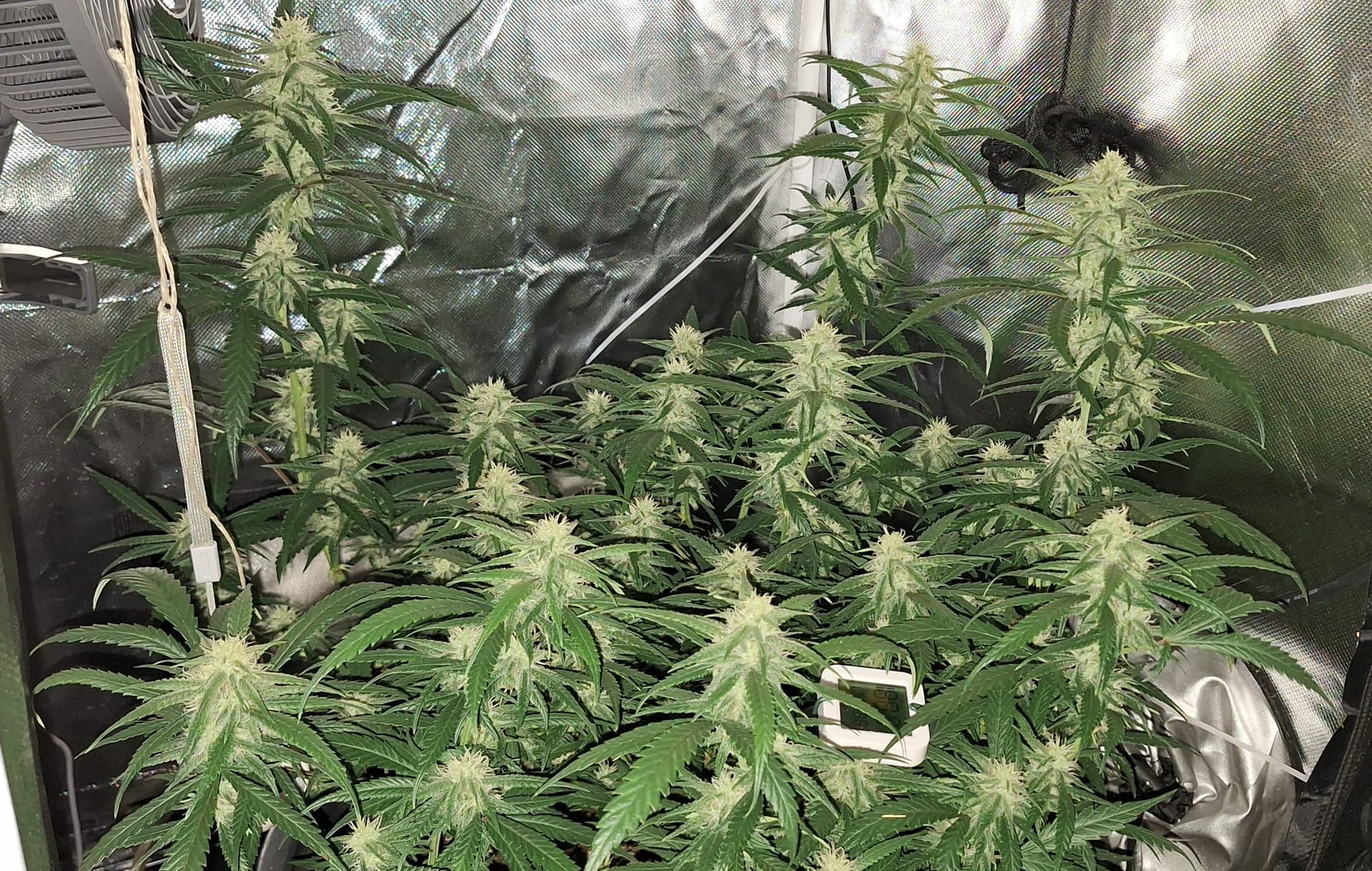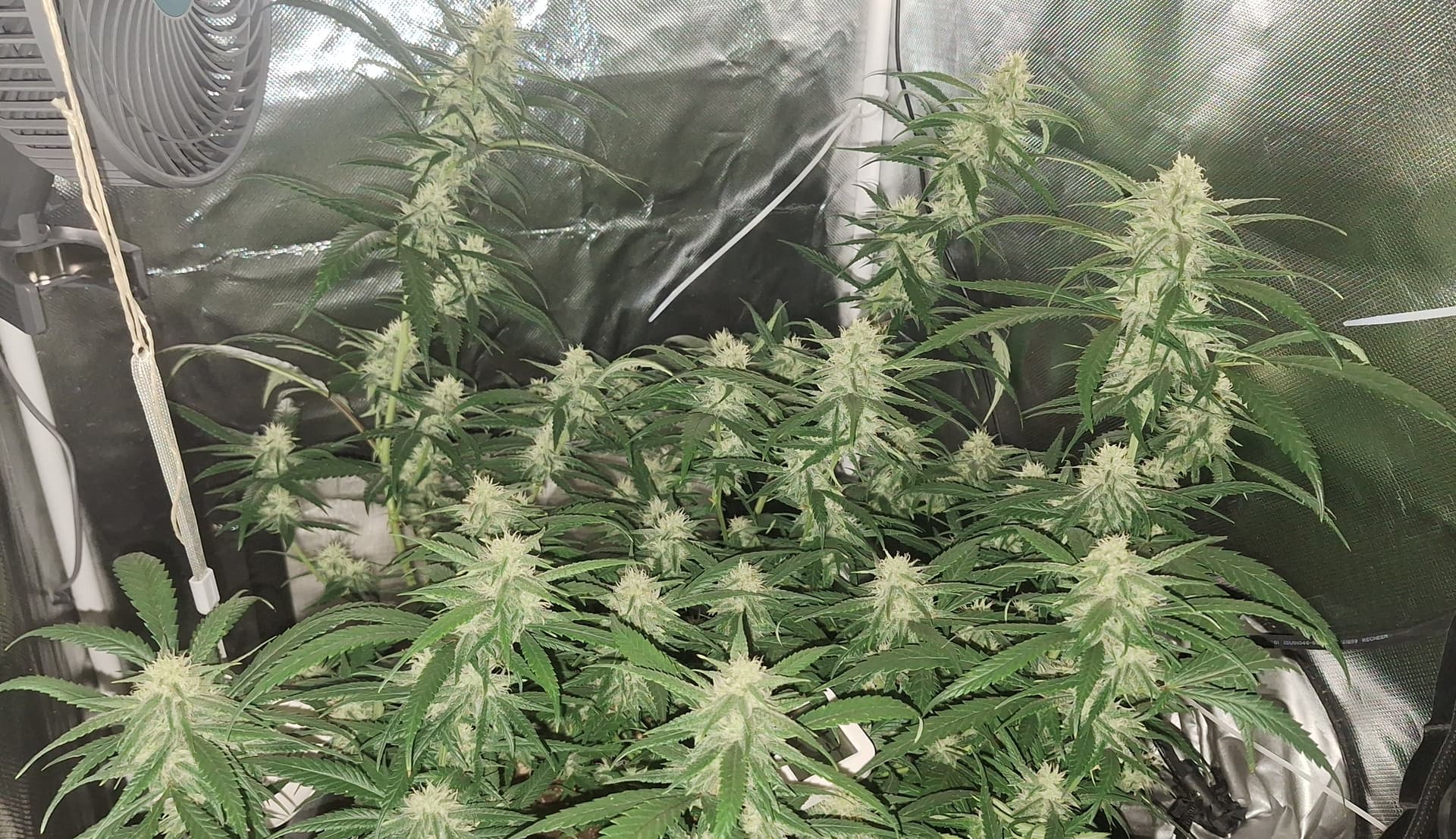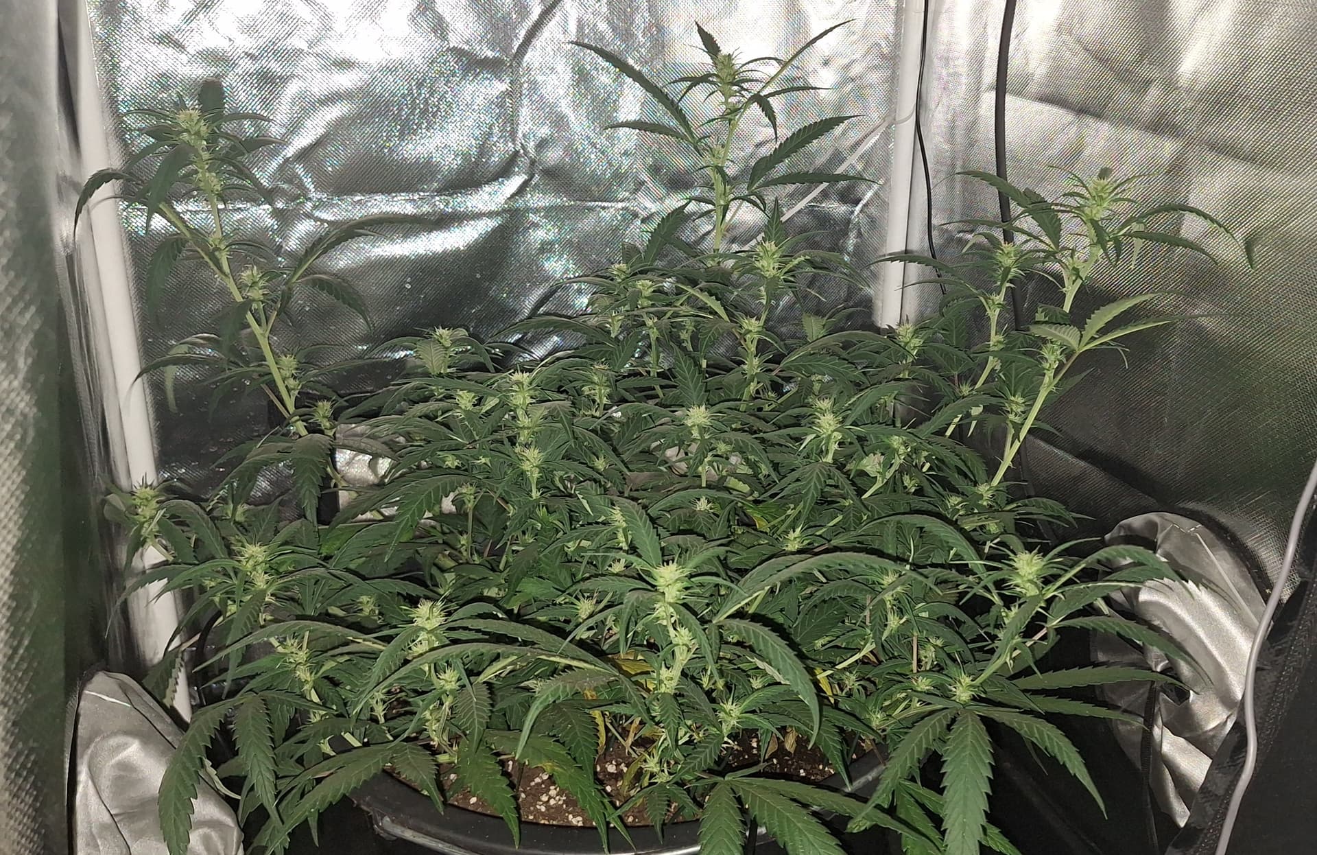Besprüht wird weiterhin, außerdem hab ich ein 60x60 Netz provisorisch im 120x60 Zelt drüber gespannt, damit wird sie ins 60x60x120 umziehen