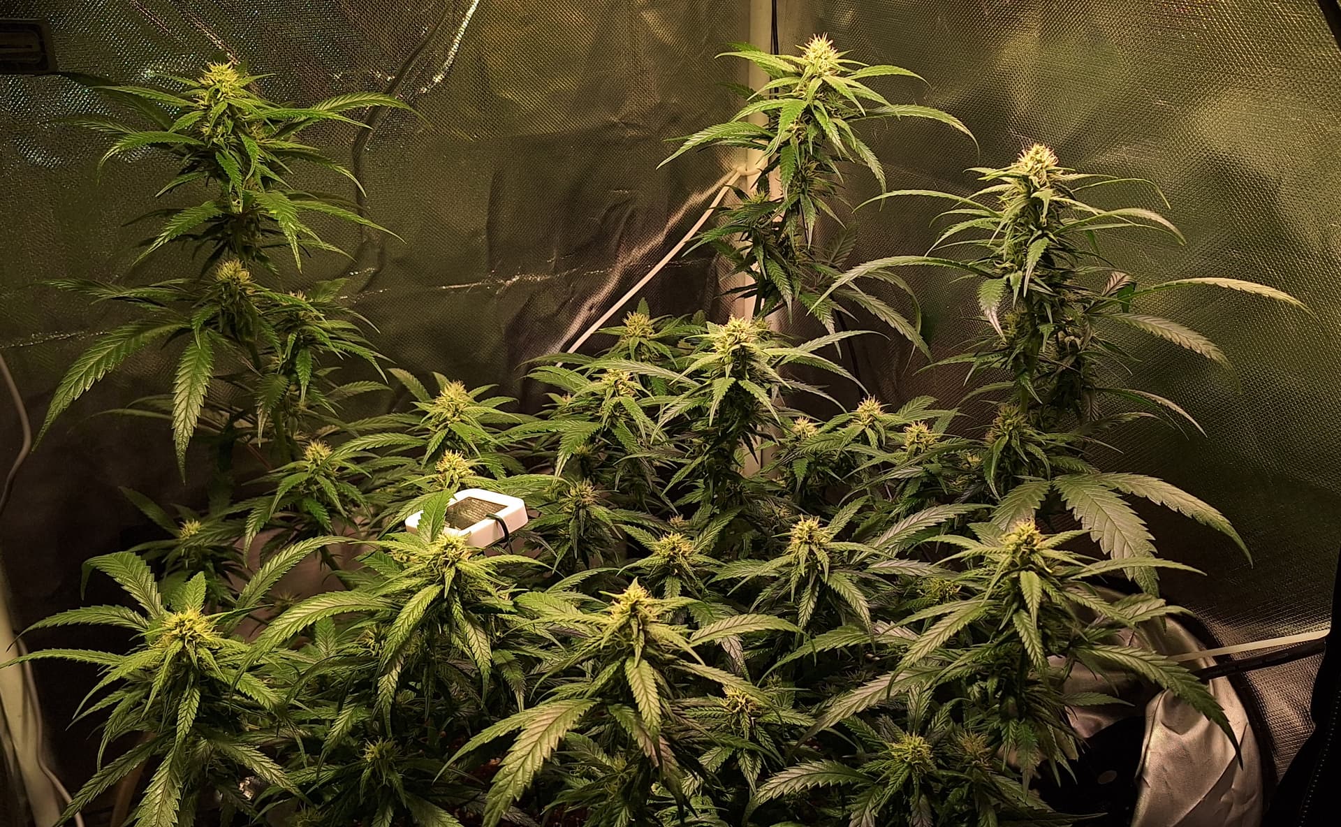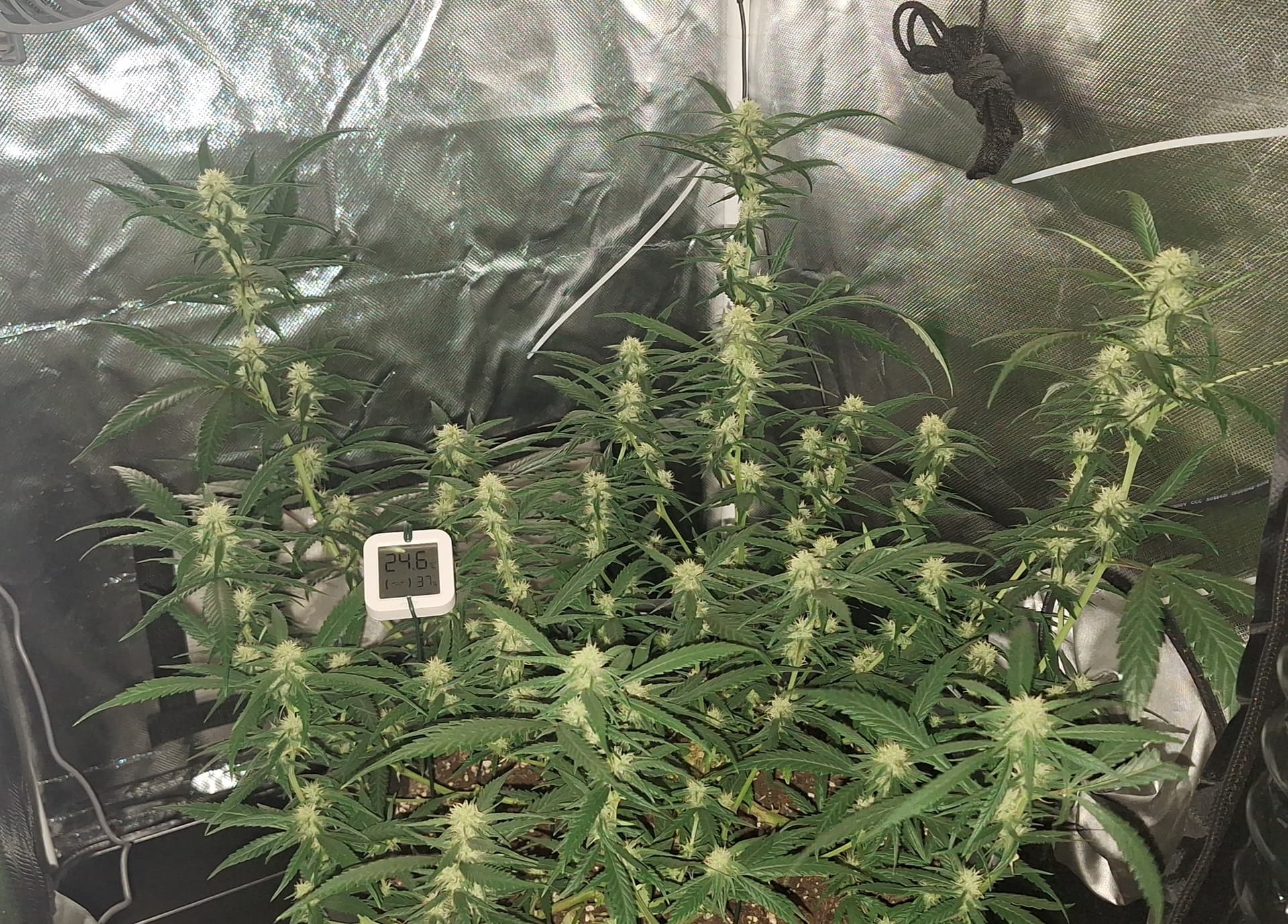 Bin seit 2 Tagen am Höhe vom Licht einstellen und möchte möglichst viel ppfd an die Blüten bringen, aber gleichzeitig nicht über 27- 28 Grad kommen + homogene Ausleuchtung, desshalb das Thermometer mittendrin.