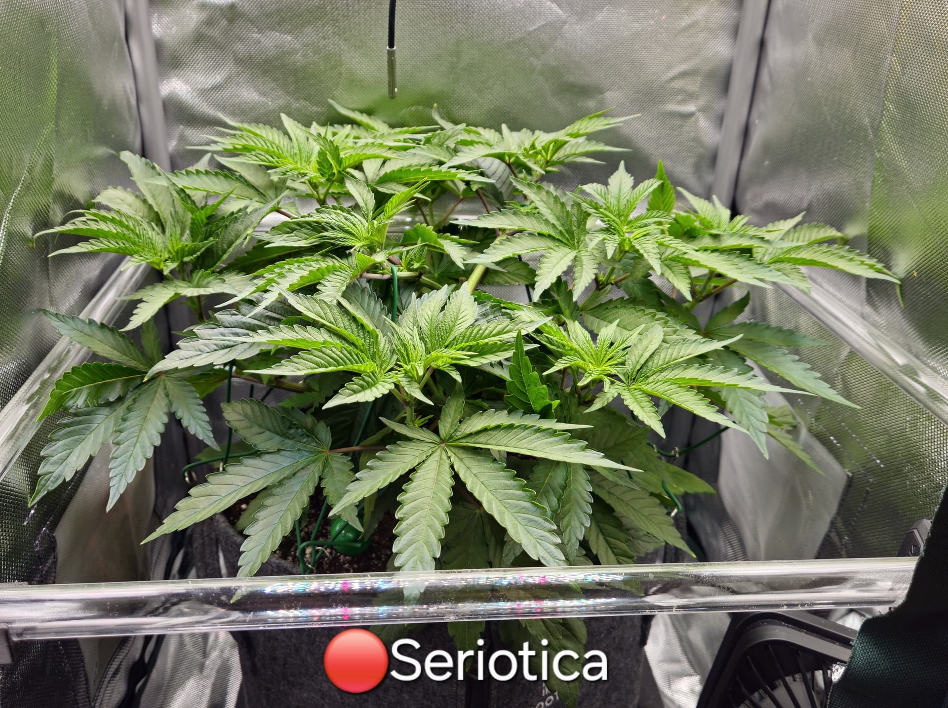 Auch LST wurde regelmĂ€Ăig durchgefĂŒhrt, was man den Pflanzen inzwischen gut ansieht. Die Struktur fĂ€chert sich schön auf, alles bleibt kompakt und gut belichtet.