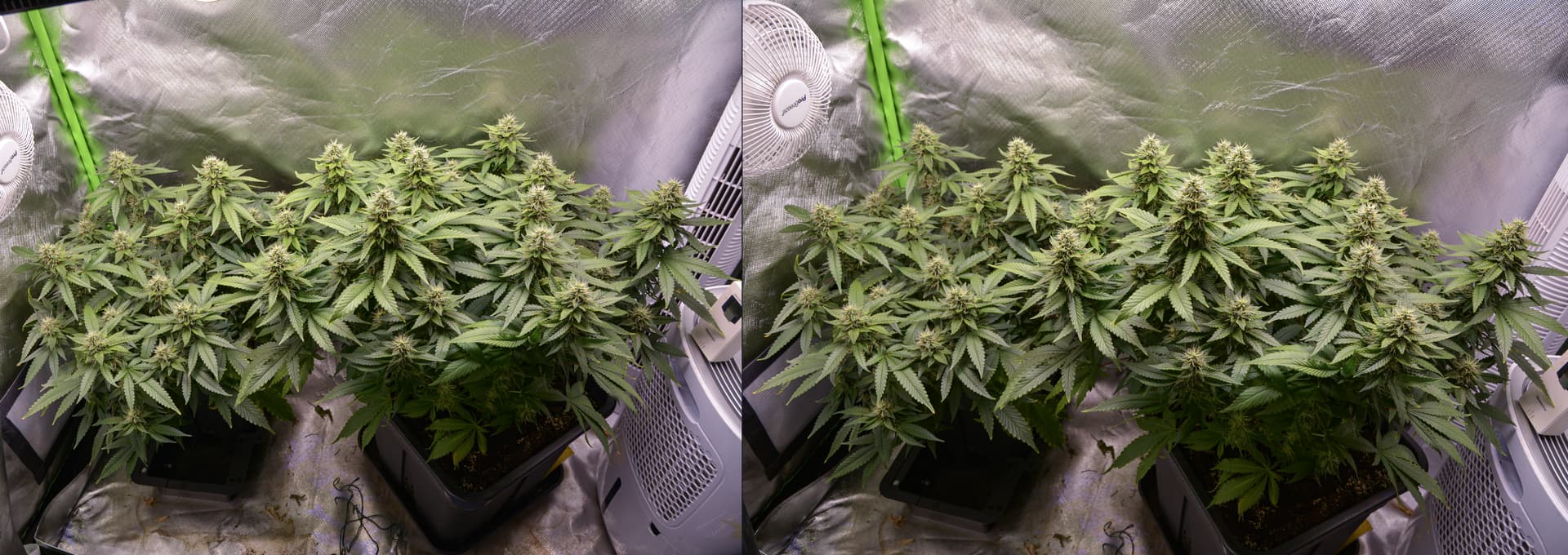 Finde das die wiederaufbereitete Erde sogar besser ist als der Allmix alleine, sieht man auch an den Farben (die kleine hat etwas weniger grün), ist jetzt schon der dritte Grow mit der selben Erde.