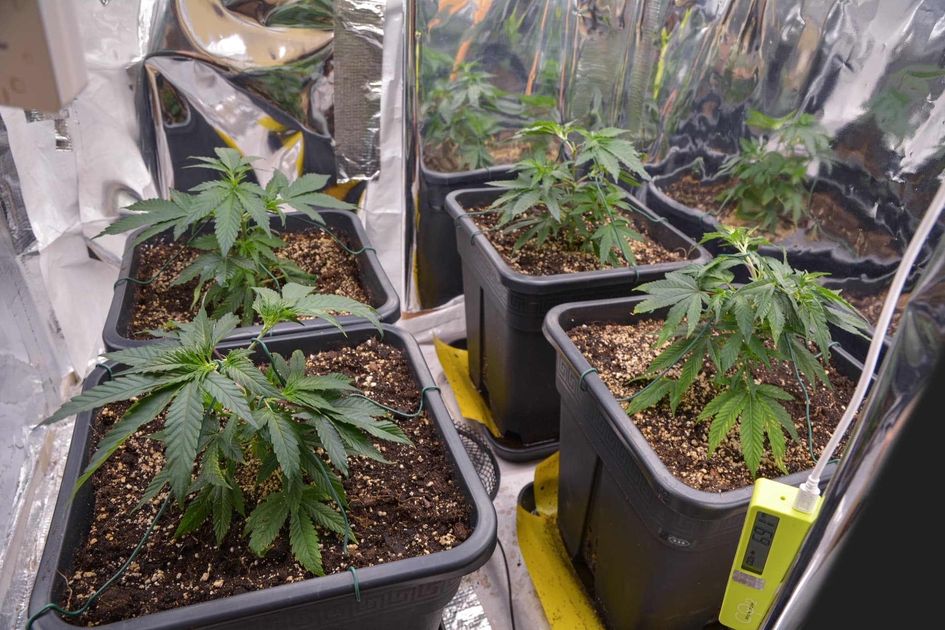 Die kleine im Zelt links steht im Allmix, die anderen in meiner wiederaufbereiteten Erde, LM 1/3, AM 1/3, Canna Bioterra Plus Koko 1/3, 10L Perlite, 1Packung Haferflocken und eine handvoll Premix.