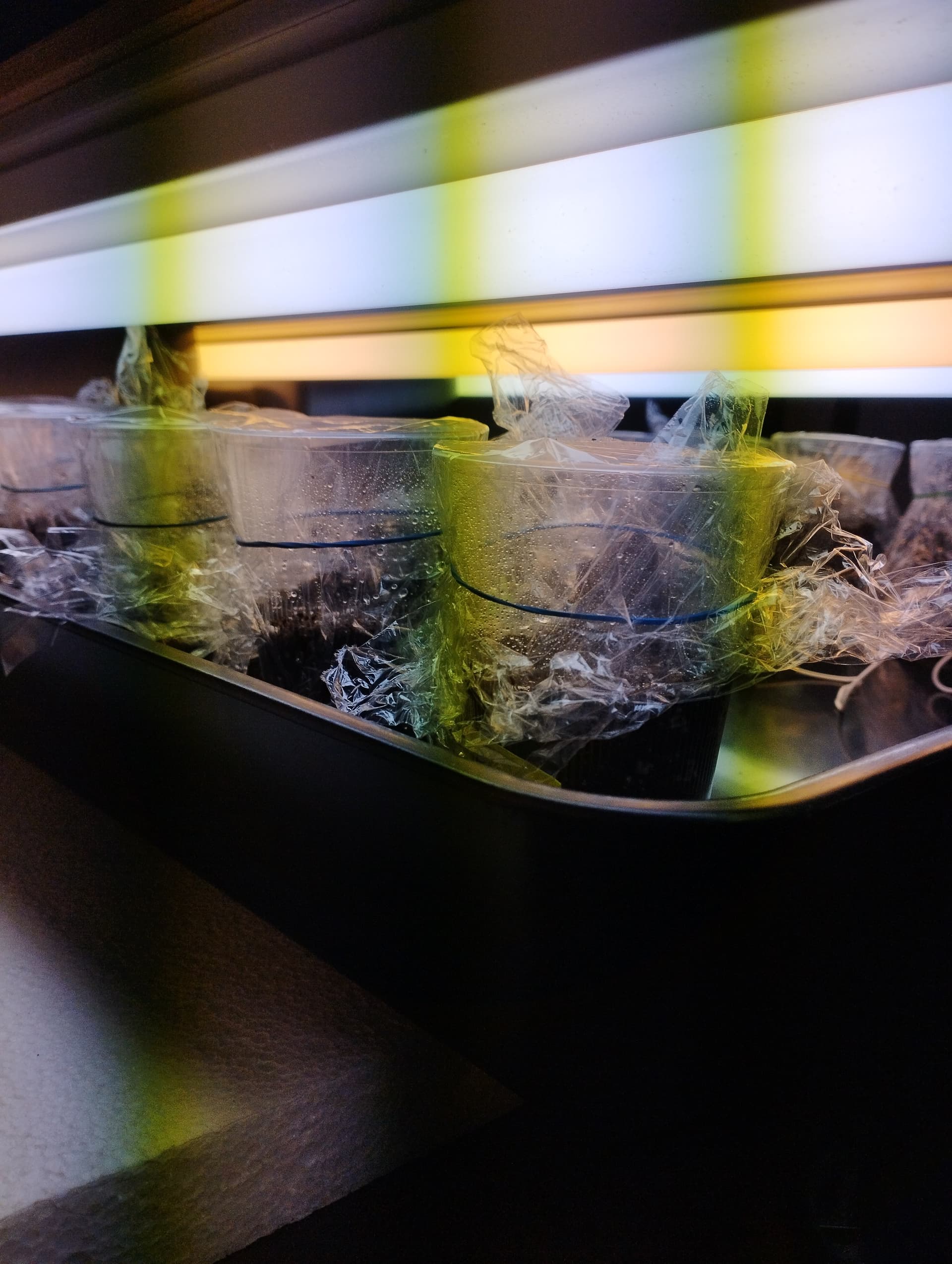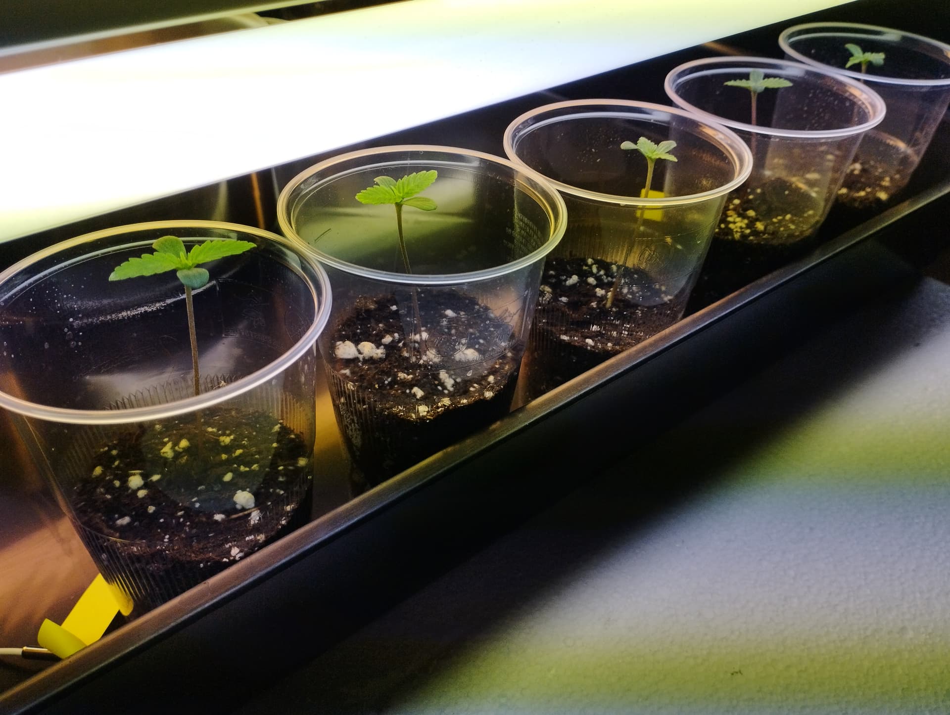 Da ich mit Jiffys jetzt nicht die besten Erfahrungen gemacht habe, wurden diesmal einfache, durchsichtige Plastikbecher als Anzuchttöpfe missbraucht. (ein paar Löcher unten rein und an den Seiten etwas aufgeschnitten…das hab ich bei nem Youtuber gesehen und fand die Idee ganz gut: Pott Planter heißt der, aber das Video müsst ihr leider selber suchen, sorry for that)