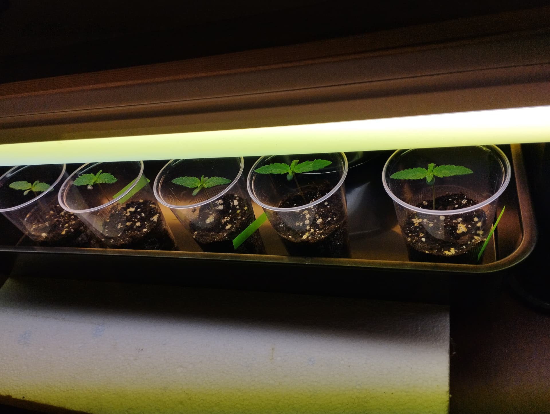 Naja erstmal die Becher runter ins Kellerloch unter die LSR. Das wird schon nix machen. Canabis ist ja ein Dunkelkeimer, wie ich mir hab sagen lassen. Das heißt es braucht kein Licht fürs Keimen, aber schaden wirds wohl dann auch nicht